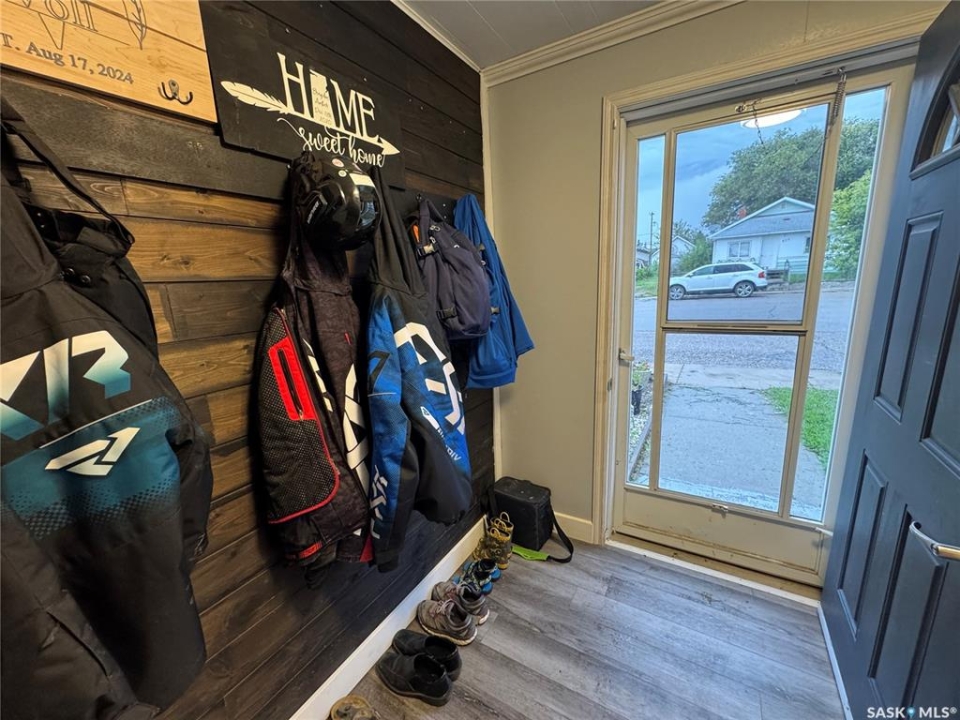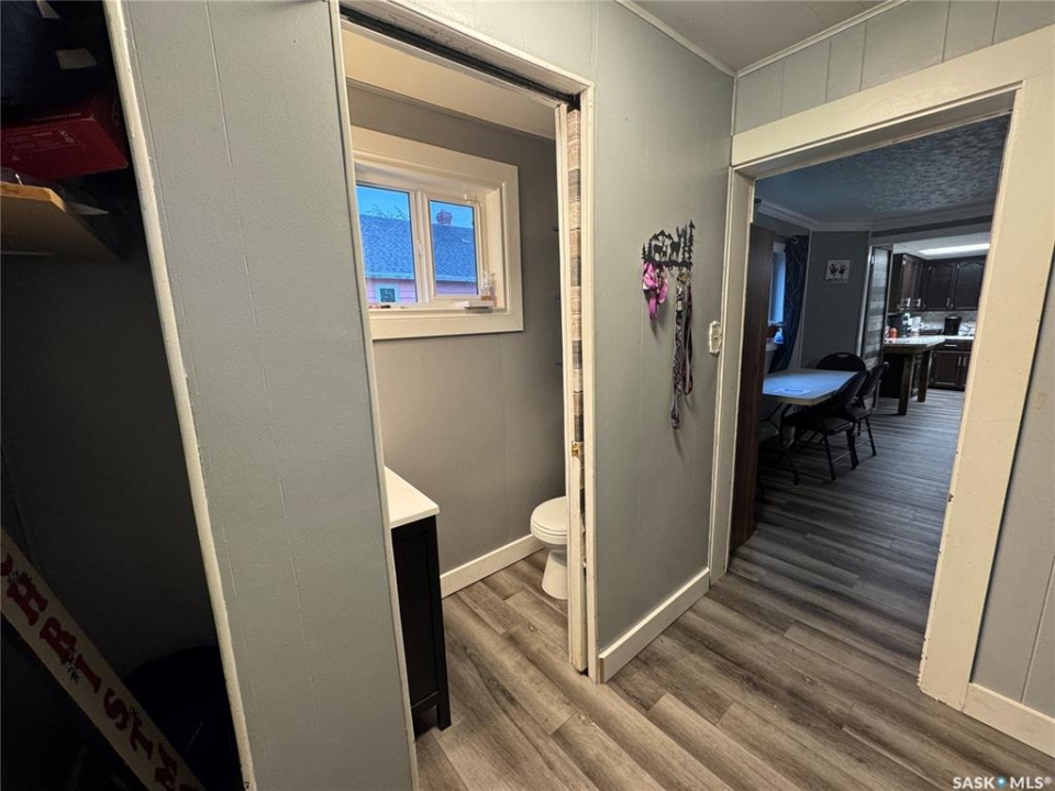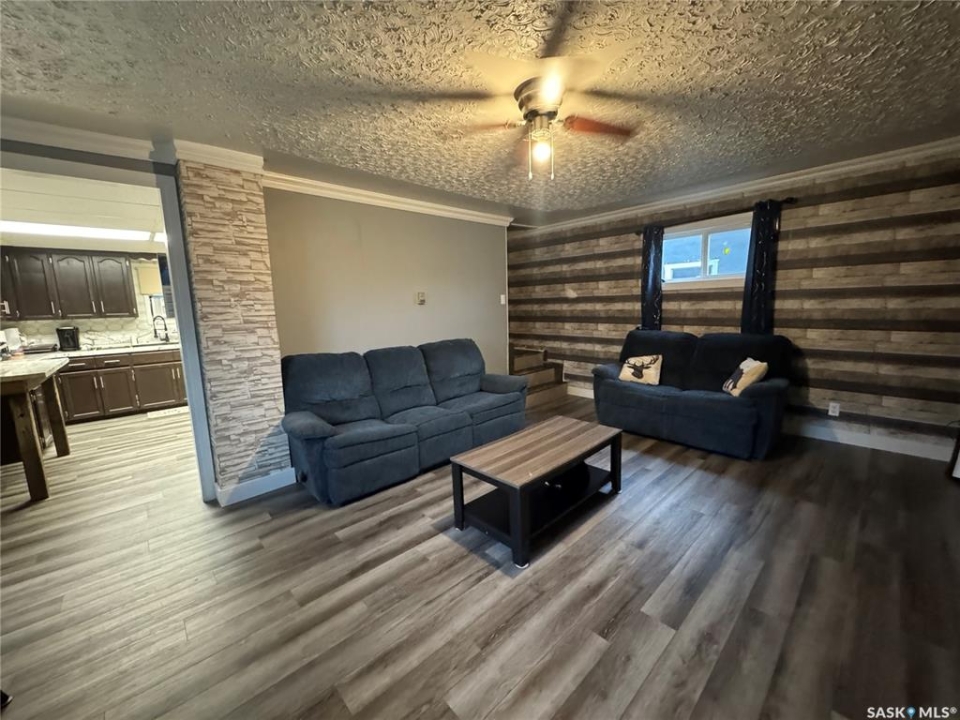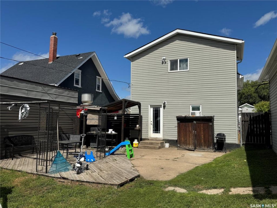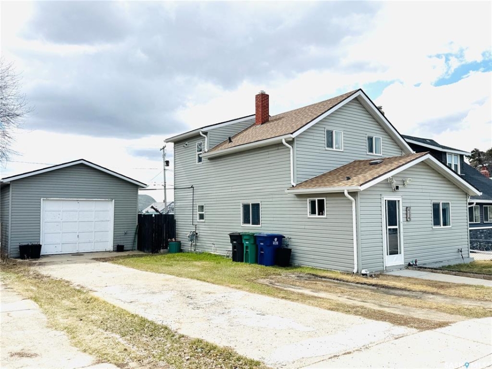 This charming 1 ¾-story home blends warmth, character, and thoughtful updates throughout. The main floor features newly installed vinyl flooring with fresh baseboards, giving the space a modern and polished look. A welcoming living room, functional kitchen, comfortable bedroom, and a convenient 2-piece powder room with a brand-new toilet make everyday living easy. At the back entrance, a practical laundry/mudroom offers extra convenience, complete with updated washer and dryer. For added comfort, the fridge is equipped with a pump system that connects to bottled water, supplying fresh water to the dispenser and ice maker. Upstairs, you'll find a spacious primary bedroom, two additional bedrooms, a full 4-piece bathroom, and a large hallway storage closet. The partial basement offers plenty of storage space and houses the furnace, water heater, and water softener. Step outside to enjoy a backyard designed for both relaxation and fun—featuring a fire pit area, garden shed, play structure, covered patio perfect for barbecues, and both front and back lawns. The insulated 18x30' garage is heated with a natural gas radiant heater, making it ideal for parking and projects year-round. Perfectly located near the park and skating rink, this home is move-in ready and waiting for its next family. Don't miss the opportunity—call to book your viewing today!