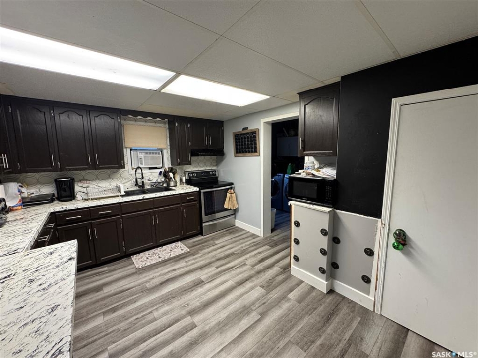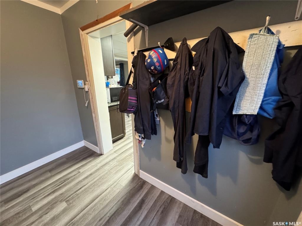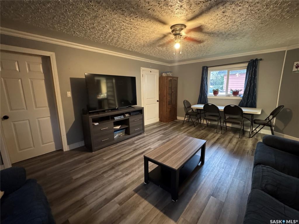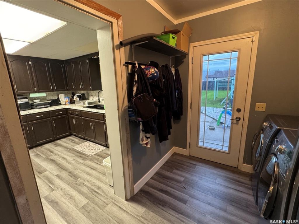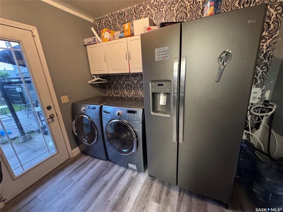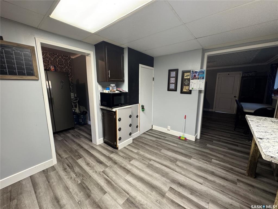 This charming 1 ¾-story home blends warmth, character, and thoughtful updates throughout. The main floor features newly installed vinyl flooring with fresh baseboards, giving the space a modern and polished look. A welcoming living room, functional kitchen, comfortable bedroom, and a convenient 2-piece powder room with a brand-new toilet make everyday living easy. At the back entrance, a practical laundry/mudroom offers extra convenience, complete with updated washer and dryer. For added comfort, the fridge is equipped with a pump system that connects to bottled water, supplying fresh water to the dispenser and ice maker. Upstairs, you'll find a spacious primary bedroom, two additional bedrooms, a full 4-piece bathroom, and a large hallway storage closet. The partial basement offers plenty of storage space and houses the furnace, water heater, and water softener. Step outside to enjoy a backyard designed for both relaxation and fun—featuring a fire pit area, garden shed, play structure, covered patio perfect for barbecues, and both front and back lawns. The insulated 18x30' garage is heated with a natural gas radiant heater, making it ideal for parking and projects year-round. Perfectly located near the park and skating rink, this home is move-in ready and waiting for its next family. Don't miss the opportunity—call to book your viewing today!