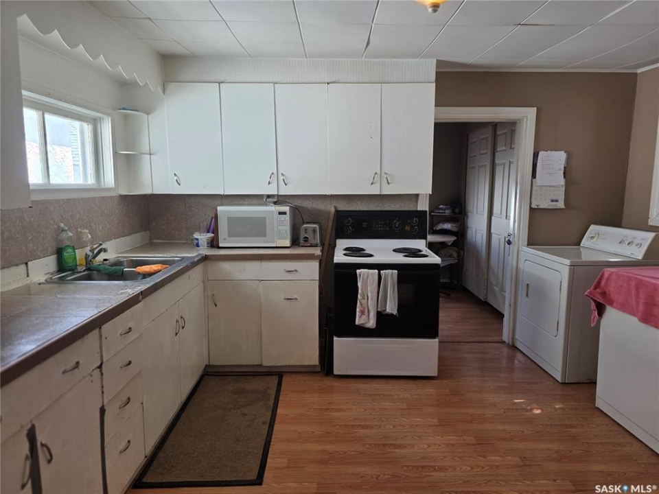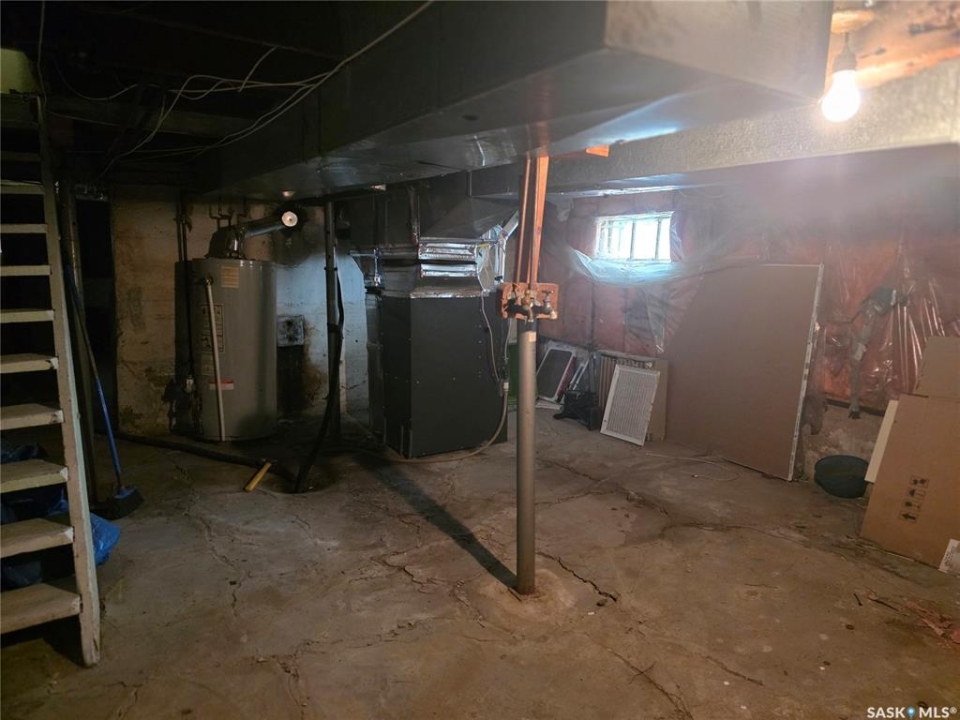 Step inside this cute and affordable 1.5 storey home that's move-in ready and full of potential for first-time buyers or investors. Featuring 3 bedrooms and 1 full bathroom, the main floor offers a bright living room, dining area, and functional kitchen with white cabinetry, fridge and stove included, plus the convenience of main floor laundry. A bedroom and full bathroom complete the main level, while upstairs you'll find two additional bedrooms. The unfinished basement provides extra storage space and houses the rented gas water heater and a high-efficiency furnace. Outside, enjoy a fully fenced yard perfect for kids, pets, or relaxing, all within easy walking distance to downtown, local churches, and restaurants.