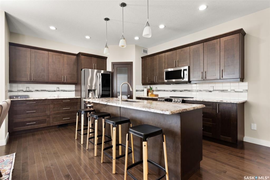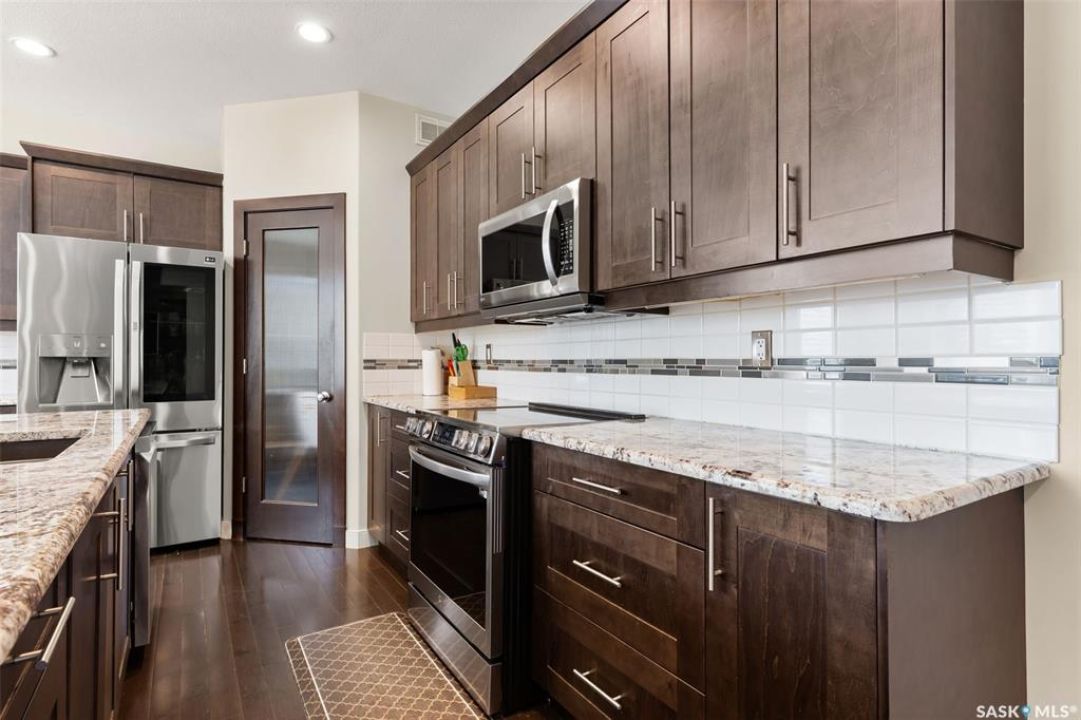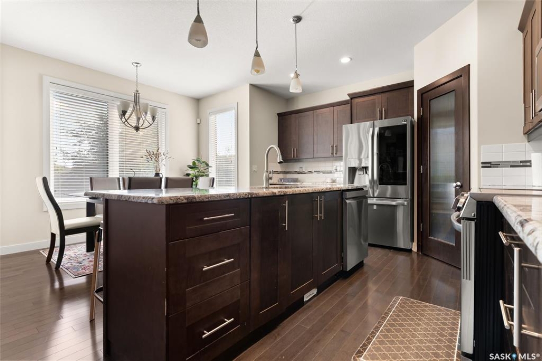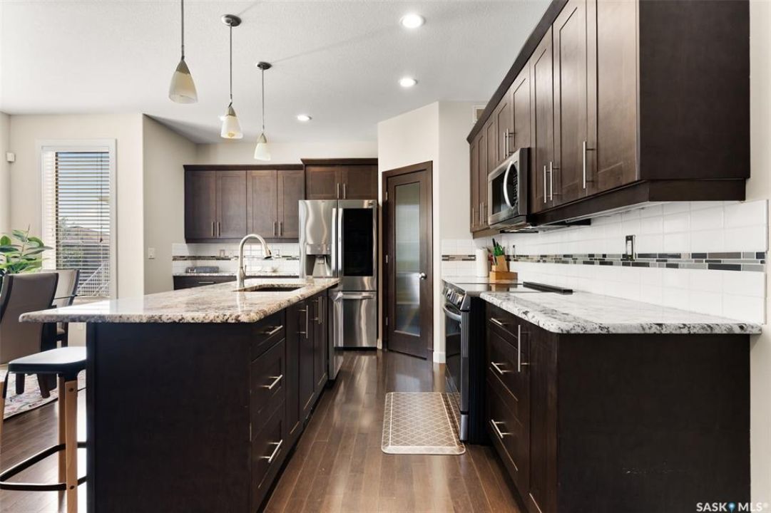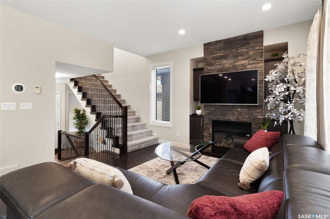 Welcome to this beautifully crafted custom Szarka Home in the sought-after Windsor Park neighborhood of Regina. Built on piles with exceptional quality and design, this home is far from cookie cutter and offers thoughtful upgrades throughout. The main floor is bright and inviting with large windows that fill the space with natural light. The kitchen features maple cabinetry with soft-close drawers, pot & pan storage, granite countertops, tile backsplash, and all stainless steel appliances (updated in 2022). The living room showcases a stone-surrounded gas fireplace with custom maple built-ins, while the dining area provides access to the low-maintenance deck complete with a natural gas BBQ line. A front den/office room and convenient 2-pc bath complete this level. Upstairs you'll find three spacious bedrooms and two full baths. The primary suite offers a walk-in closet and a luxurious 5-pc ensuite with corner jetted tub. The second-floor laundry room is well-planned with upper cabinets and a sink. The fully finished basement adds even more living space with a family room, 4th bedroom, and 4-pc bathroom, plus plenty of storage. This home also features a double attached garage, acrylic stucco exterior, foundation built on piles, in-floor heat to the basement with extra-strength concrete floor, PVC fencing, and recent updates including new shingles, eavestroughs, and downspouts (Oct 2023) as well as new carpet on the stairs and second level. For added convenience, an existing Real Property Report and blueprints are available. Blending quality construction, modern updates, and timeless design, this home is the perfect choice for families seeking comfort and functionality in one of Regina's most desirable neighborhoods. Book your private showing today.