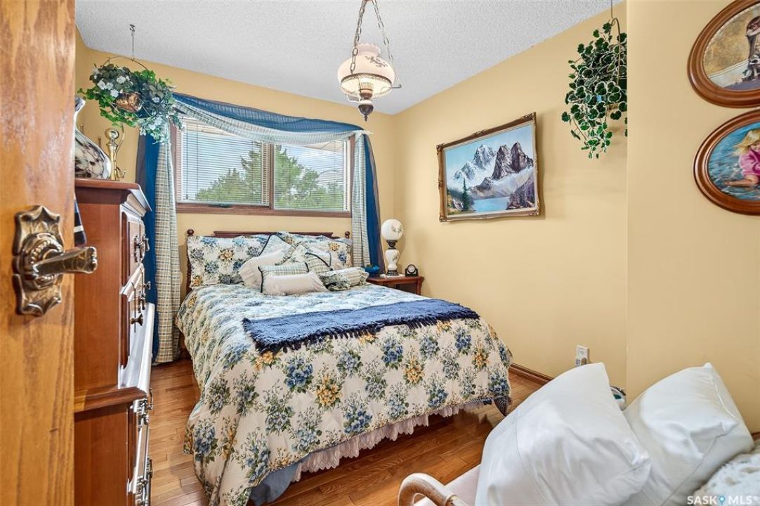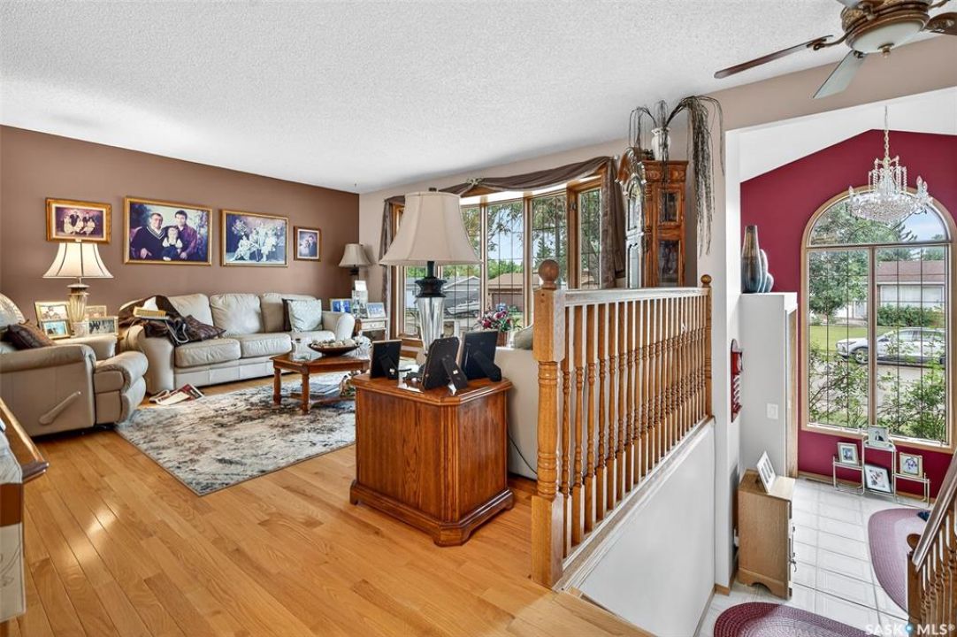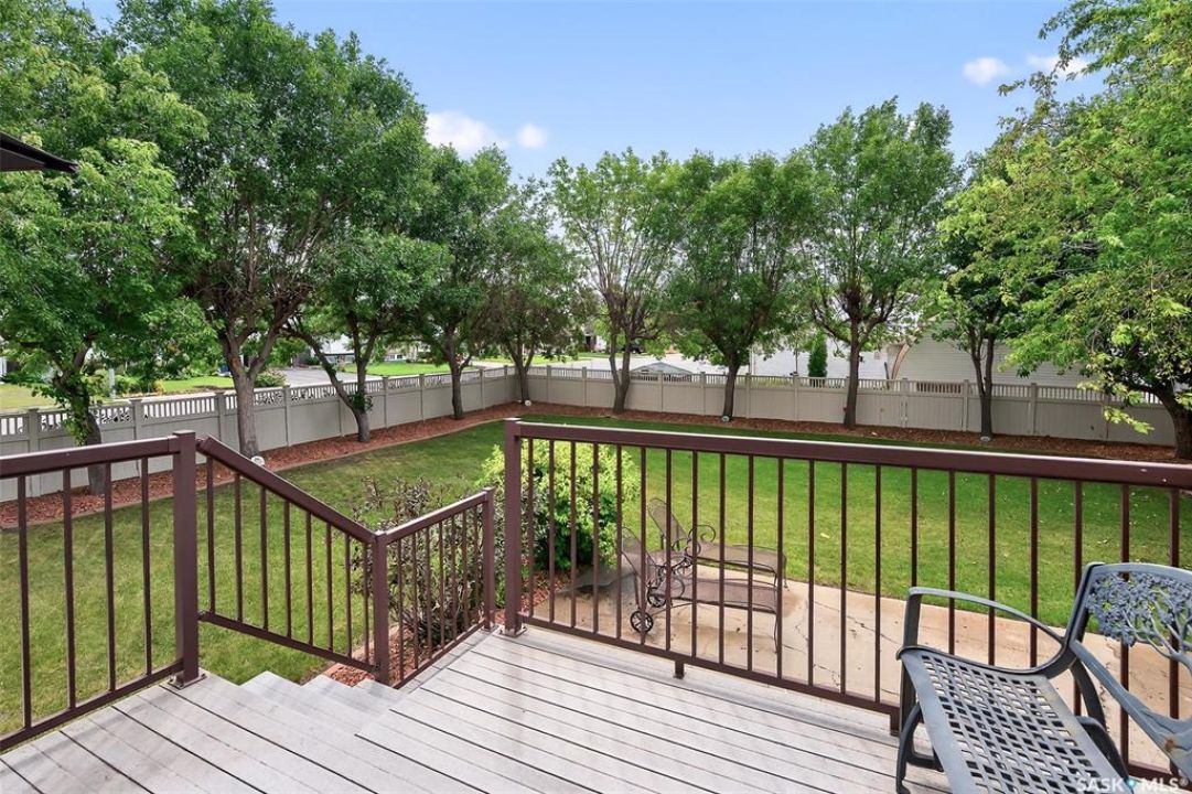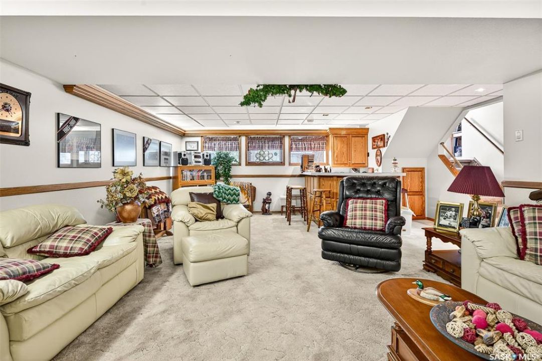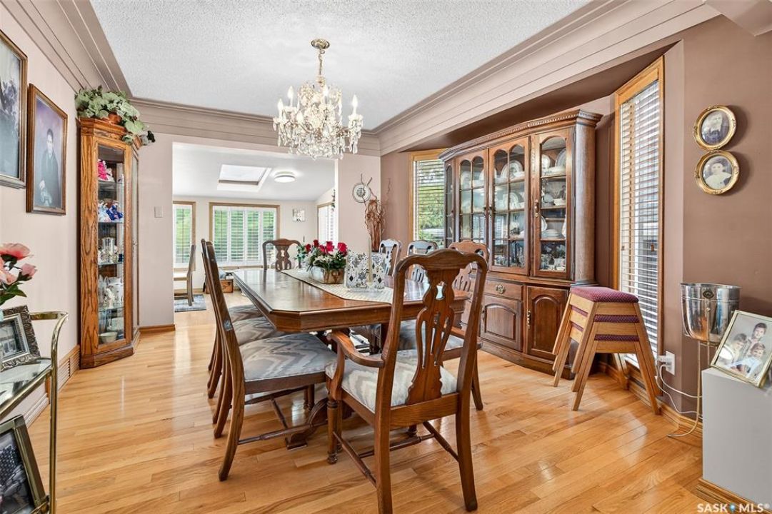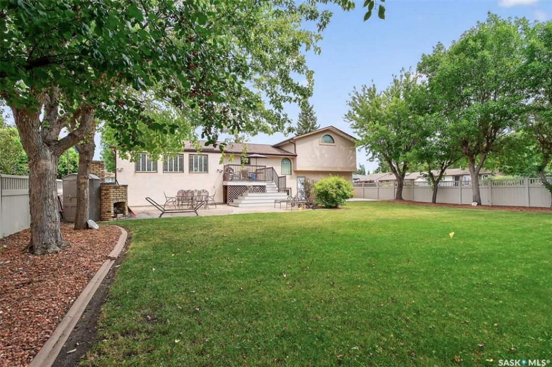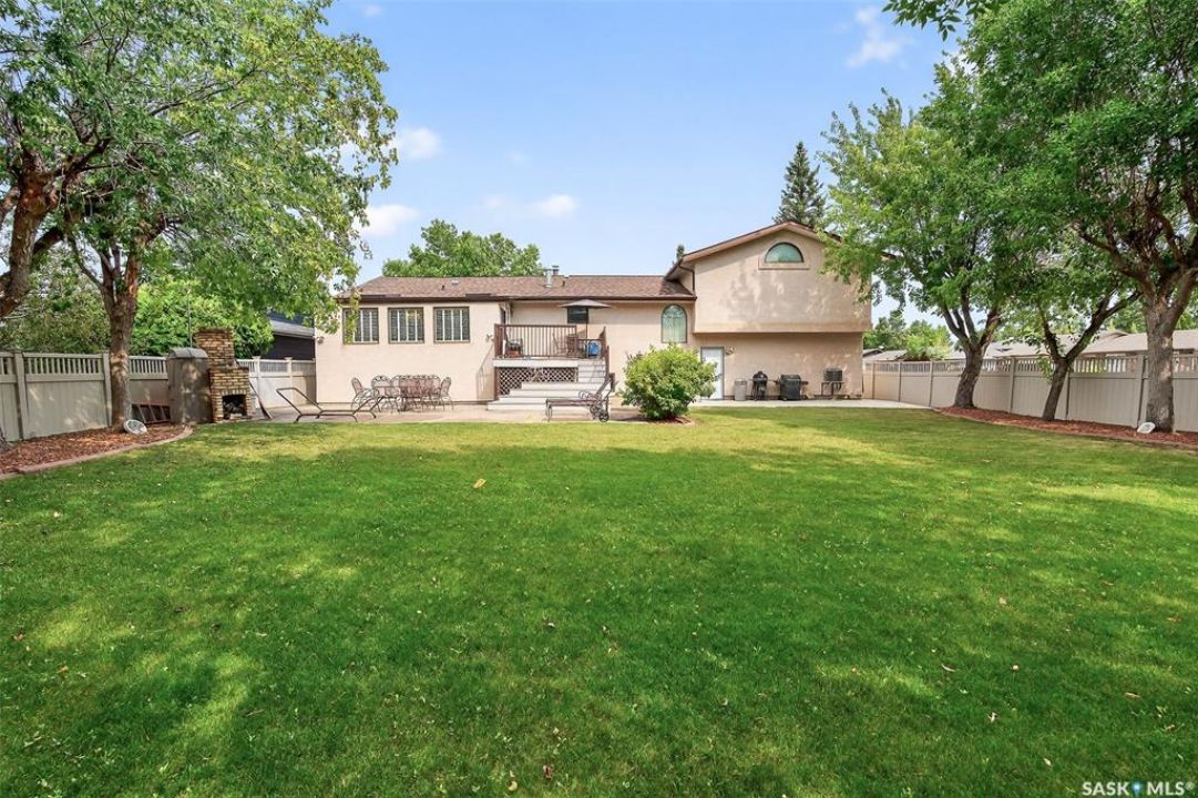 Custom...Comfort...Space!! Perfectly designed space in this modified bi-level home on popular NW crescent. Welcoming immense foyer leads to 3 levels of over 2400 sq feet of elegance. Large living room with bow window flows into a formal dining area with pillars and a bay window. The "chef" kitchen has an abundance of darker cabinetry, pantry, appliances and adjoins a bright southern facing sun room with skylights and overlooks a park-like yard. 2 bedrooms and a full bath complete this level. A few steps up to a custom designed primary bedroom that boasts a fireplace, window seat and mirrored french doors that lead to a 22x9 walk-in closet with built-in dressers, providing a quiet retreat. There's a 5pc ensuite that would make anyone envious with in-floor heat, jetted tub and make-up counters and table. Enjoy the finished basement! Family room has a wet bar, a bedroom/den with a gas fireplace, full bath and utility room. The large laundry/mud room has access to the double heated garage and the back yard oasis. You can access the manicured, fenced back yard from either level. Enjoy the large comfortable deck and patio for relaxing or the brick fireplace/BBQ on those special days!!