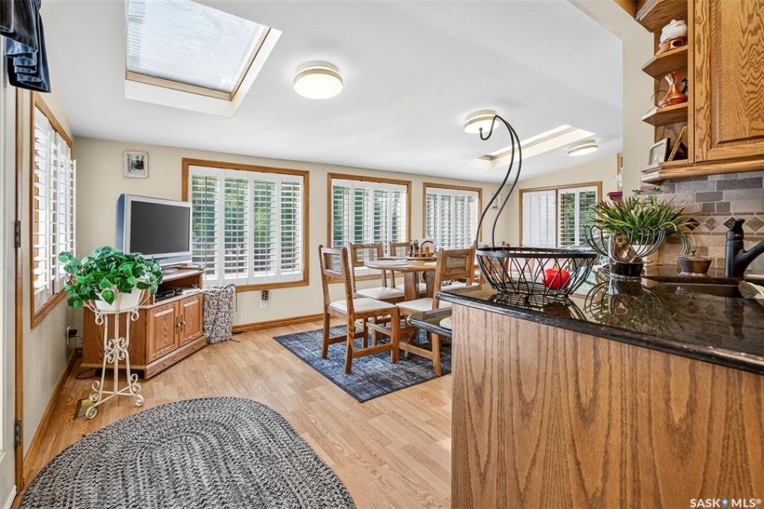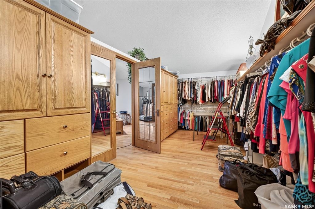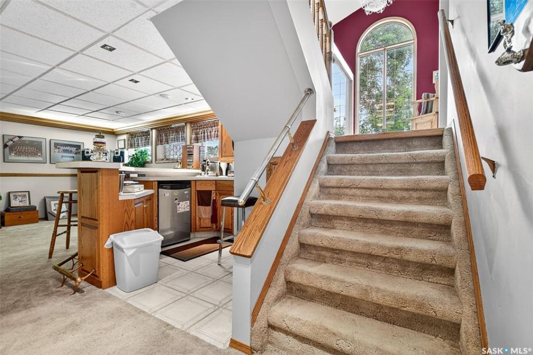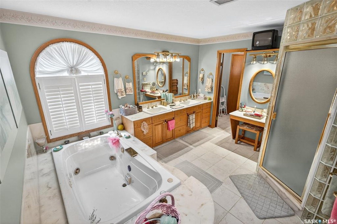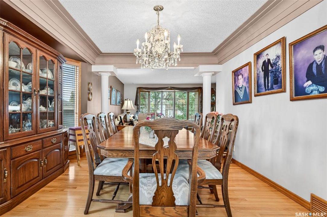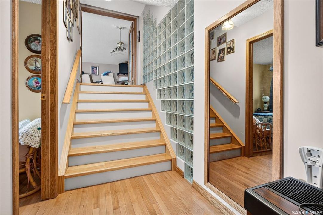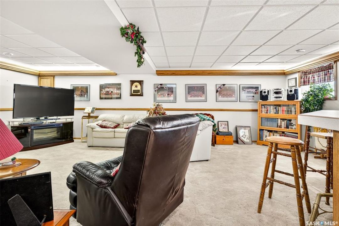Custom...Comfort...Space!! Perfectly designed space in this modified bi-level home on popular NW crescent. Welcoming immense foyer leads to 3 levels of over 2400 sq feet of elegance. Large living room with bow window flows into a formal dining area with pillars and a bay window. The "chef" kitchen has an abundance of darker cabinetry, pantry, appliances and adjoins a bright southern facing sun room with skylights and overlooks a park-like yard. 2 bedrooms and a full bath complete this level. A few steps up to a custom designed primary bedroom that boasts a fireplace, window seat and mirrored french doors that lead to a 22x9 walk-in closet with built-in dressers, providing a quiet retreat. There's a 5pc ensuite that would make anyone envious with in-floor heat, jetted tub and make-up counters and table. Enjoy the finished basement! Family room has a wet bar, a bedroom/den with a gas fireplace, full bath and utility room. The large laundry/mud room has access to the double heated garage and the back yard oasis. You can access the manicured, fenced back yard from either level. Enjoy the large comfortable deck and patio for relaxing or the brick fireplace/BBQ on those special days!!