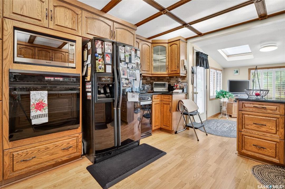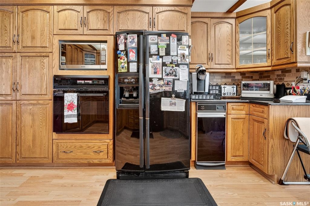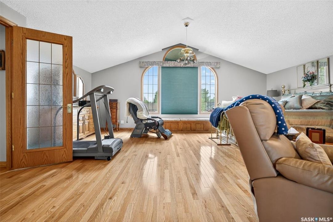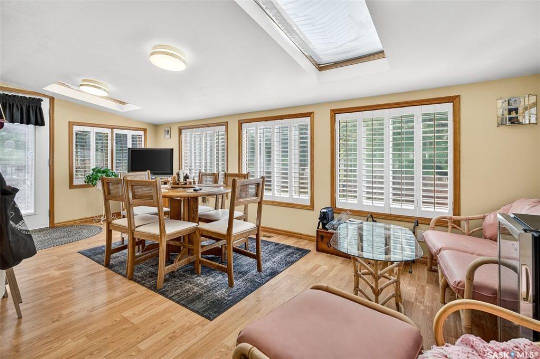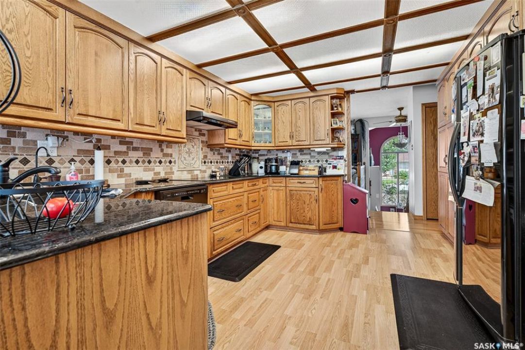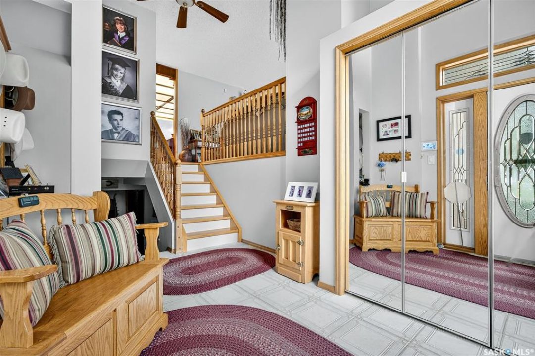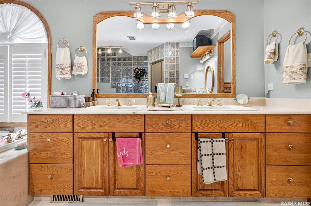 Custom...Comfort...Space!! Perfectly designed space in this modified bi-level home on popular NW crescent. Welcoming immense foyer leads to 3 levels of over 2400 sq feet of elegance. Large living room with bow window flows into a formal dining area with pillars and a bay window. The "chef" kitchen has an abundance of darker cabinetry, pantry, appliances and adjoins a bright southern facing sun room with skylights and overlooks a park-like yard. 2 bedrooms and a full bath complete this level. A few steps up to a custom designed primary bedroom that boasts a fireplace, window seat and mirrored french doors that lead to a 22x9 walk-in closet with built-in dressers, providing a quiet retreat. There's a 5pc ensuite that would make anyone envious with in-floor heat, jetted tub and make-up counters and table. Enjoy the finished basement! Family room has a wet bar, a bedroom/den with a gas fireplace, full bath and utility room. The large laundry/mud room has access to the double heated garage and the back yard oasis. You can access the manicured, fenced back yard from either level. Enjoy the large comfortable deck and patio for relaxing or the brick fireplace/BBQ on those special days!!