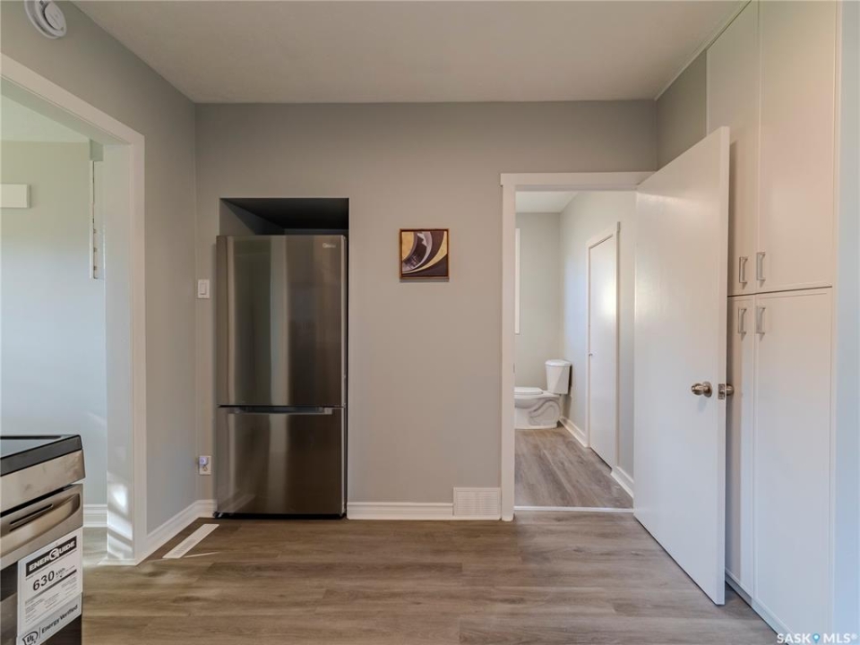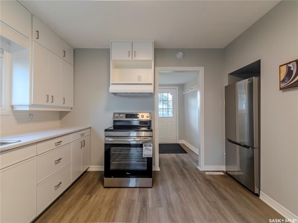 Welcome to 221 Avenue N North: a beautifully updated 560 sq. ft. bungalow sitting on a 37.5 x 105 ft. lot with a spacious backyard. Every detail has been refreshed, including new flooring, fresh paint, modern light fixtures, new blinds, new shingles, and more. The kitchen features brand-new cabinets, a stylish tile backsplash, and brand new appliances that are ready for your first meal at home. The bathroom has been fully redone, giving the space a clean and modern feel. Outside, enjoy the large backyard: perfect for gatherings, gardening, or future development potential. Whether you're a first-time buyer, investor, or looking to downsize, this home checks all the boxes: move-in ready, updated from top to bottom, and sitting on a great lot in a convenient Saskatoon location.