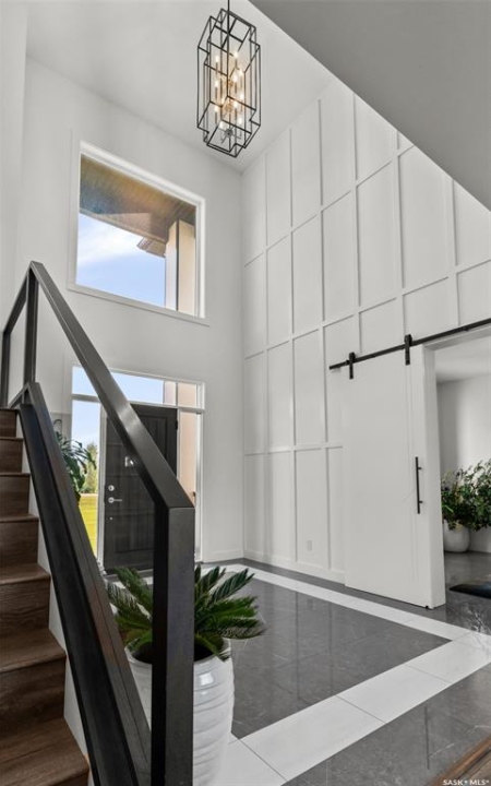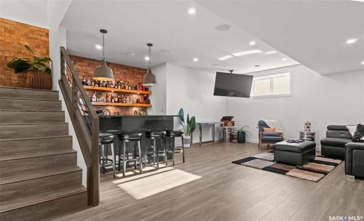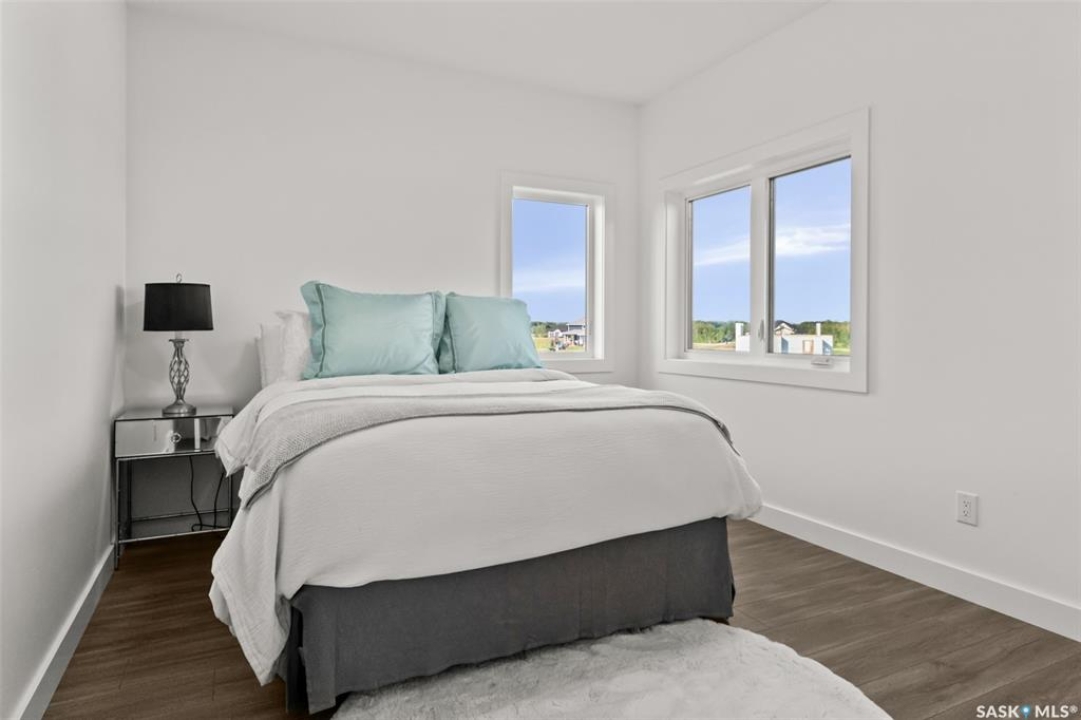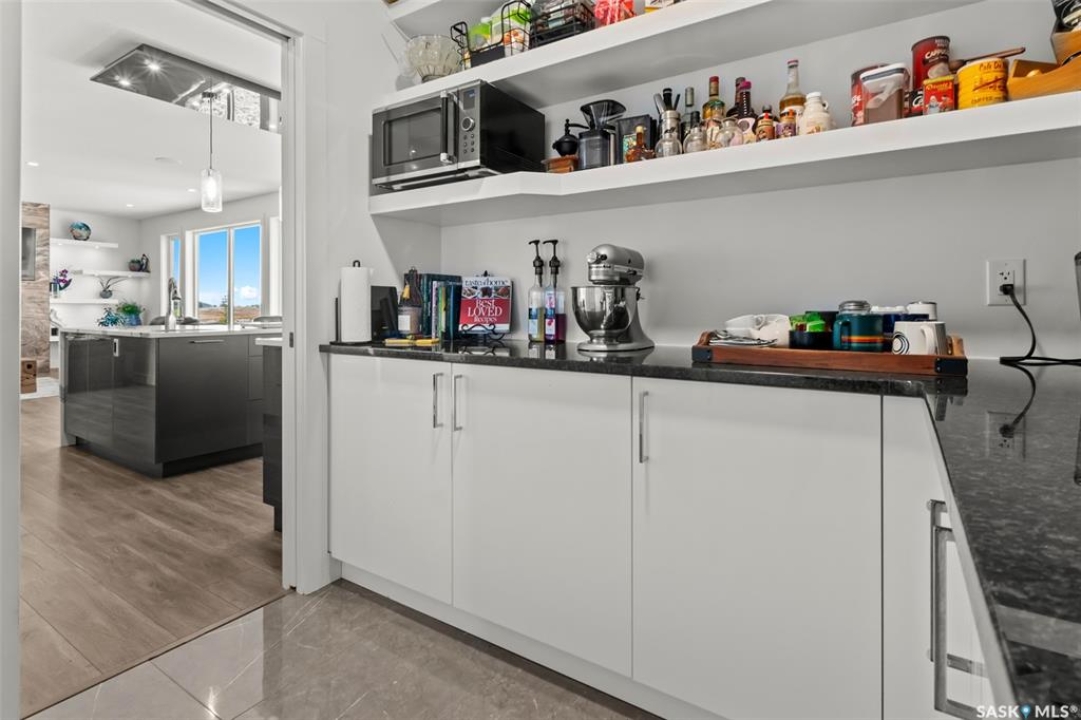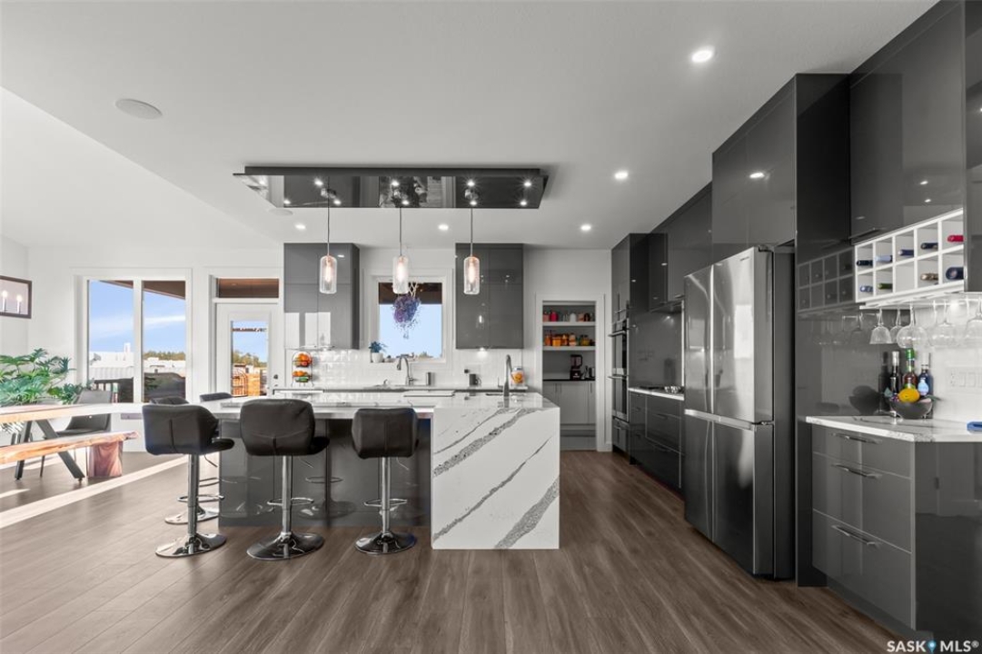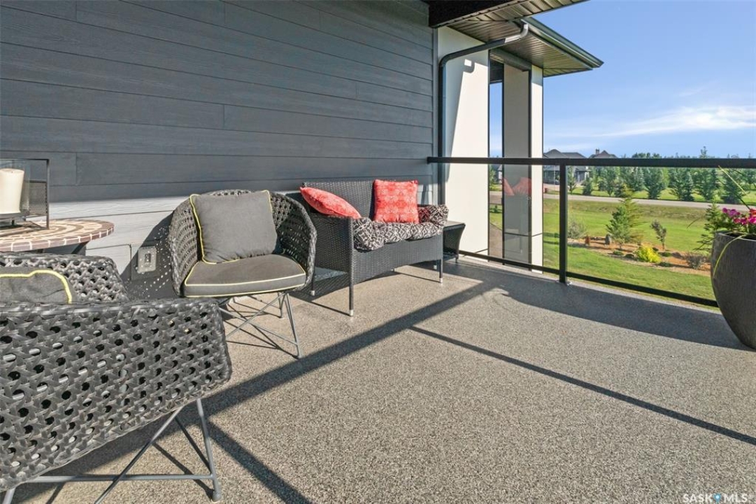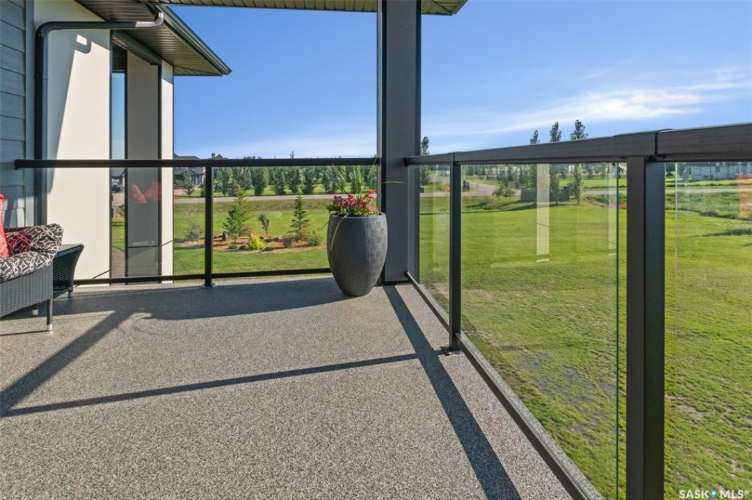 Welcome to 172 Grandview Trail, an exceptional residence in the prestigious Grasswood Estates. Set on three acres, this custom-built home combines modern design with functional elegance, offering four bedrooms, four bathrooms, and a spacious five-car attached garage. The interior is thoughtfully designed with high-end finishes throughout. The chef's kitchen is a true highlight, featuring acrylic cabinetry, quartz countertops, a built-in double oven, a gas stove with a pot filler, and a convenient butler pantry. Perfect for entertaining or everyday living, the open layout flows seamlessly into the living room, where a striking stone fireplace, custom built-ins, and expansive windows create a bright and welcoming atmosphere. The home itself is supplied with city water, ensuring convenience and reliability. The bedrooms are generously sized, designed with both comfort and style in mind. The bathrooms feature granite countertops and spa-inspired finishes, offering a retreat-like experience in your own home. The fully developed lower level provides even more living space, complete with a large family room, stylish bar area, private theatre, and a gym that can also serve as a versatile fourth bedroom. Step into the backyard made for both entertaining and unwinding. The three-tier deck with a built-in pizza oven provides multiple areas to host friends and family, while the meticulously landscaped grounds feature underground sprinklers and a drip irrigation system sourced from the well to keep everything vibrant and low-maintenance. Whether enjoying summer gatherings or quiet evenings under the prairie sky, this outdoor space is designed for every occasion. With its striking modern design, spacious five-car garage, and carefully crafted interior, this home perfectly balances luxury and functionality. Situated just minutes from Saskatoon, yet offering exceptional privacy and room to roam, this home provides the ideal combination of estate living and city convenience.