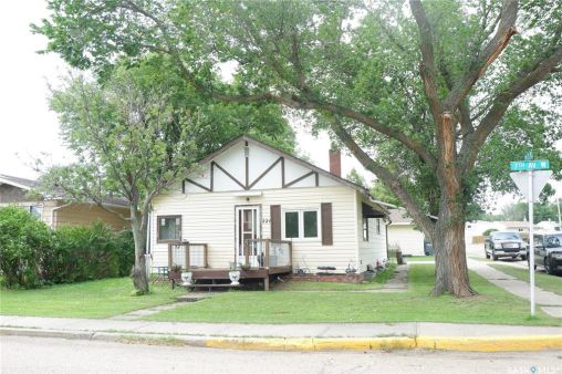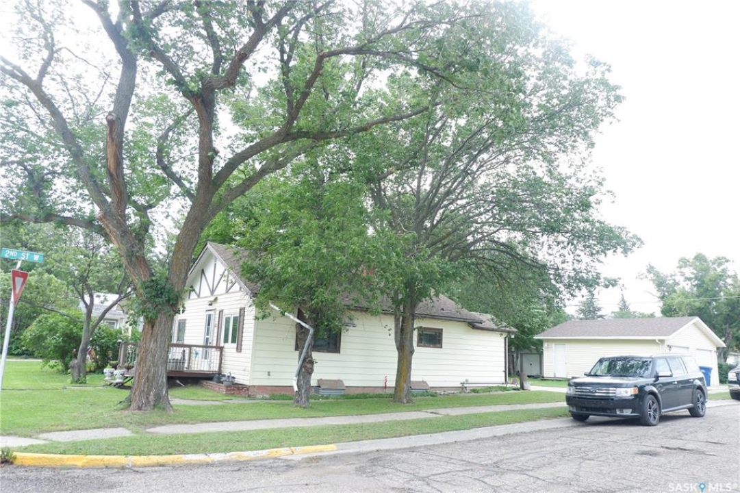 Located in the Town of Assiniboia. Come check out this great home on a corner lot. Newer double detached garage! The home has an eat-in kitchen, living room, 2 bedrooms and 4-piece bath. The basement is partially developed with a 3-piece bath and lots of storage rooms. The furnace has been upgraded to a high efficient natural gas model recently. There is extra parking in the back with a concrete parking pad. This property is currently rented. Good starter home or investment property. Come look at it today!