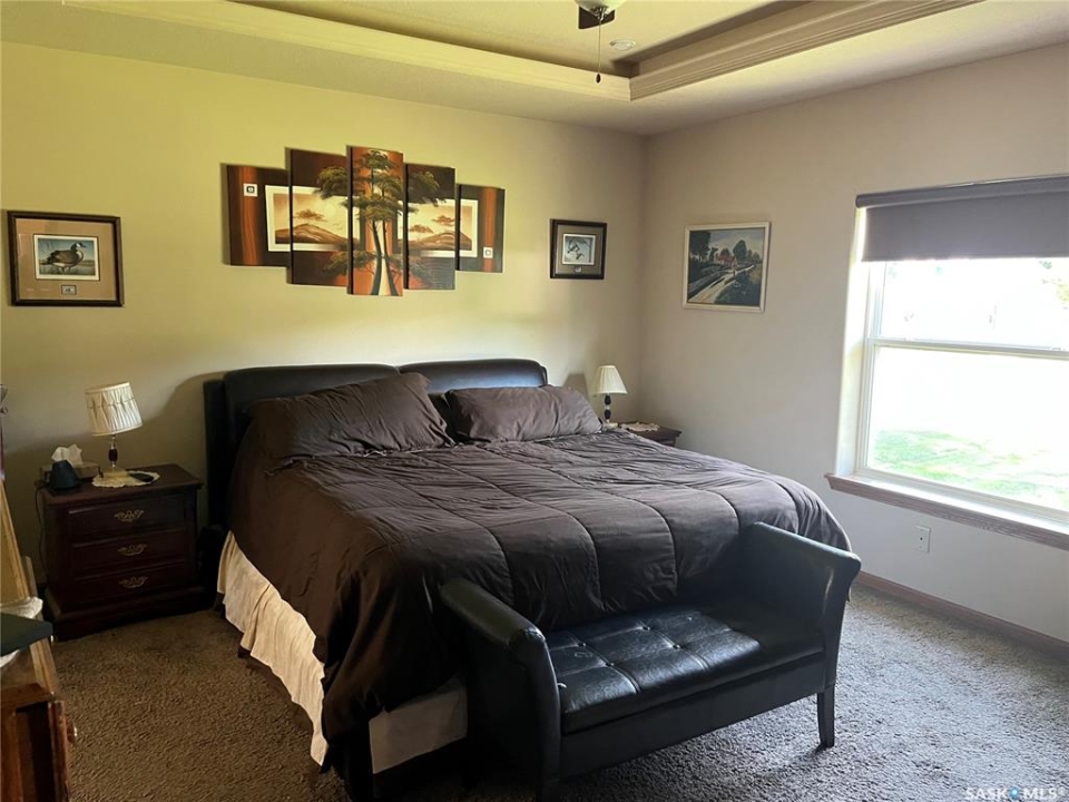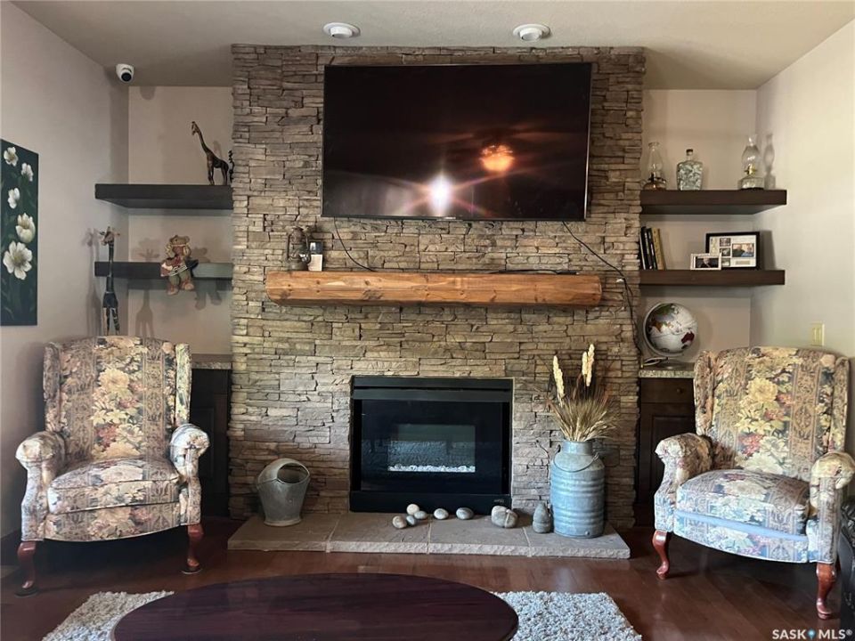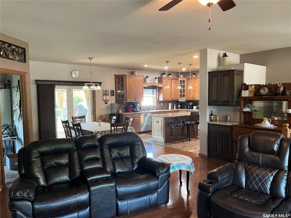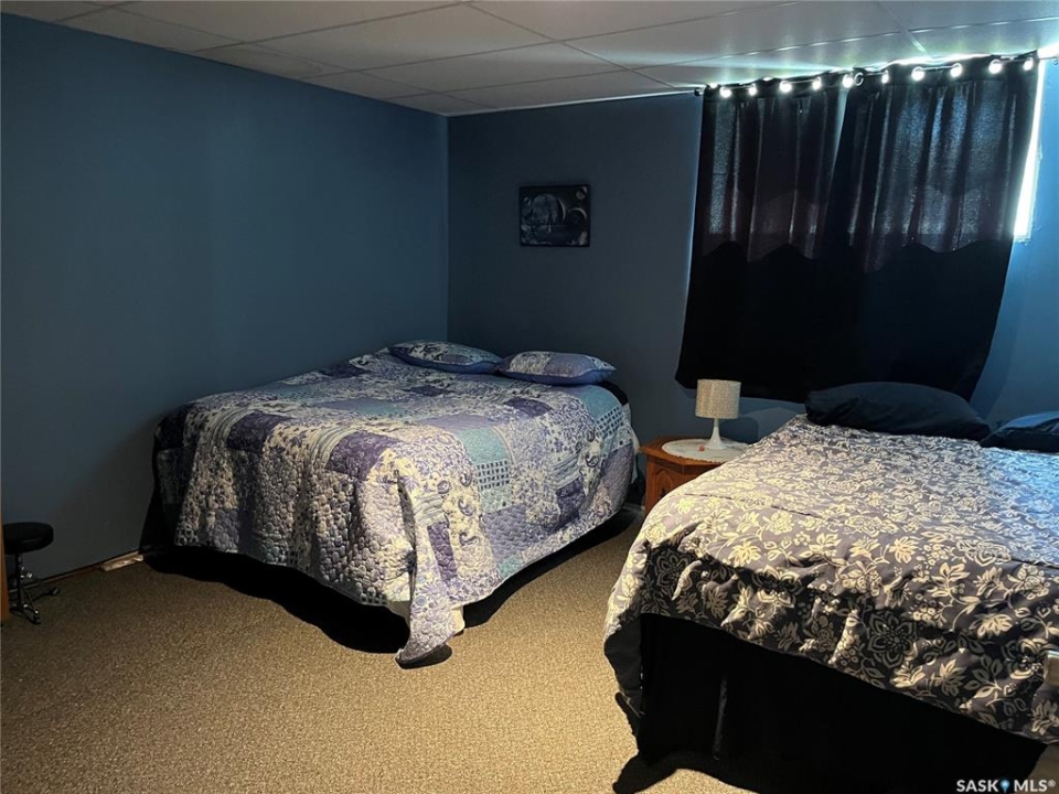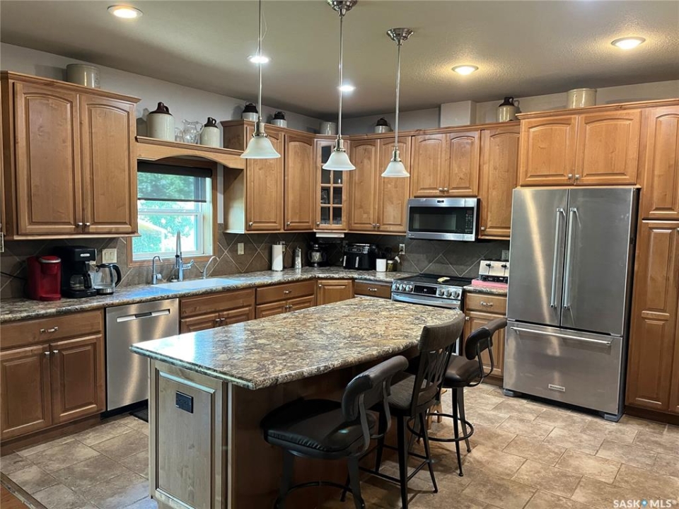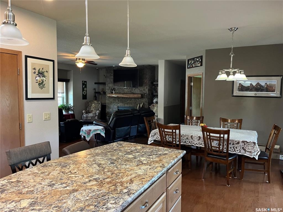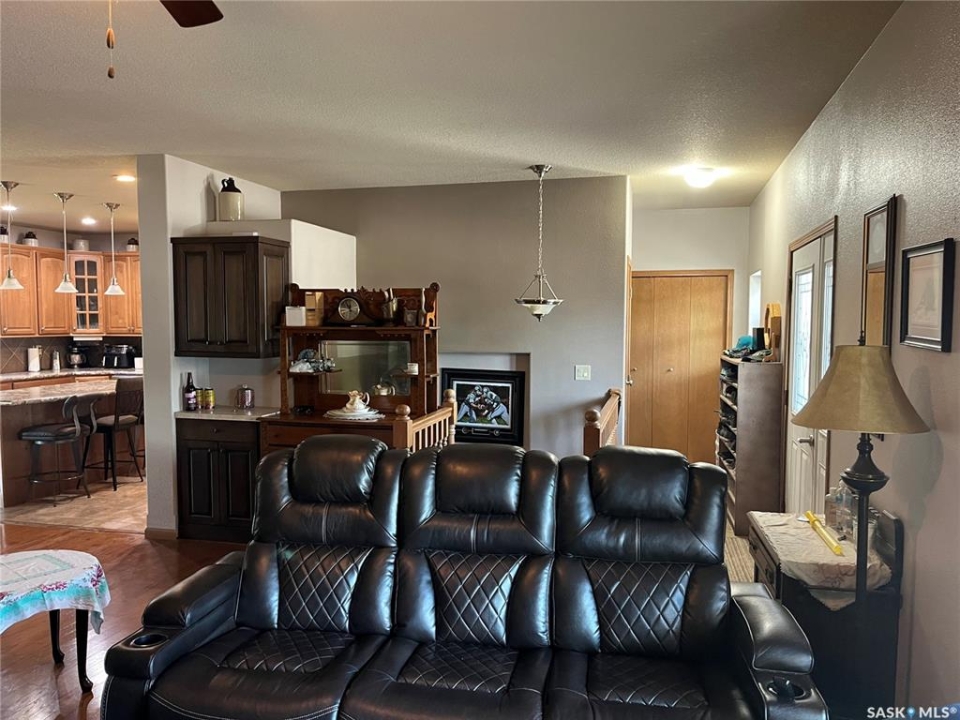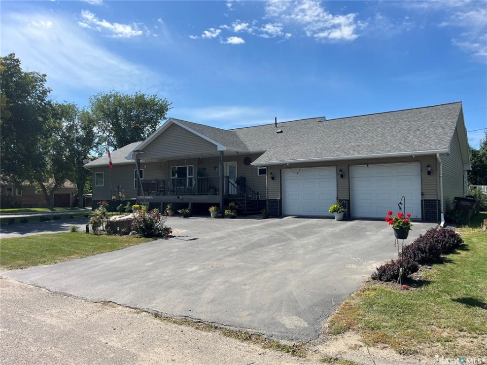 This home is a large 1884 square foot bungalow style modular on a fully finished basement. The two car garage is 36' deep with plenty of room for two vehicles plus ATV's etc... The home is a 2013 build with wood style high end finishings, stone fireplace surround, and more. The main floor features an open concept living, dining, kitchen and porch area, office, bedroom, bathroom, laundry/mudroom off garage and primary suite with 4-piece ensuite and walk in closet. The basement is fairly open with a rec area, living room area, and full kitchen. It also has a bathroom/2nd laundry, large utility room with space for storage, and a separate cold room. The home is a double lot on a corner in a prime location close to schools, hospital, pool rec center, and downtown. This is a must see home ready to move into now without the hassle and high costs of a new builds. The highlight of the yard is a covered composite deck in back yard with good privacy and covered deck on front.