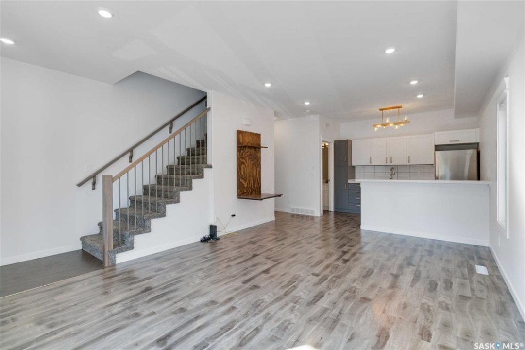 Welcome to Optimist View, the perfect place to start your homeownership journey. This stylish three-bedroom townhome sits directly across from Optimist Park, giving you front-row access to wide open green space, morning sunrises, and a neighbourhood full of energy. Inside, the main floor is open and inviting, with a sleek kitchen featuring quartz countertops, stainless steel appliances, and a functional island that's perfect for everything from weeknight meals to Friday night get-togethers. The living and dining areas flow seamlessly together, and a convenient two-piece bathroom keeps life simple when entertaining. Upstairs, you'll love the thoughtful layout with two bright bedrooms, a full bathroom, and laundry right where you need it. No more hauling baskets up and down stairs. The fully finished basement offers even more living space — a large family room with oversized windows, a private bedroom, and another full bathroom, making it ideal for guests, roommates, or a cozy movie night. One of the best features? The east-facing balcony that overlooks the park. Imagine sipping your morning coffee while the sun comes up, or winding down at the end of the day with a glass of wine and a peaceful view. Add in a detached heated garage for those chilly winter months, and this home really has everything you need. Modern, low-maintenance, and move-in ready, this townhome checks all the boxes for first-time buyers who want style, comfort, and location in one smart package. Photos taken before occupied
