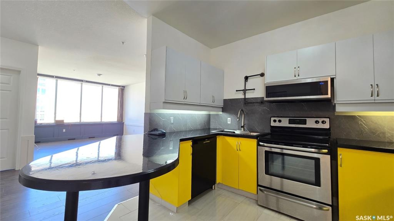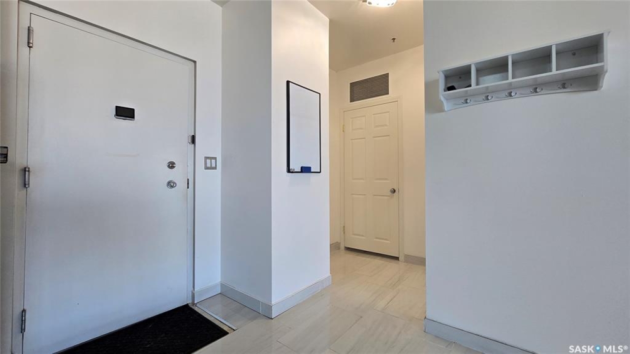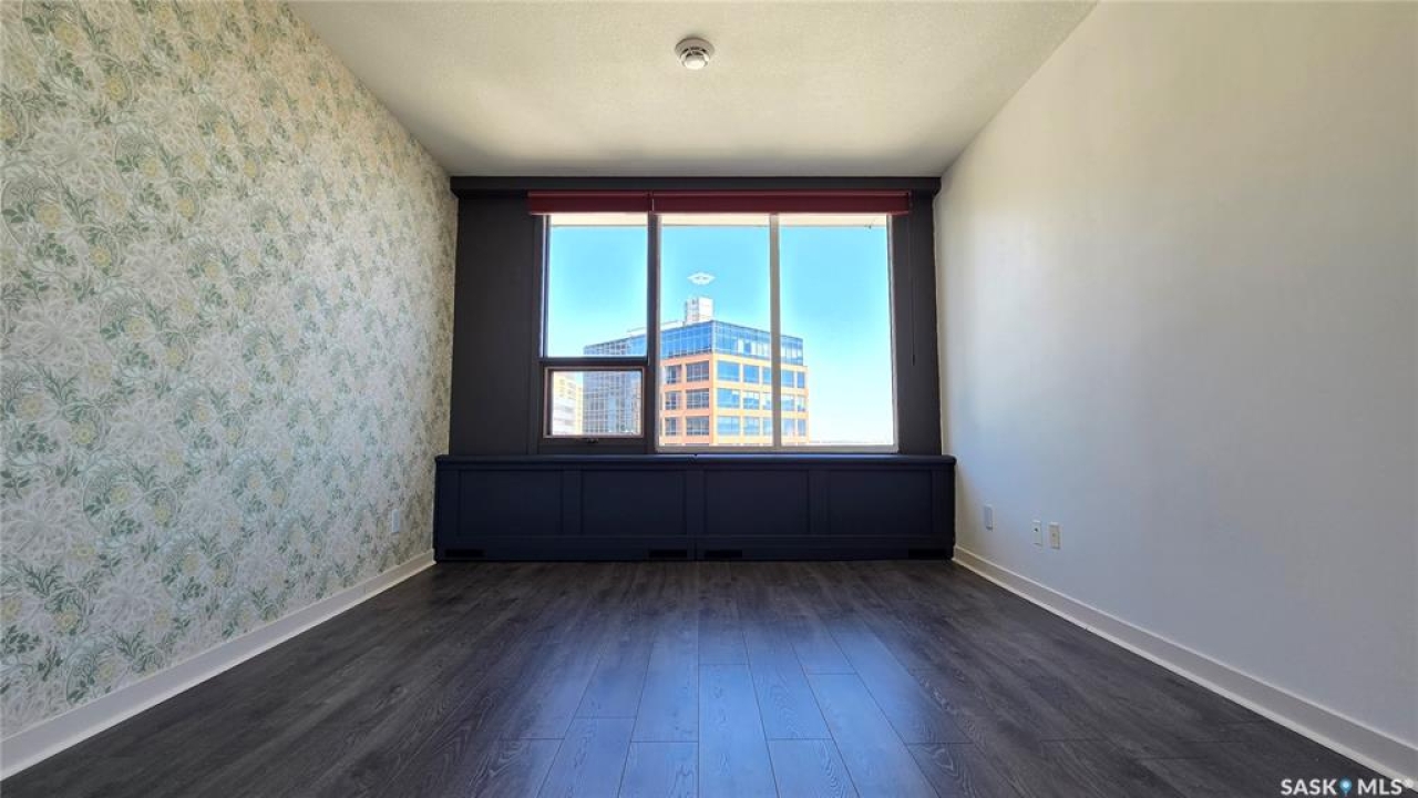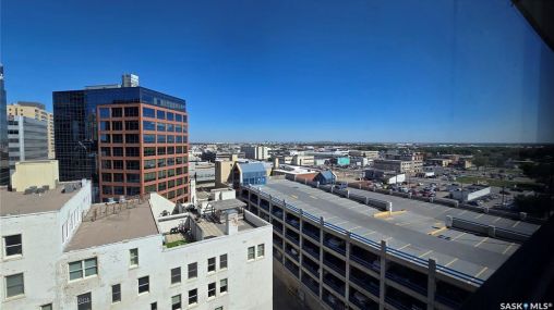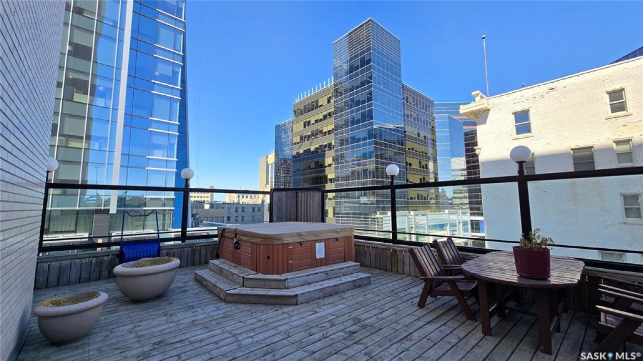 This high rise condo is securely nestled in downtown Regina, and offers an urban and convenient lifestyle. The Hamilton building is a well-known Regina staple, and by purchasing this bright and well updated 2 bedroom condo, you'll gain access to a plethora of amenities, not limited to; Gated and secure parking, fully outfitted gym, large amenities room for lounging and hosting, designated storage area, and of course the outdoor patio and garden area, complete with BBQ and hot tub. This unit is freshly painted with new laminate flooring throughout. The kitchen offers ample cupboard and counter space, stainless steel appliances, and a built in dishwasher. The main bath has been updated with new vanity, sink, fixtures, and backsplash. Both bedrooms face North and offer wonderful views of the city. The primary bedroom is tastefully wallpapered and boasts its own 4 piece ensuite, with updated vanity, sink, and fixtures. Other features of this condo include smart plugs and light switches, tasteful custom built coverings for the radiators, modern light fixtures, and custom blinds. Be right in the action of downtown, and enjoy the safety of being 8 floors up, with your vehicle in a completely gated lot, and even a concierge in the lobby to handle your deliveries.