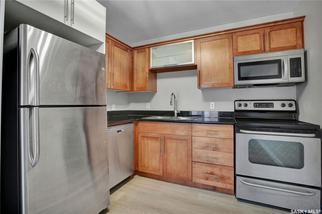 Welcome to The Opus! Enjoy modern finishes like maple cabinetry, sleek granite counters, and stainless-steel appliances in this boutique style 1-bedroom condo. The bedroom is bright and oversized for comfort. You will also find A/C and in-suite laundry setting the stage for your own self-contained sanctuary. With upgraded chandelier light fixtures, brand new vinyl flooring, and other new finishes, it is a property with an excellent return on investment. Situated close to all amenities, and a quick bus ride or drive to the U of S, this is the ideal home for students, professionals, investors, or anyone looking for convenience and value. The close proximity to everything from shopping to banking (situated behind Dodge City) makes the main floor bike room the perfect motivation to save money, consider the environment, and get fit in those warmer months. Bonus: PETS ARE ALLOWED with some restrictions so check with your favourite REALTOR ® for more details and to schedule your showing!