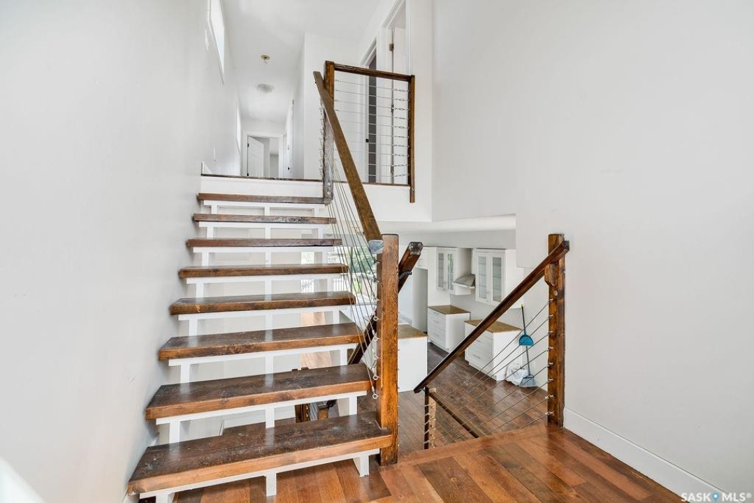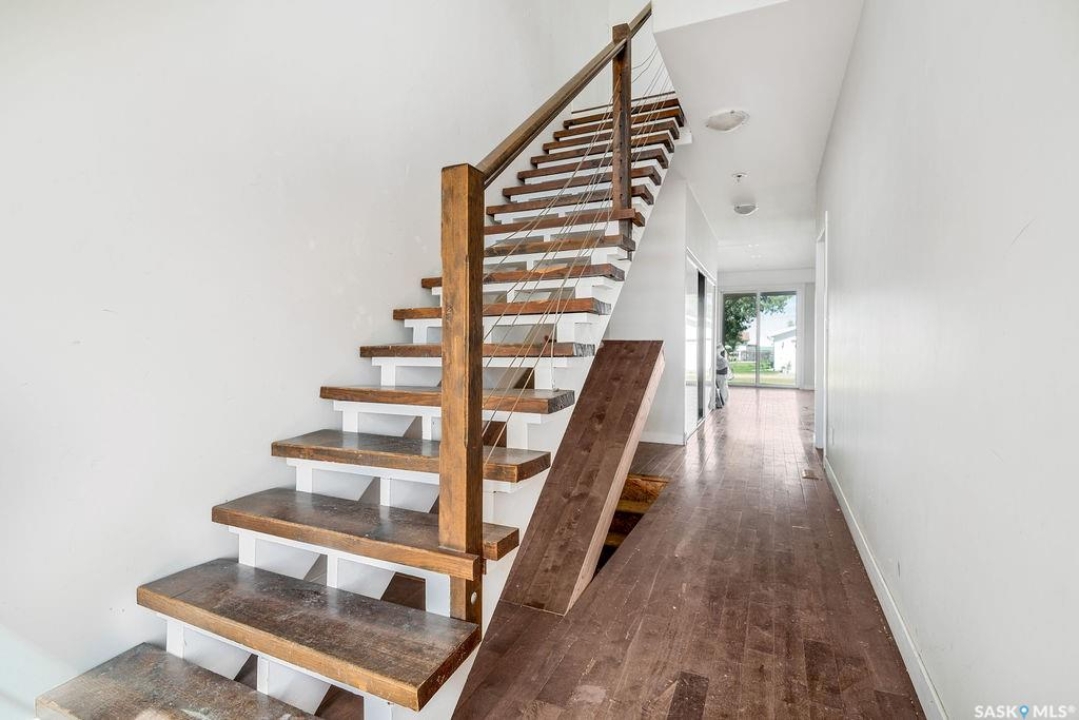 Welcome to this stylish three-storey home in the friendly community of Wilcox, Saskatchewan—just a short, convenient drive to Regina. Built in 2015 and offering over 2,000 sq. ft. of living space, this home is ideal for families or professionals looking for the perfect blend of small-town living with a city feel. The main level features a spacious open area with access to the backyard, along with a full 3-piece bathroom—perfect for a family rec room, guest space, or home office. On the second level, natural light fills the open-concept living area. A front balcony and rear deck provide outdoor spaces to enjoy morning coffee or evening sunsets. The galley-style kitchen offers granite countertops, a large island, and modern finishes, while a convenient 2-piece bathroom sits just off the kitchen. The third level is home to three comfortable bedrooms, including a bright and airy primary suite with direct access to a 4-piece bathroom. This bathroom can also be entered from the hallway, making it easily accessible to the additional bedrooms. Additional highlights include a single-car attached garage, a thoughtful floor plan spread across three levels, and a contemporary design that's move-in ready. Wilcox is more than just a commuter town—it's also home to the renowned Athol Murray College of Notre Dame, a school known across Canada for its academic and athletic excellence. This is your chance to enjoy small-town peace, a welcoming community, and quick access to the amenities of Regina—all in a modern home designed for today's lifestyle.