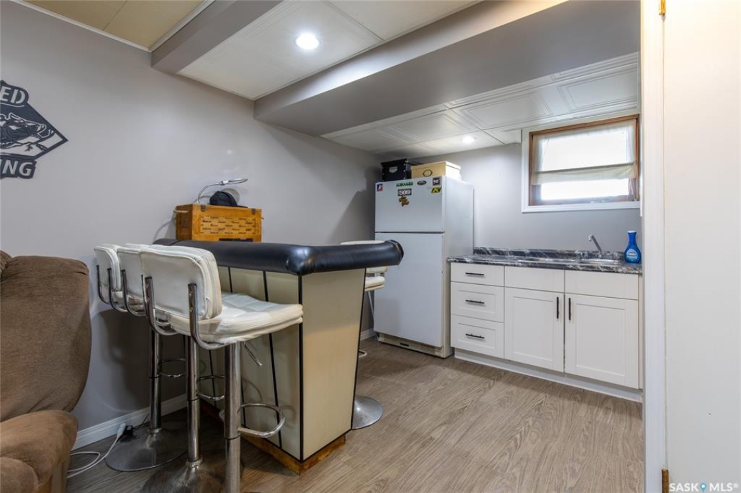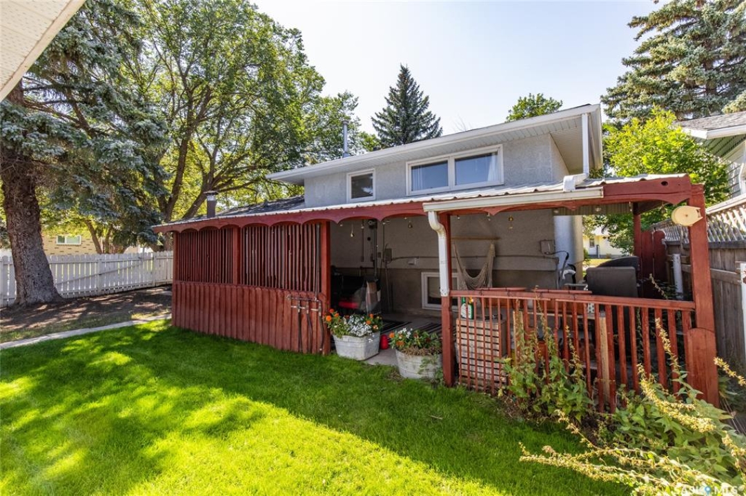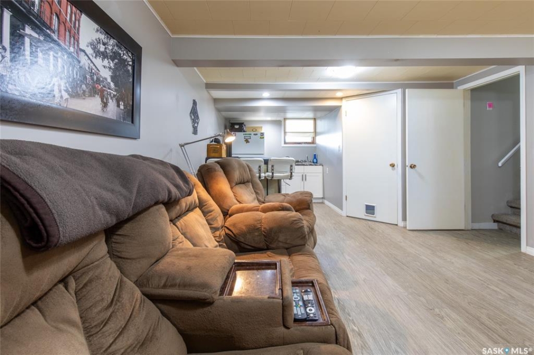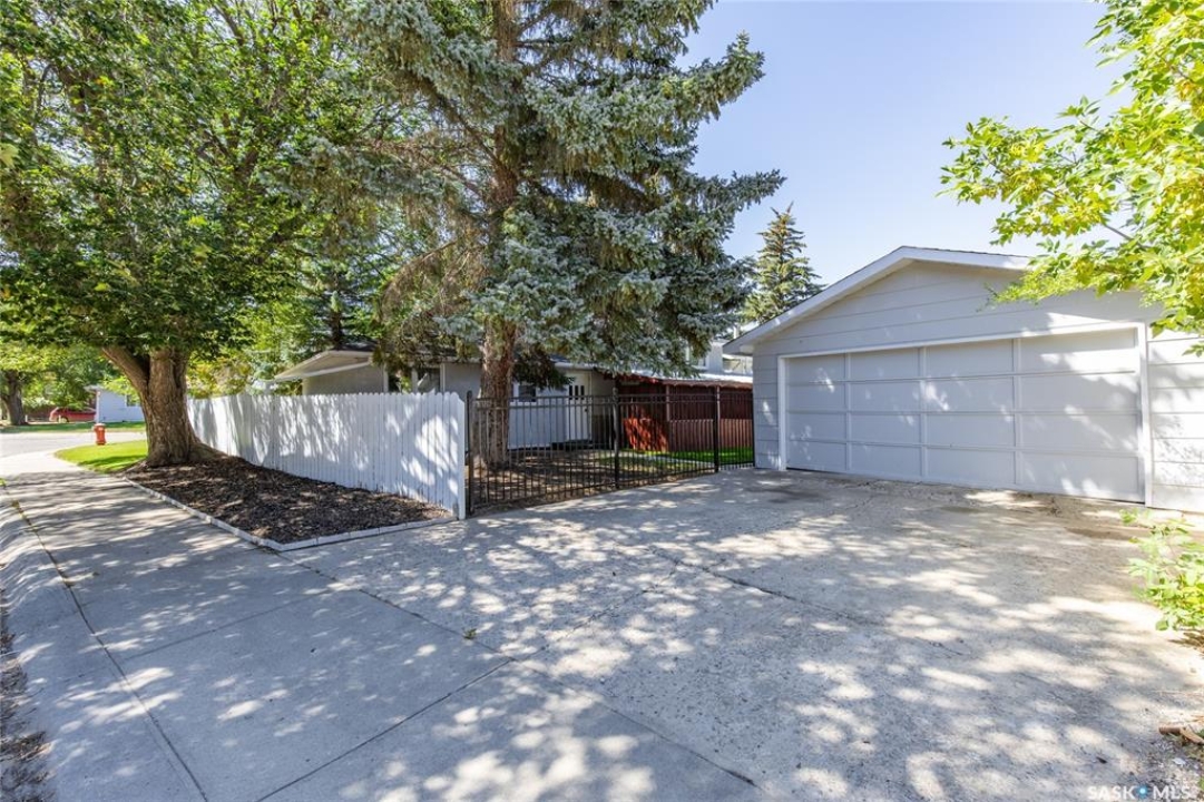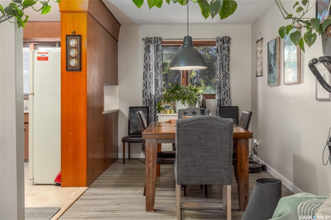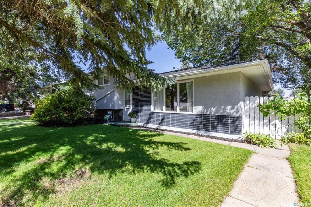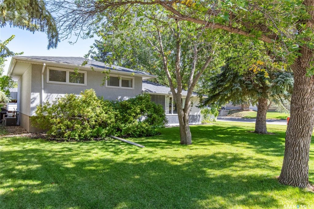 Welcome to your next chapter in Moose Jaw's always-popular Palliser neighbourhood! This 3-level split sits on a quiet crescent just steps from schools, parks, and even a corner store (because we all know late-night snack runs are a thing). The main floor has a bright, open vibe with newer vinyl flooring in the living and dining rooms. The U-shaped kitchen keeps everything close at hand, with just enough cabinet space for the essentials. Right next to it, the dining room is perfect for family dinners or hosting friends. That backyard? It's a spacious, fenced corner lot with room for kids and, pet. Grill dinner during a summer storm or sip coffee while listening to the rain; either way, it's a space you'll love. Upstairs, you'll find two good-sized bedrooms and a primary bedroom with its own 2-piece ensuite. A full bath and a built-in, lighted linen closet complete the level. Downstairs, the family room is your fun zone, perfect for movie nights, game days, or mixing drinks at the built-in bar. The laundry and utility area is downstairs, too. Outside, mature trees add shade and charm, and the double detached garage with a double driveway means no more parking headaches. Move in now, make it your own over time, and enjoy the best of Palliser living. This might just be “the one.”