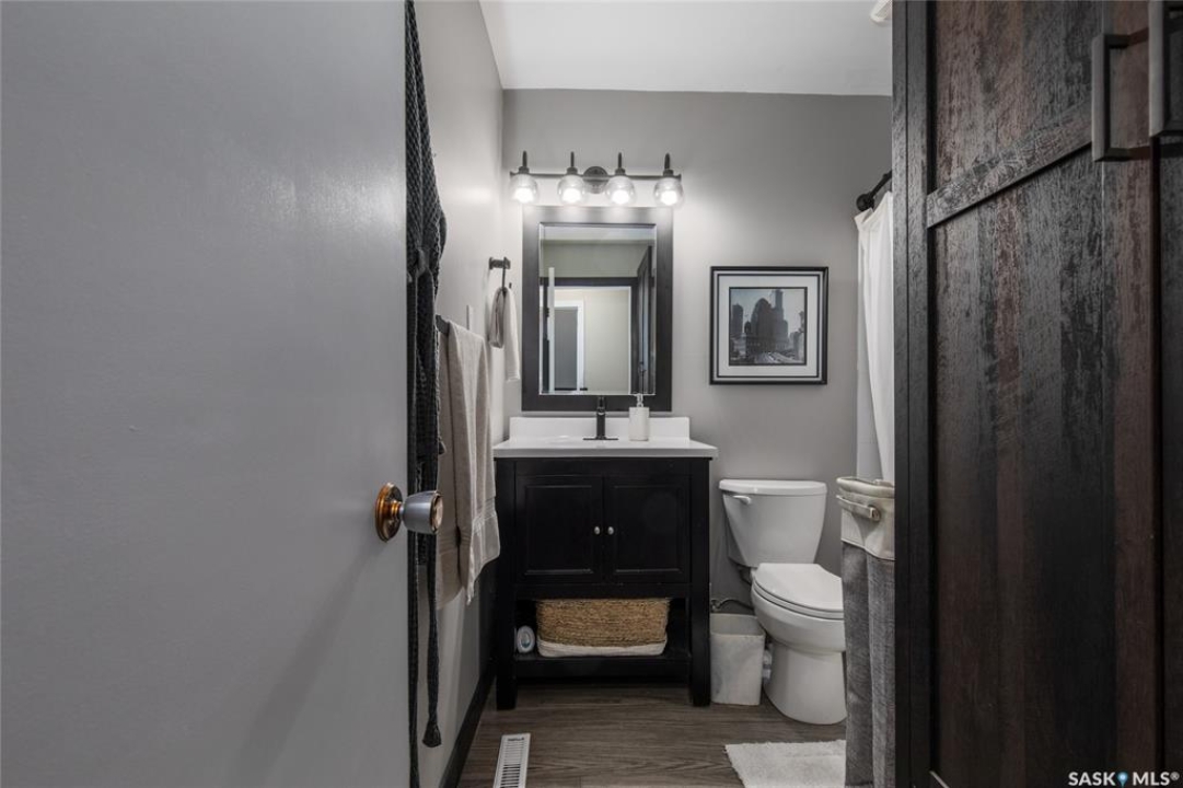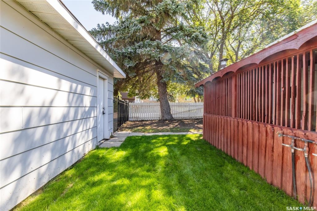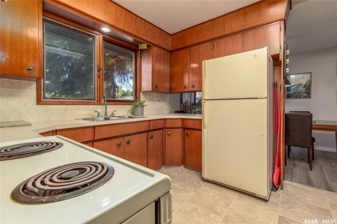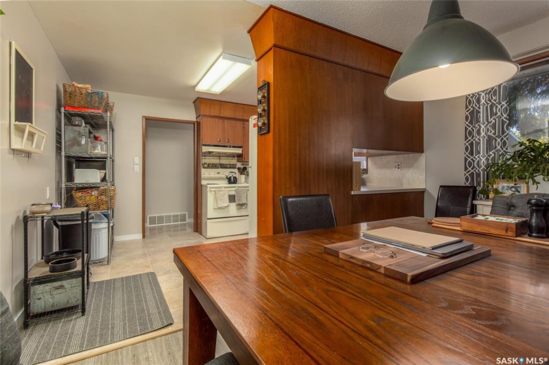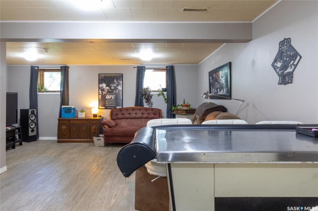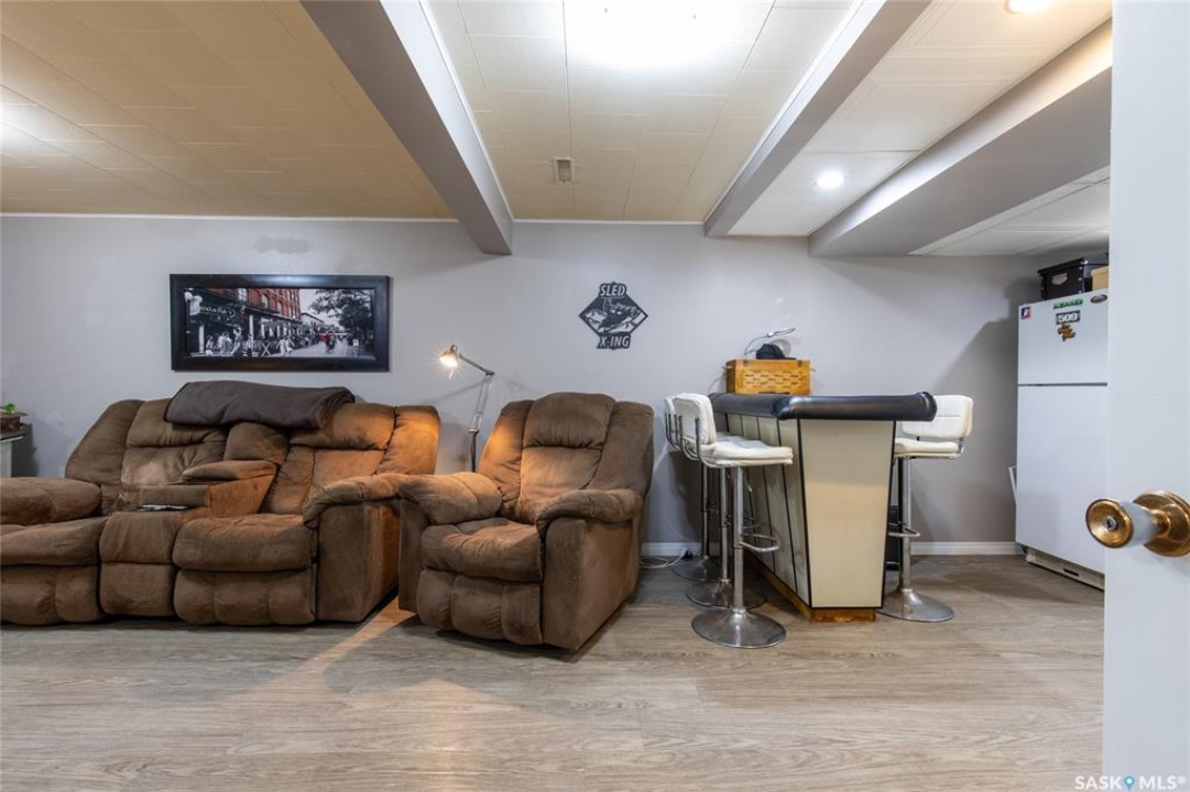 Welcome to your next chapter in Moose Jaw's always-popular Palliser neighbourhood! This 3-level split sits on a quiet crescent just steps from schools, parks, and even a corner store (because we all know late-night snack runs are a thing). The main floor has a bright, open vibe with newer vinyl flooring in the living and dining rooms. The U-shaped kitchen keeps everything close at hand, with just enough cabinet space for the essentials. Right next to it, the dining room is perfect for family dinners or hosting friends. That backyard? It's a spacious, fenced corner lot with room for kids and, pet. Grill dinner during a summer storm or sip coffee while listening to the rain; either way, it's a space you'll love. Upstairs, you'll find two good-sized bedrooms and a primary bedroom with its own 2-piece ensuite. A full bath and a built-in, lighted linen closet complete the level. Downstairs, the family room is your fun zone, perfect for movie nights, game days, or mixing drinks at the built-in bar. The laundry and utility area is downstairs, too. Outside, mature trees add shade and charm, and the double detached garage with a double driveway means no more parking headaches. Move in now, make it your own over time, and enjoy the best of Palliser living. This might just be “the one.”