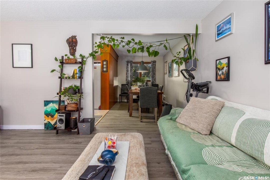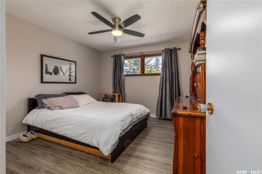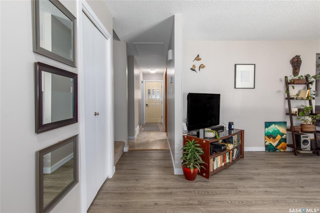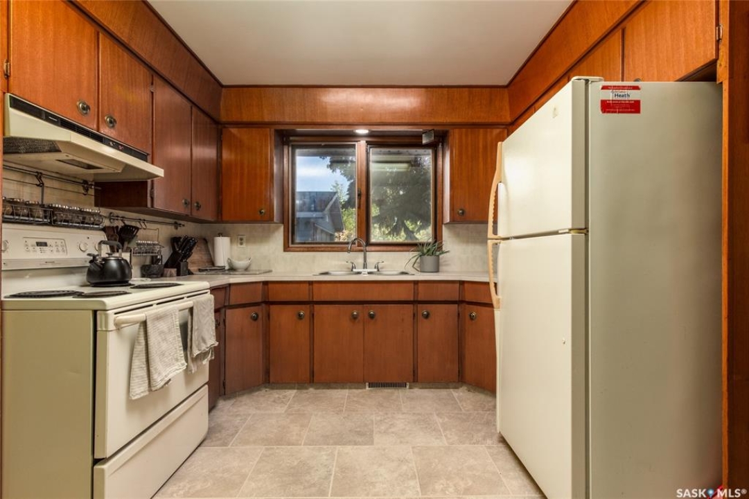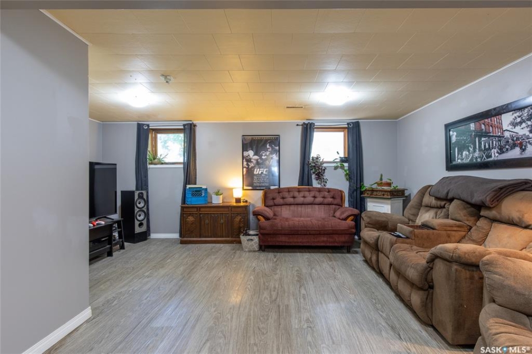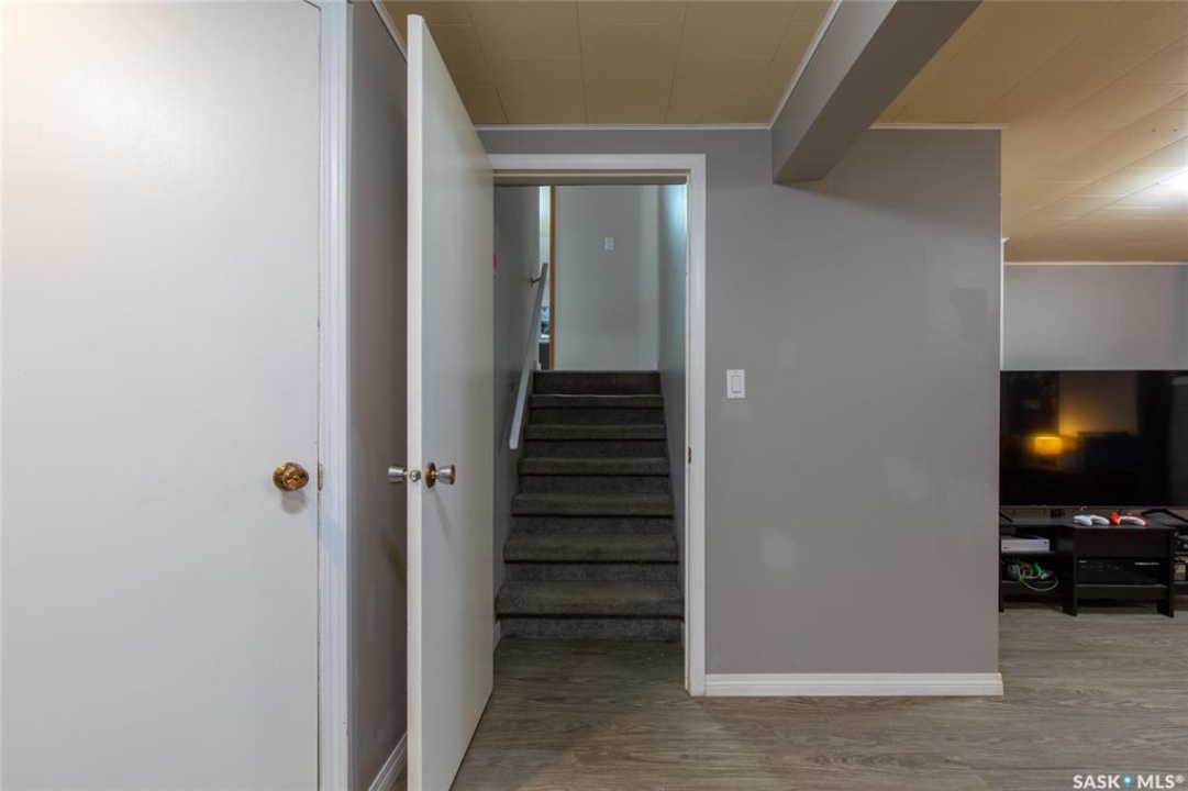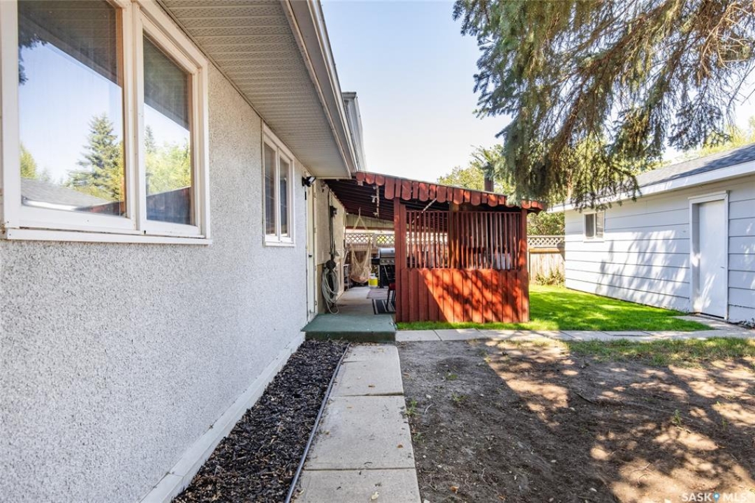Welcome to your next chapter in Moose Jaw's always-popular Palliser neighbourhood! This 3-level split sits on a quiet crescent just steps from schools, parks, and even a corner store (because we all know late-night snack runs are a thing). The main floor has a bright, open vibe with newer vinyl flooring in the living and dining rooms. The U-shaped kitchen keeps everything close at hand, with just enough cabinet space for the essentials. Right next to it, the dining room is perfect for family dinners or hosting friends. That backyard? It's a spacious, fenced corner lot with room for kids and, pet. Grill dinner during a summer storm or sip coffee while listening to the rain; either way, it's a space you'll love. Upstairs, you'll find two good-sized bedrooms and a primary bedroom with its own 2-piece ensuite. A full bath and a built-in, lighted linen closet complete the level. Downstairs, the family room is your fun zone, perfect for movie nights, game days, or mixing drinks at the built-in bar. The laundry and utility area is downstairs, too. Outside, mature trees add shade and charm, and the double detached garage with a double driveway means no more parking headaches. Move in now, make it your own over time, and enjoy the best of Palliser living. This might just be “the one.”