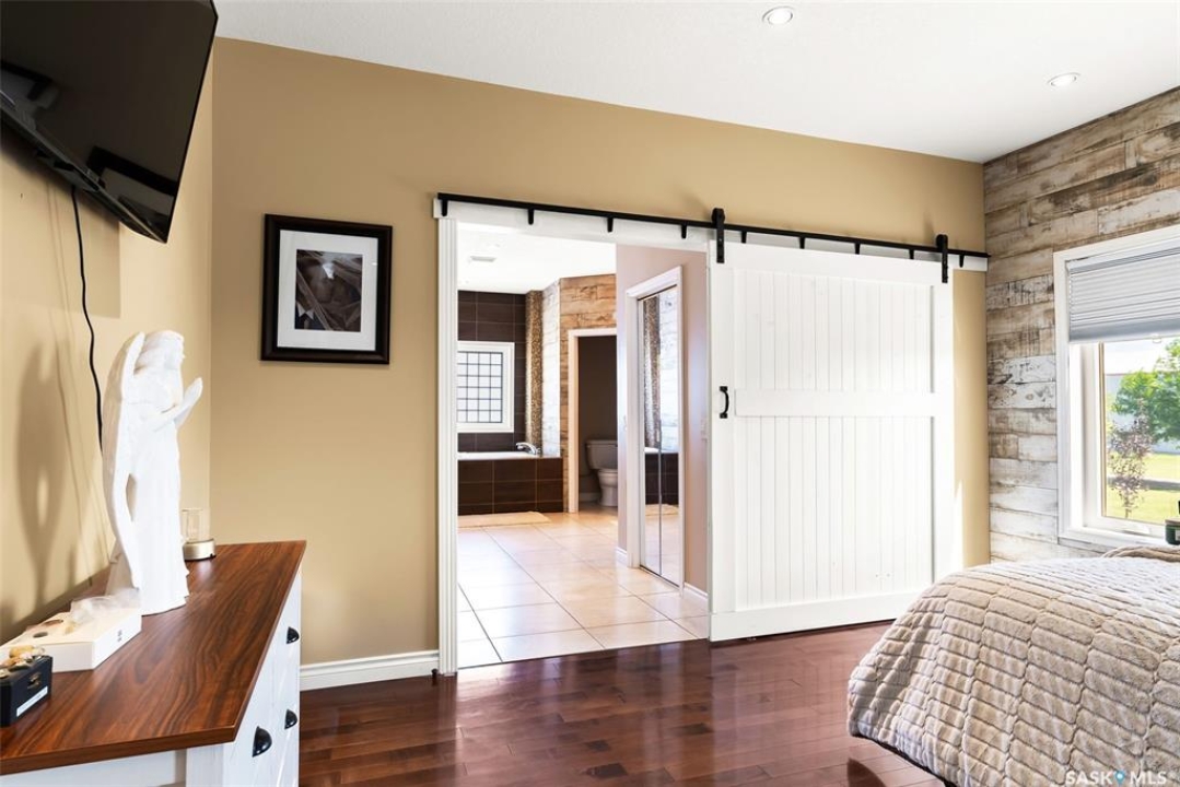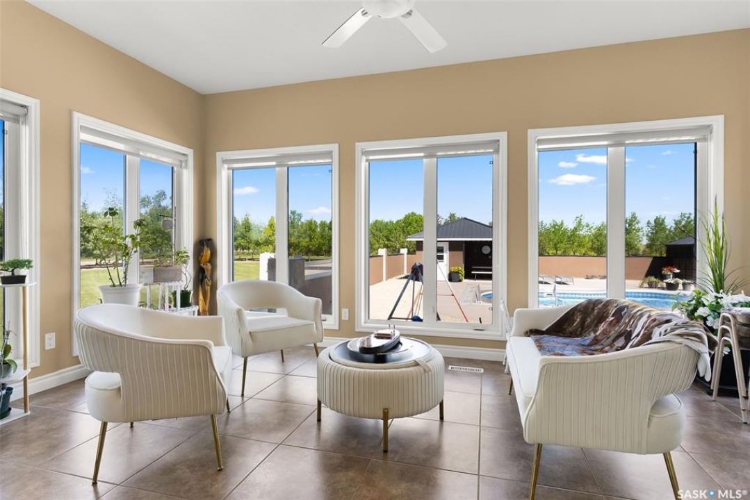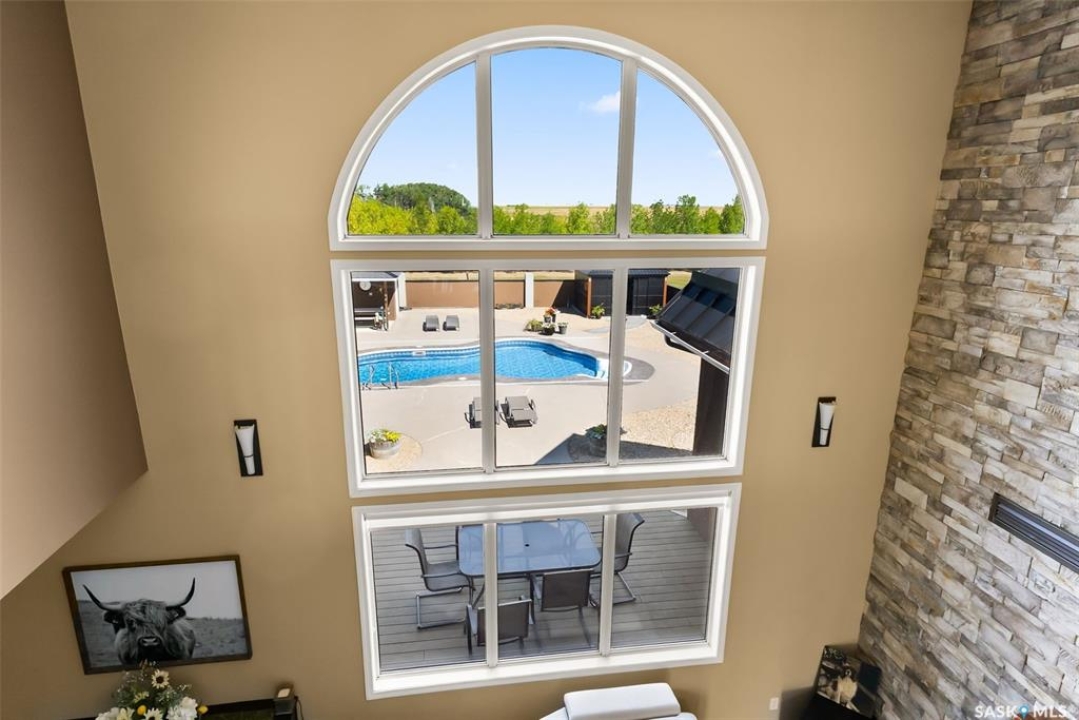 Stunning acreage property 7 minutes North of Estevan. Customized acreage developed in 2010 with exceptional family home, beautiful yard with in-ground pool and large shop. 1 3/4 story, 3072 square foot home with 5 bedrooms, 4 baths, open concept with multiple features and upgrades including large vaulted main living space with custom kitchen/dining area/iving room with wood burning fireplace and 2 story windows overlooking the swimming pool/4 season sun room/good size office-flex room/bathroom and pantry area. Large main floor primary bedroom with 2 closets/large ensuite with tub and shower and door that accesses the rear deck/pool area. The 2nd floor boasts 3 large bedrooms/bathroom and huge family-theatre room. The fully developed basement features heated custom concrete flooring with a massive recreation room/bedroom/bathroom and den. 2 car attached garage with in-floor heat and 42x60 shop with concrete floor/large over head door/geothermal loops in-floor heat (needs unit to operate) The backyard features a large rear deck, in-ground swimming pool, pool house and gazebo. Landscaped and treed yard, fire pit area and much much more. ***3 acre parcel listed that would need to be subdivided. Could be attached and purchased with additional 157 acre farm land parcel (listed separately)