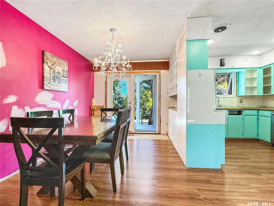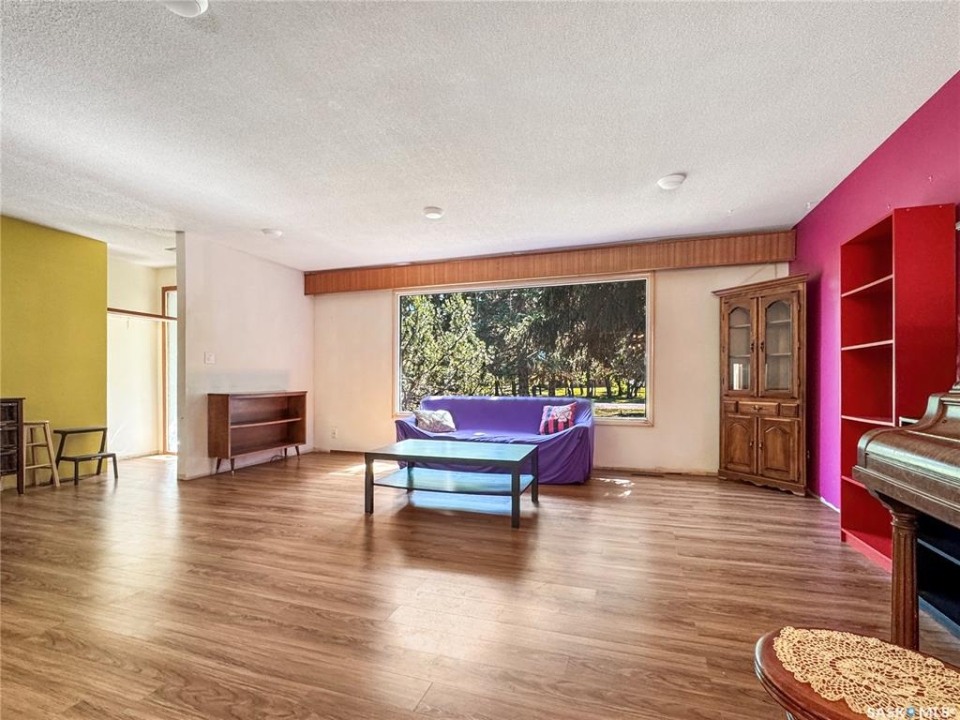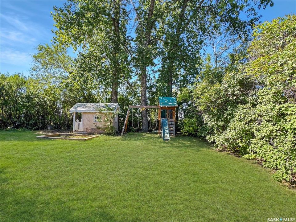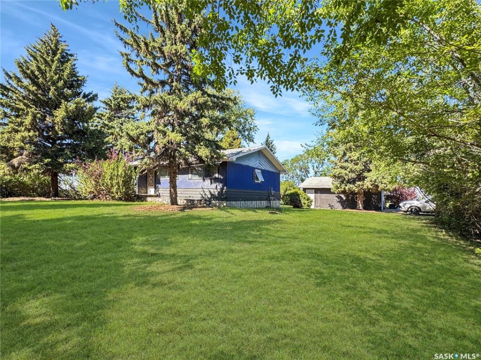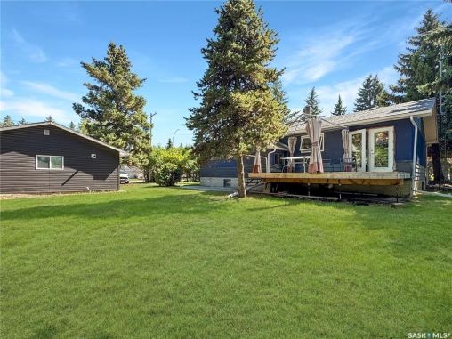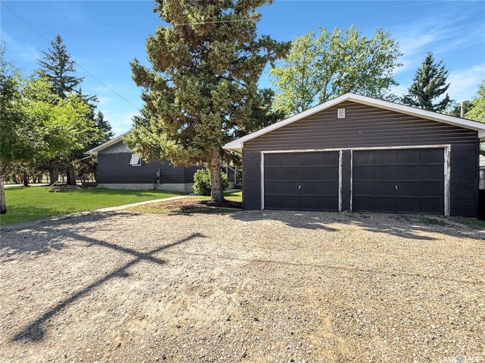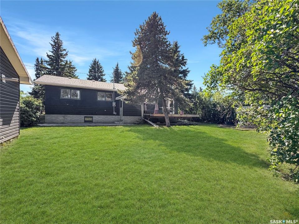 Welcome to this charming 1964-built bungalow, perfectly set on a beautifully treed lot in the quiet community of Cut Knife, Saskatchewan. Offering 1,353 sq. ft. of comfortable living space, this home is ideal for families looking for space, privacy, and room to grow. The main floor features an inviting open-concept layout with great flow for family living. It includes four bedrooms and a full four-piece bathroom. The bright kitchen offers ample cupboard and counter space, while the dining area has patio doors that lead to a north-facing deck, perfect for summer evenings. The basement is partially finished with a spacious rec room. There is also a framed-in bedroom that, once completed, could provide a fifth bedroom. A two-piece bathroom is partially finished as well, offering even more potential for future value. The outdoor space is where this home truly shines. The mature, treed yard provides natural privacy and beauty. A fully insulated double detached garage offers year-round use, and the property also includes room for RV parking. This home combines character, space, and opportunity—all in a welcoming community where neighbors feel like family. Don't miss the chance to make this Cut Knife gem your next family home!