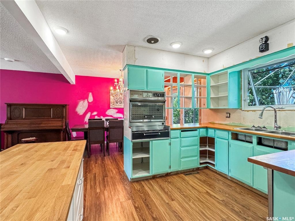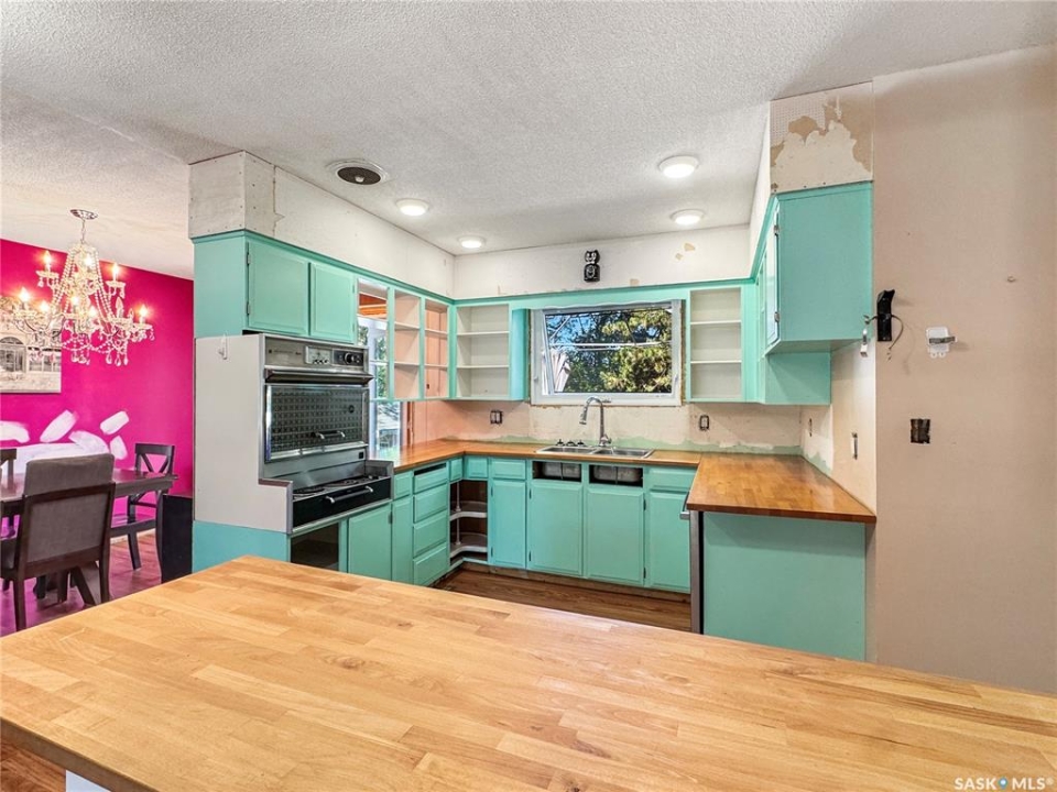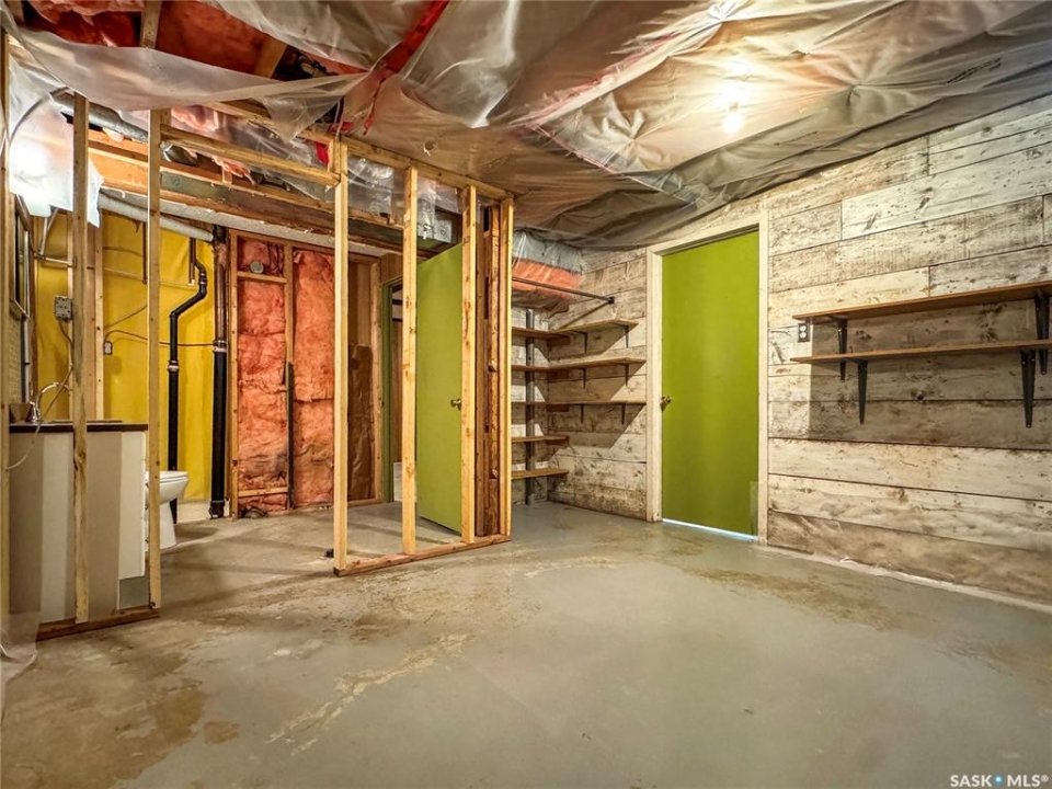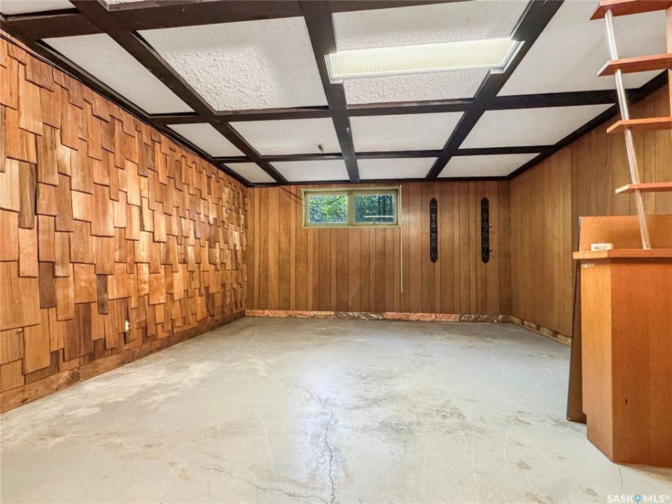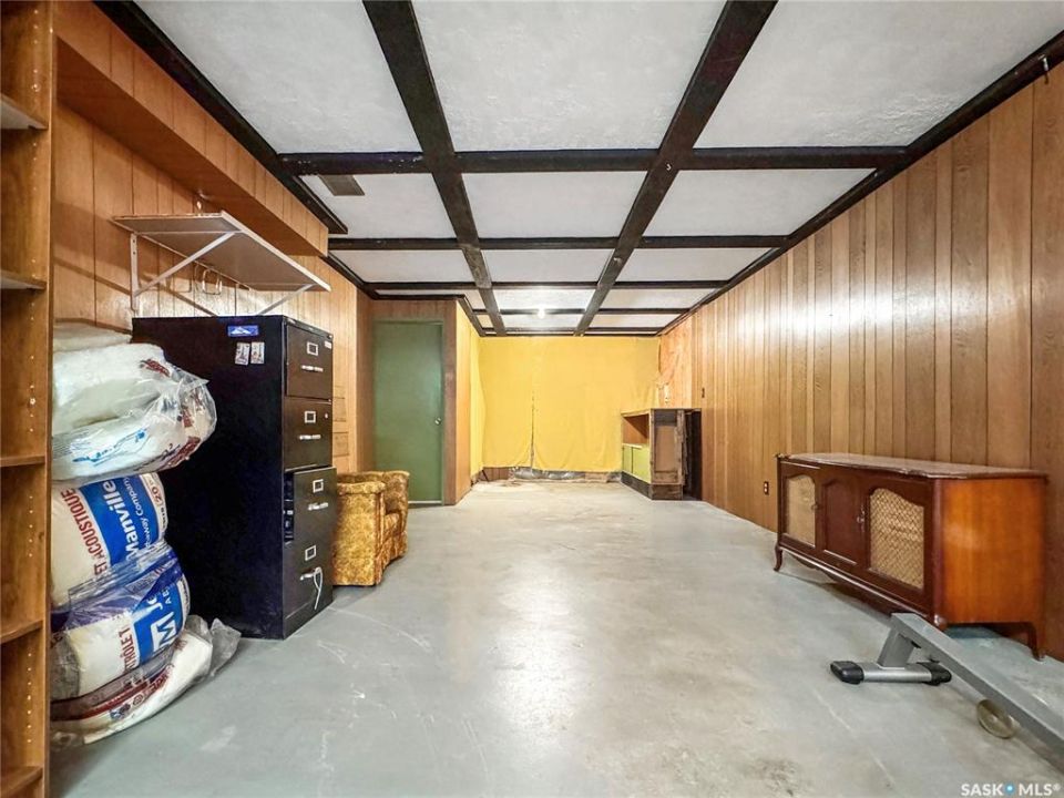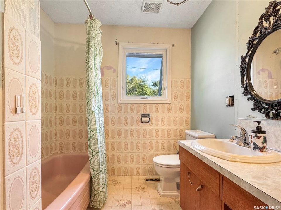 Welcome to this charming 1964-built bungalow, perfectly set on a beautifully treed lot in the quiet community of Cut Knife, Saskatchewan. Offering 1,353 sq. ft. of comfortable living space, this home is ideal for families looking for space, privacy, and room to grow. The main floor features an inviting open-concept layout with great flow for family living. It includes four bedrooms and a full four-piece bathroom. The bright kitchen offers ample cupboard and counter space, while the dining area has patio doors that lead to a north-facing deck, perfect for summer evenings. The basement is partially finished with a spacious rec room. There is also a framed-in bedroom that, once completed, could provide a fifth bedroom. A two-piece bathroom is partially finished as well, offering even more potential for future value. The outdoor space is where this home truly shines. The mature, treed yard provides natural privacy and beauty. A fully insulated double detached garage offers year-round use, and the property also includes room for RV parking. This home combines character, space, and opportunity—all in a welcoming community where neighbors feel like family. Don't miss the chance to make this Cut Knife gem your next family home!