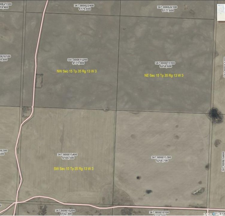 3 Quarters in one section ! Located 8 miles east of Biggar, then 3 miles south. Total 2025 Assessment is $615,000. Average assessment per 160 acre is: $207,600. There are 454 cultivated acres as per SAMA. Land is currently leased till the Dec 31 of 2029. Current rent is $22,246 per year plus GST.