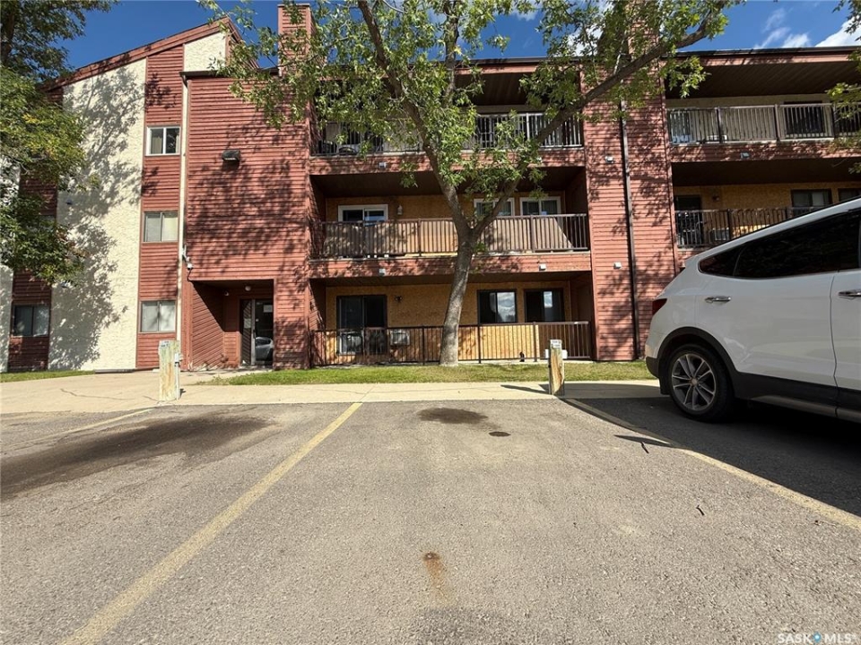 Enjoy peaceful mornings or relaxing evenings on your private patio with beautiful views of the Wildwood Golf Course. This well-kept main floor condo offers 2 bedrooms and backs directly onto open green space, creating a tranquil setting right outside your door. The building is currently undergoing exterior upgrades and a new boiler heating system installation—costs fully covered by the seller—leaving you to enjoy the benefits of a refreshed exterior and the potential value increase that comes with it. Inside, you'll find a welcoming layout finished in soft, neutral colors with durable laminate flooring and cozy carpet in the bedrooms. A generous in-suite laundry room provides plenty of convenience, while an additional storage space is located just off the patio. Your exclusive parking stall is ideally situated close to the entrance for easy access. Appliances are included—fridge, stove, brand new dishwasher, washer, and dryer-making this home truly move-in ready. Situated along a bus route and close to Circle Centre Mall, grocery stores, Lakewood Civic Centre, and all the amenities of 8th Street, this condo offers both comfort and convenience. It's also a fantastic option for university students looking for affordable living with easy access to transit and amenities. Don't miss out—this property is a must-see!