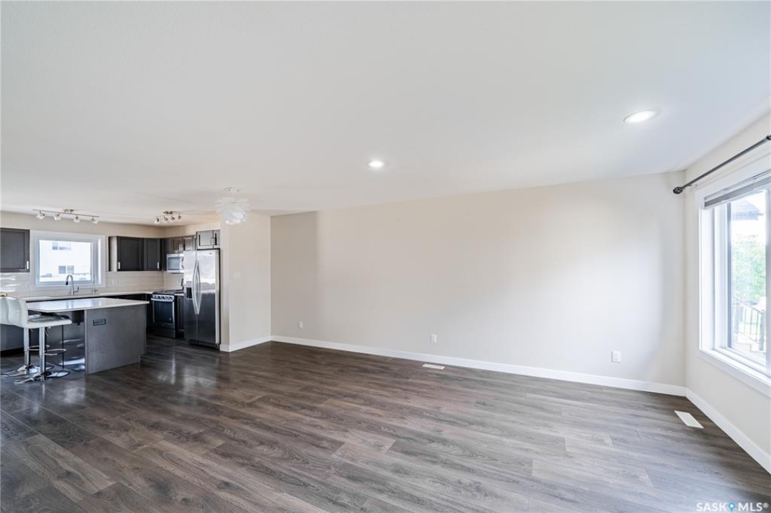 Welcome to 5580 McKenna Road – Built on Piles & NO Condo Fees! This attractive corner former show suite townhome offers exceptional curb appeal with upgraded acrylic stucco, faux cedar planking, stone accents, and elegant archways. Step inside to a spacious open-concept main floor, featuring a large family room and seamless flow between the living, dining, and kitchen areas. The kitchen is designed for function and style with abundant cabinetry and a generous island, perfect for both everyday cooking and entertaining. For added convenience, the main level also includes a tucked-away laundry area and a handy powder room. Upstairs, you'll find two well-sized secondary bedrooms, each with oversized closets, and a bright 4-piece main bathroom. The primary suite is a true retreat, complete with its own 3-piece ensuite and a dream walk-in closet. Located just steps from a large play park and the walking paths of Harbour Landing, this home combines style, comfort, and convenience with easy access to all corners of the city. Built by Pacesetter Homes – this property is a must-see!