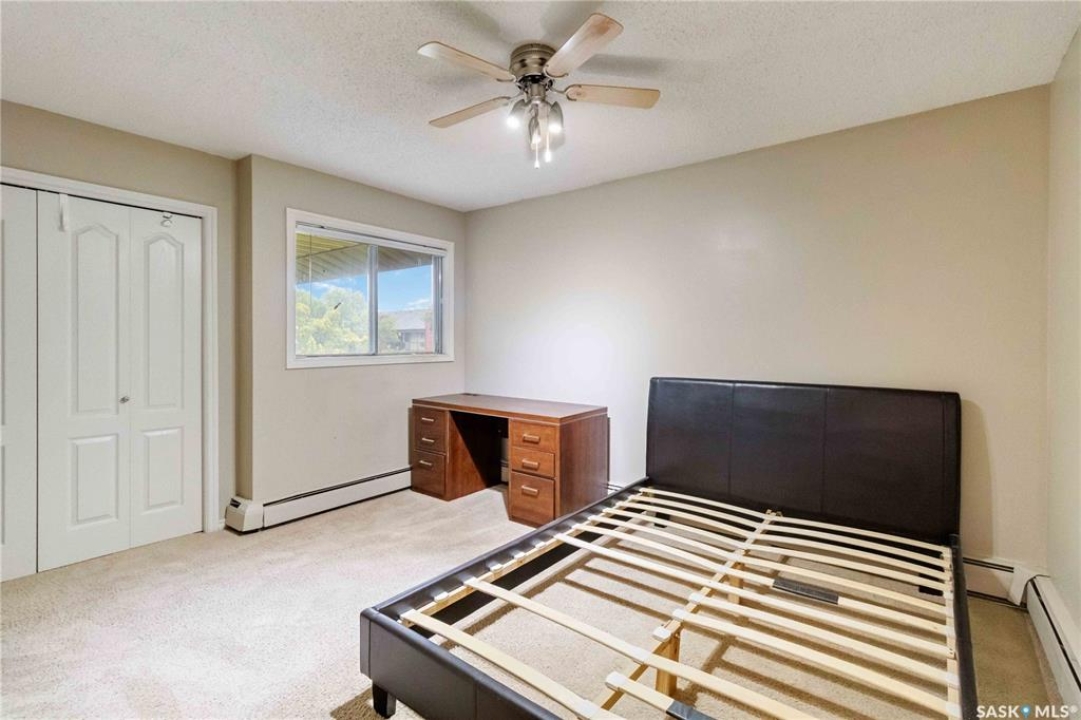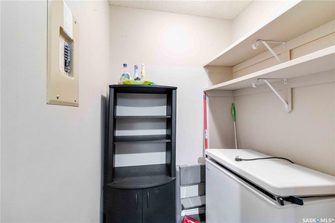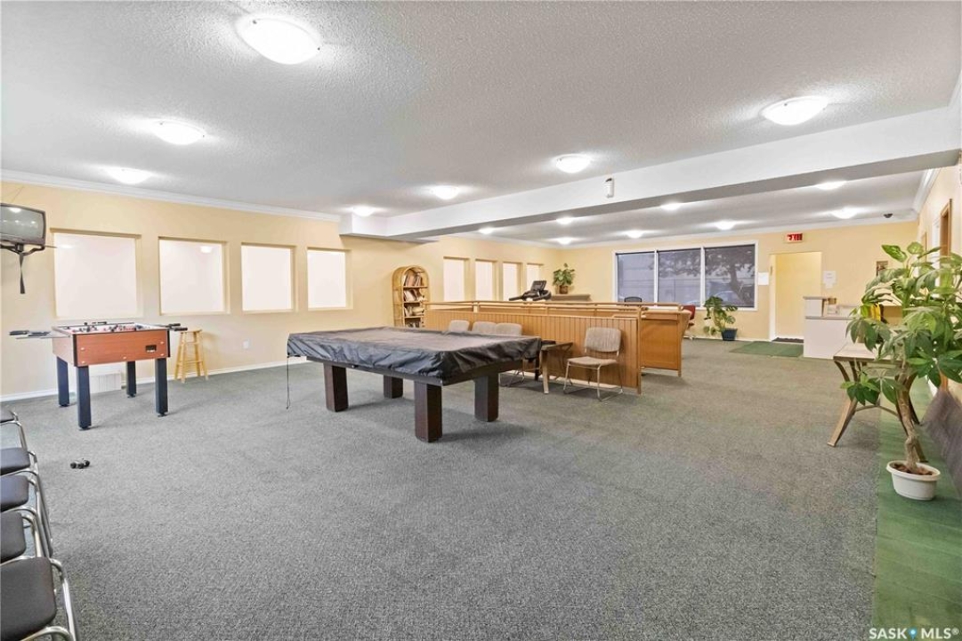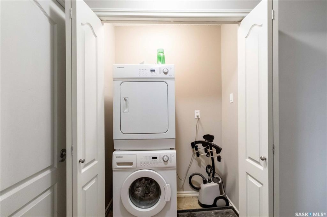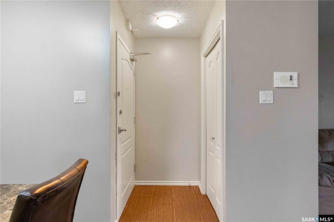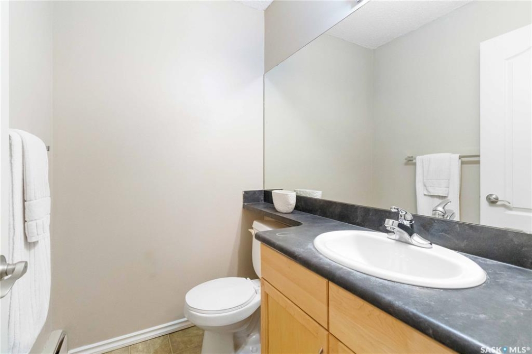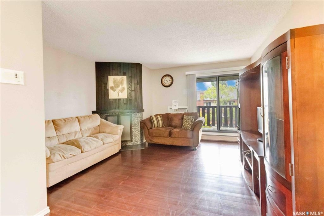 Ideally situated, this 1,087 sq. ft. top-floor corner condo with 3 bedrooms and 1.5 bathrooms is perfect for families, professionals, or students looking for a quiet, low-maintenance lifestyle in a highly convenient location. Situated within walking distance to grocery stores and just minutes from the University of Saskatchewan, Lakewood Civic Centre, Wildwood Golf Course, The Centre Mall, schools, restaurants, and more, this condo offers both comfort and convenience. Inside, the home features durable laminate tile flooring throughout the main living areas, a modern kitchen with granite countertops, maple cabinetry, and a large walk-in pantry. The open-concept living and dining area leads to an oversized covered balcony ideal for relaxing or entertaining. The spacious primary bedroom includes a private 2-piece ensuite, while the main 4-piece bathroom is easily accessible from the other two bedrooms. An in-suite washer and dryer add to the unit's convenience, and two electrified parking stalls are included. Additional highlights include condo fees that cover heat and water, a pet-friendly policy (with board approval), and access to a clubhouse with a gym. The building is also scheduled for an exterior upgrade to maintenance-free Hardie Board siding. Don't miss your chance to own this bright, spacious, and well-located top-floor condo!