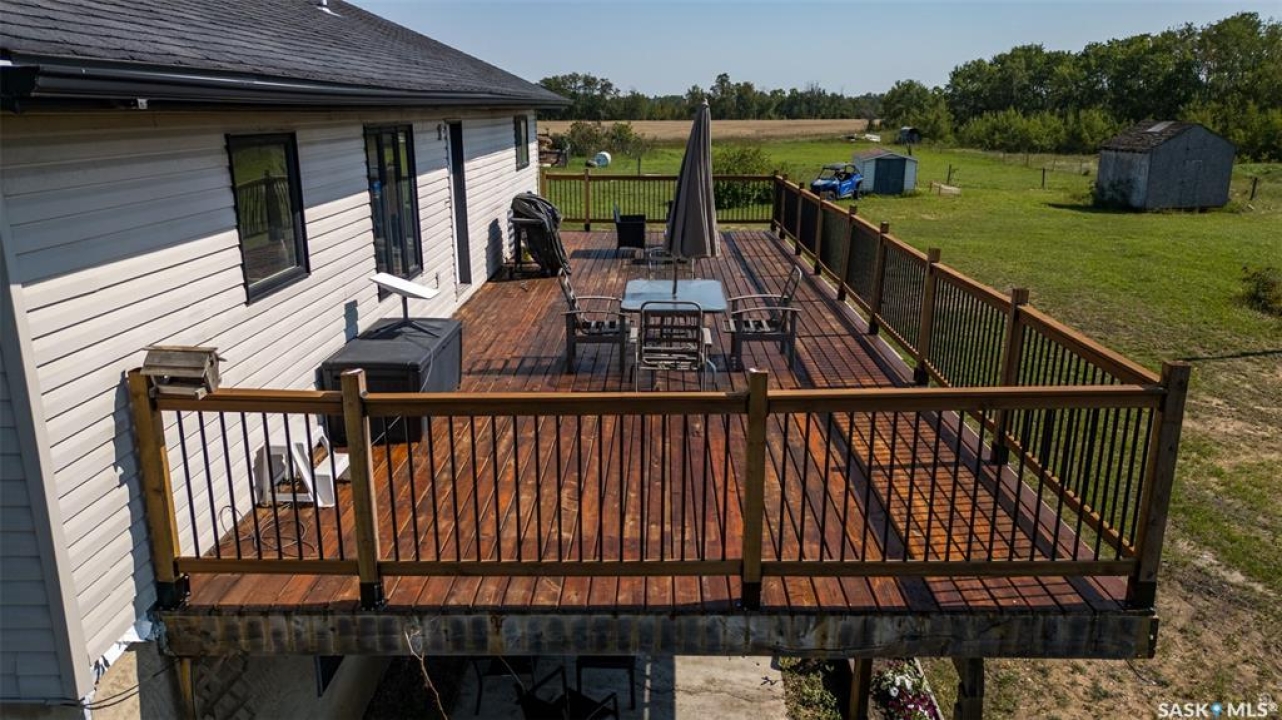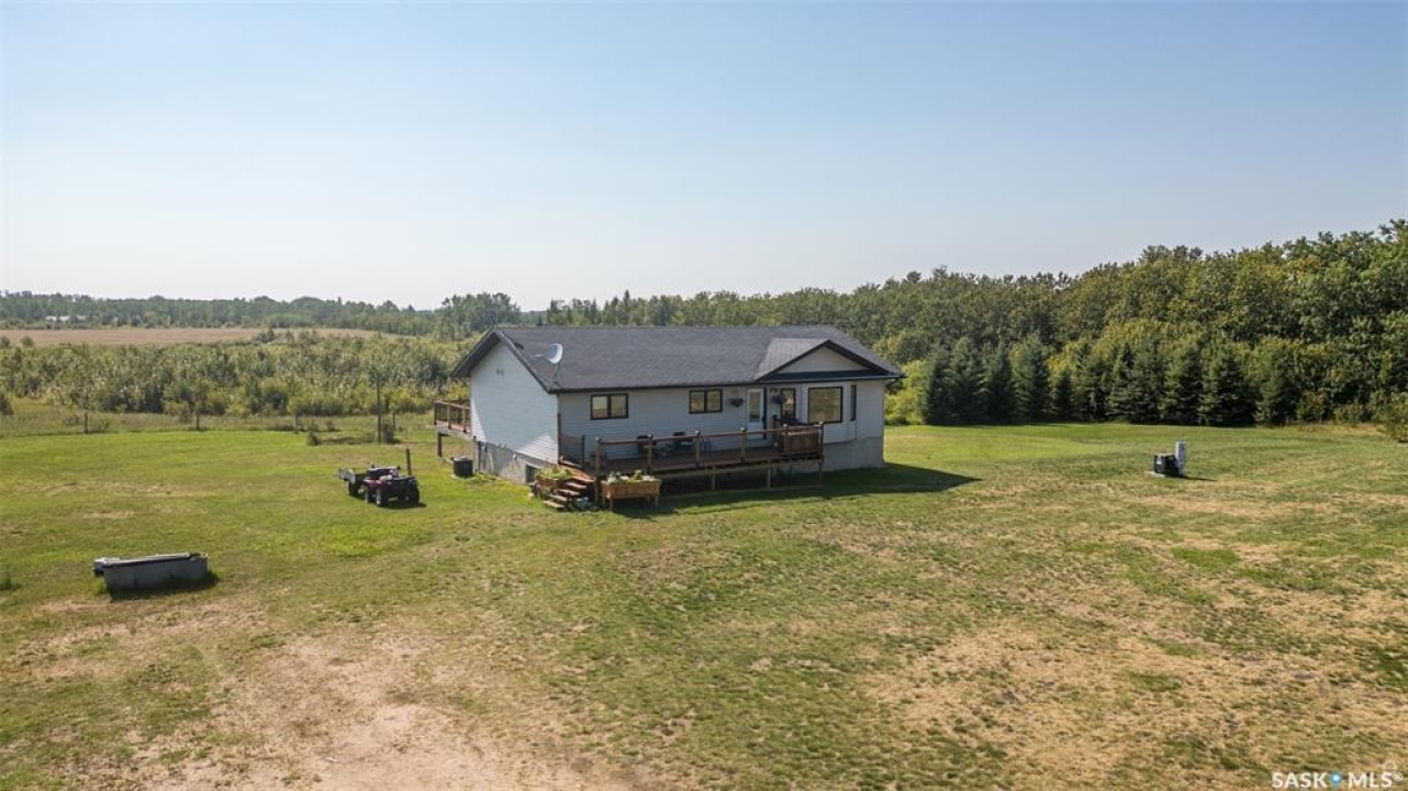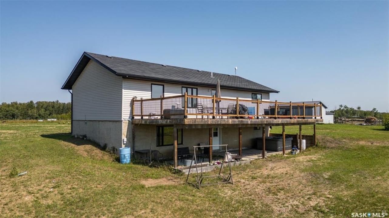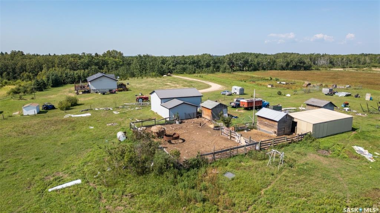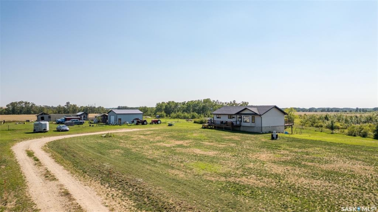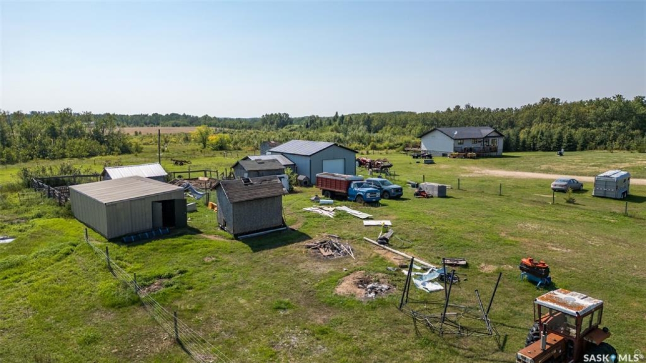 The perfect acreage does exist! Move in ready, the 4 bedroom, 3 bathroom residence is the perfect bridge way between the lake life and city living. The main level provides a huge front living room, massive custom kitchen with stone counter tops, soaring vaulted ceilings and a ton of natural lighting throughout. The lower level comes fully developed with an awesome recreational/family room, a den, loads of storage and a walk out access. The exterior of the property supplies 14.47 acres of land with a large insulated shop, many sheds, spacious front and rear decks.
