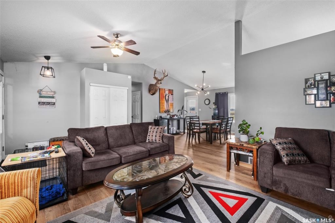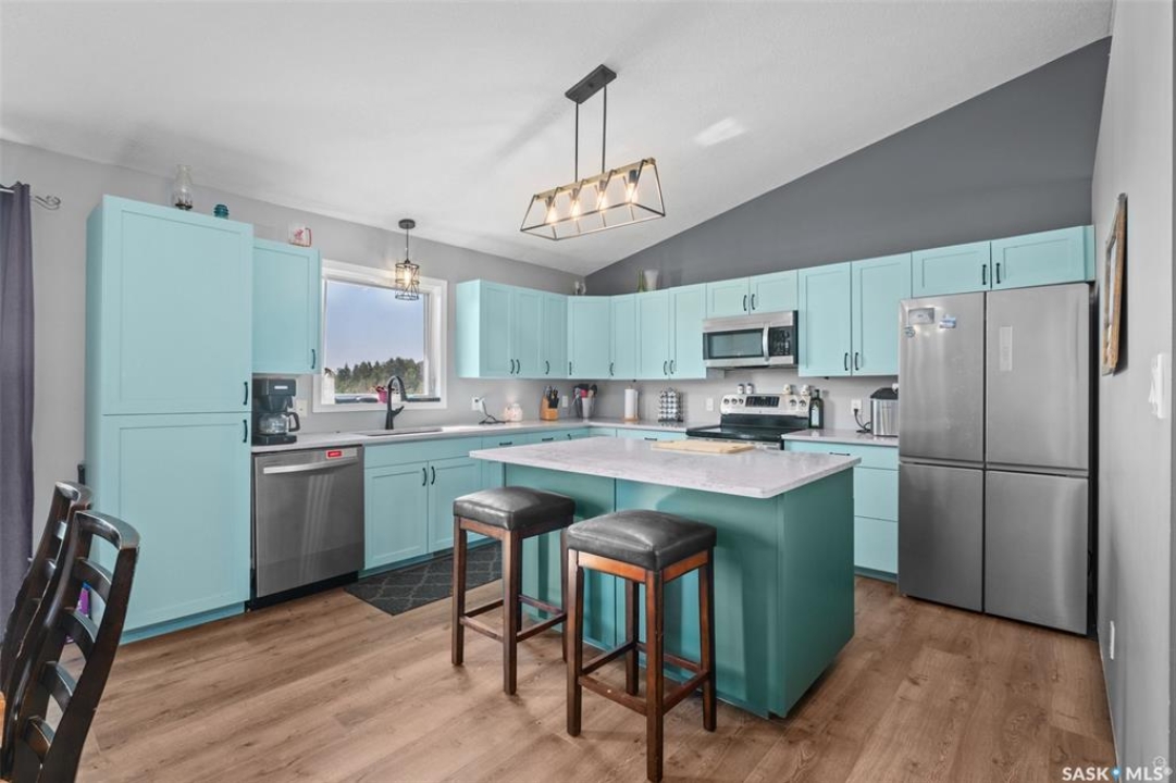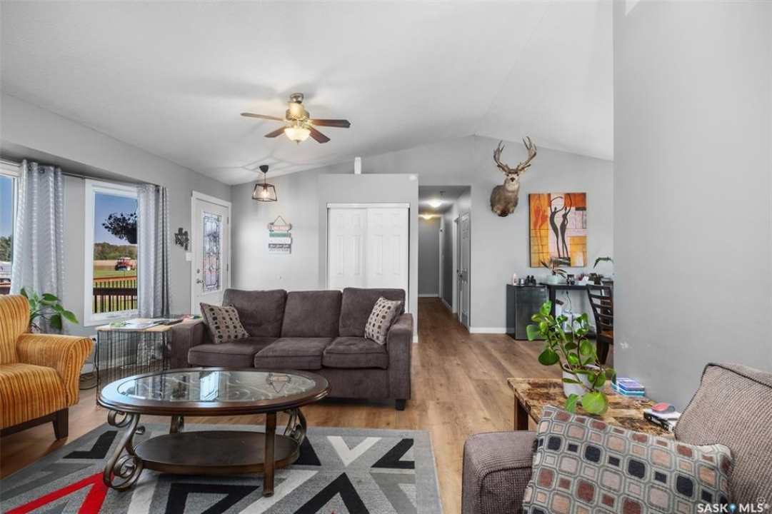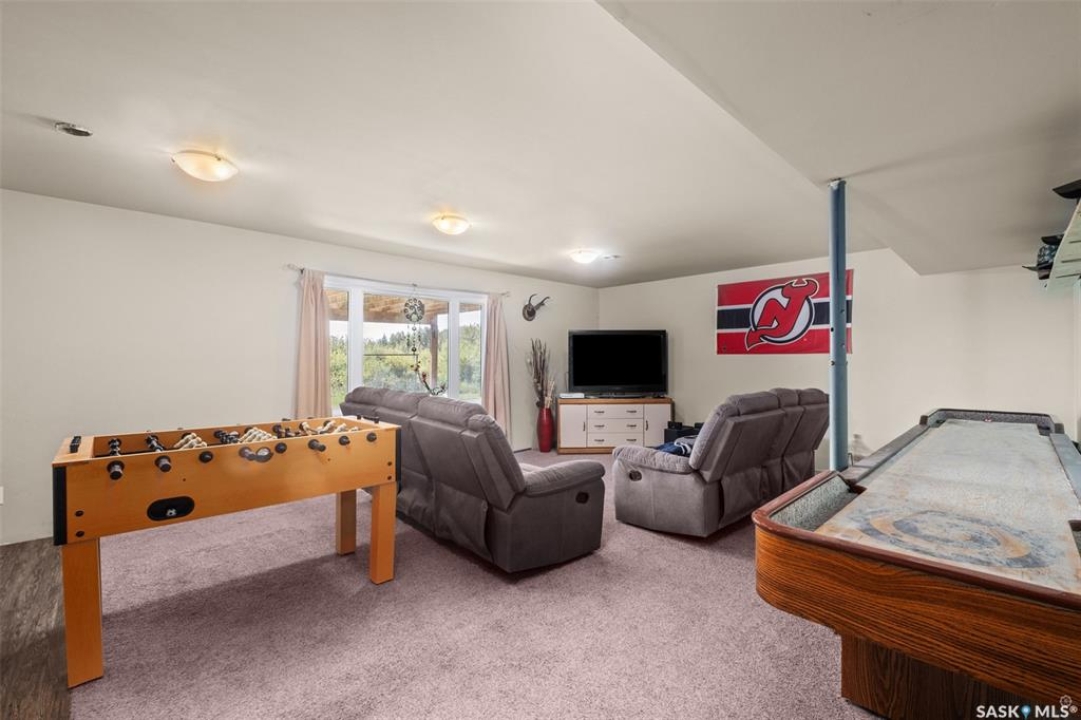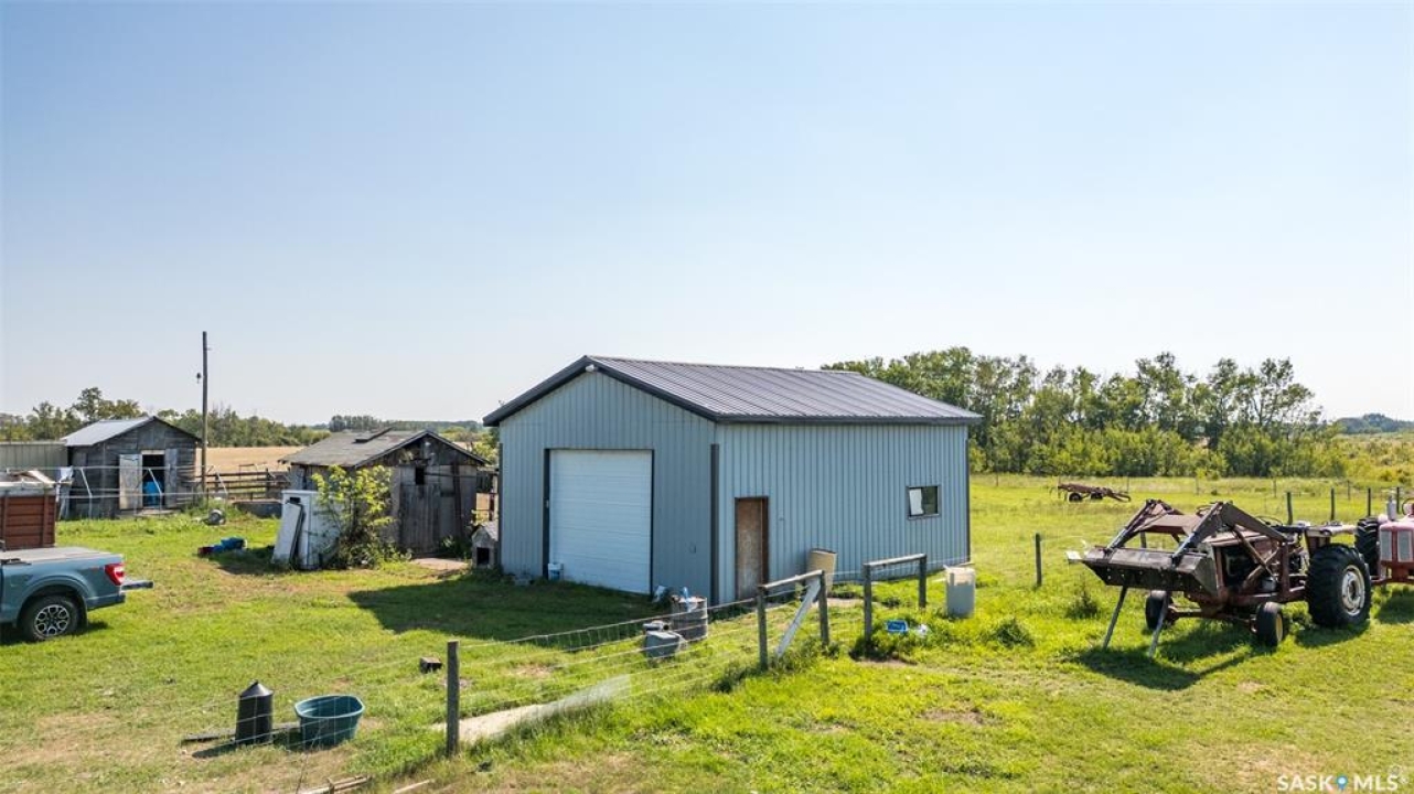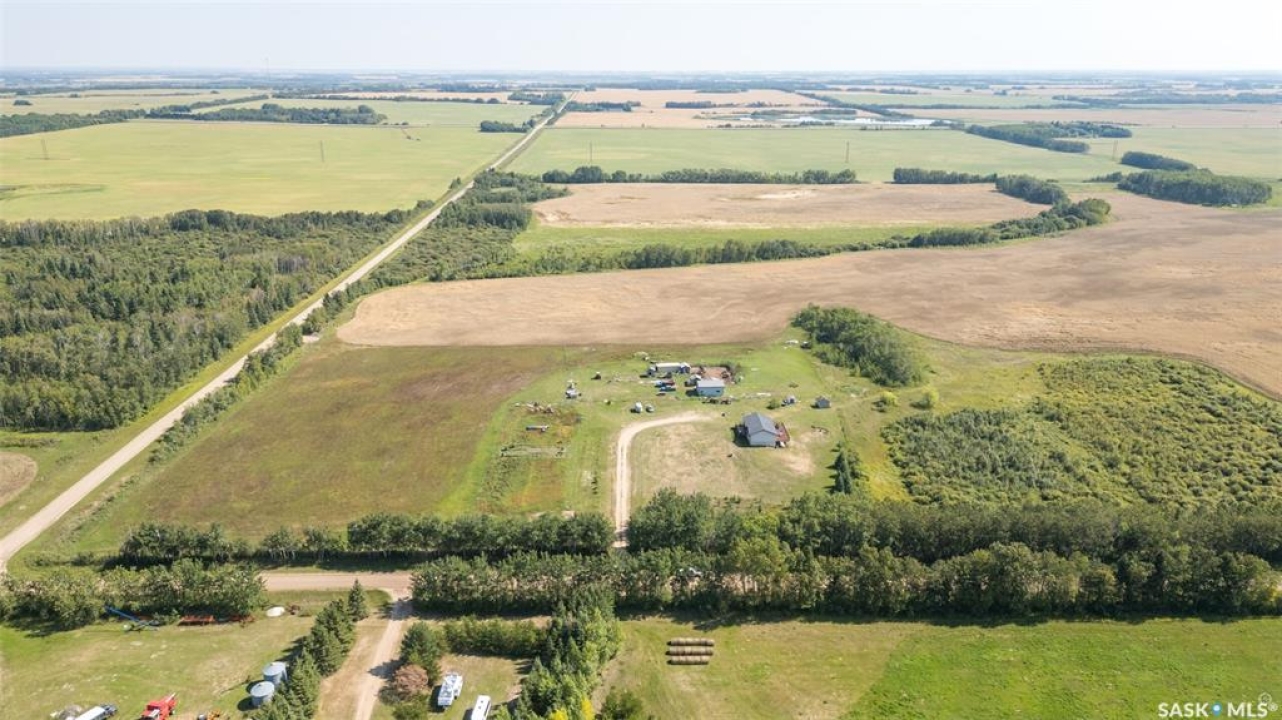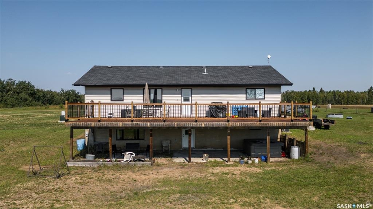 The perfect acreage does exist! Move in ready, the 4 bedroom, 3 bathroom residence is the perfect bridge way between the lake life and city living. The main level provides a huge front living room, massive custom kitchen with stone counter tops, soaring vaulted ceilings and a ton of natural lighting throughout. The lower level comes fully developed with an awesome recreational/family room, a den, loads of storage and a walk out access. The exterior of the property supplies 14.47 acres of land with a large insulated shop, many sheds, spacious front and rear decks.