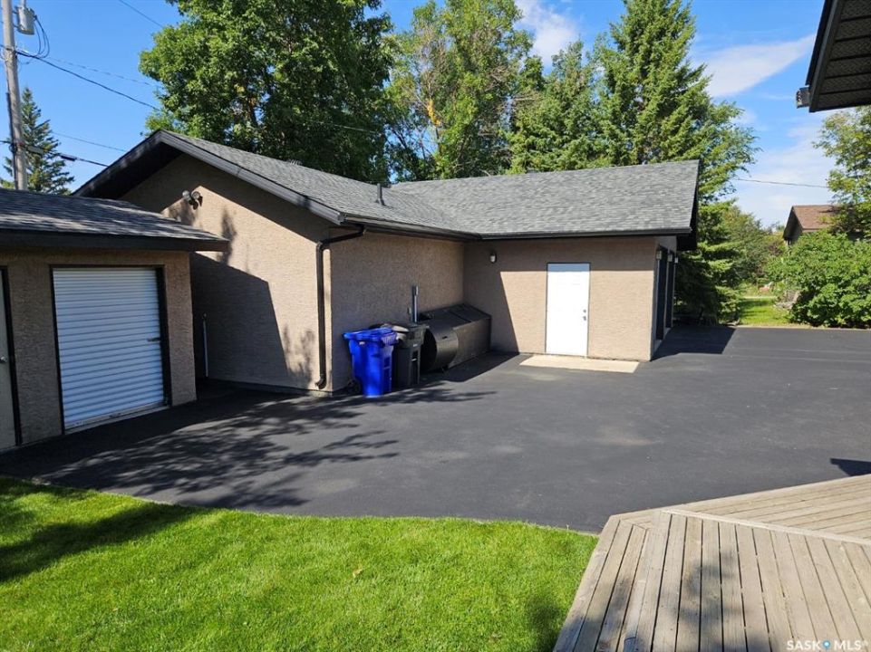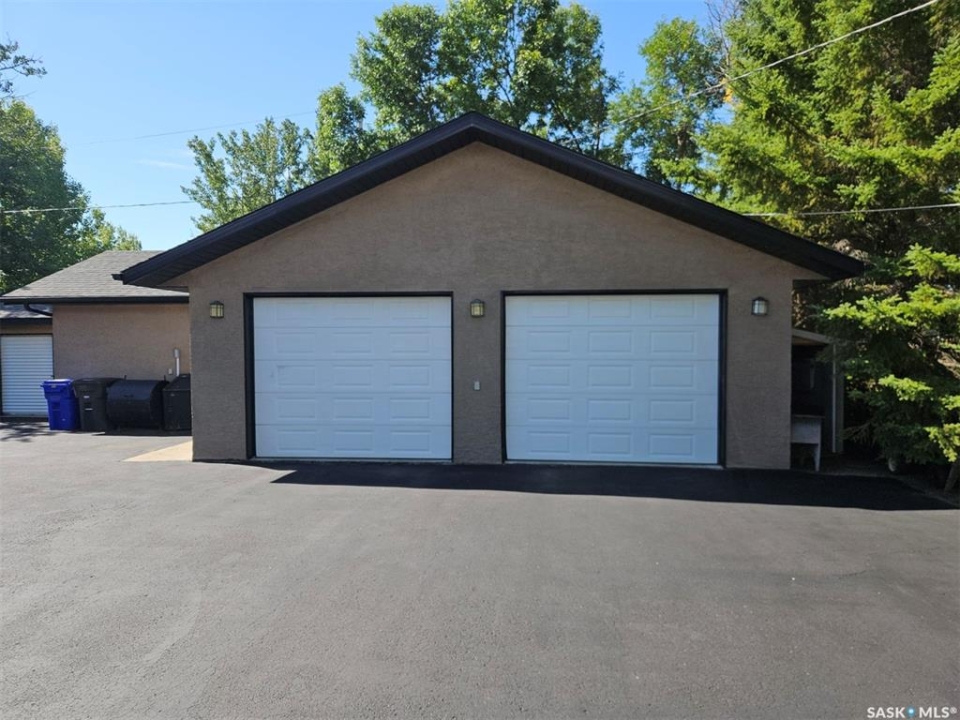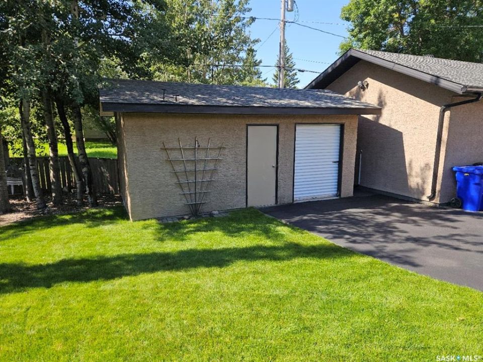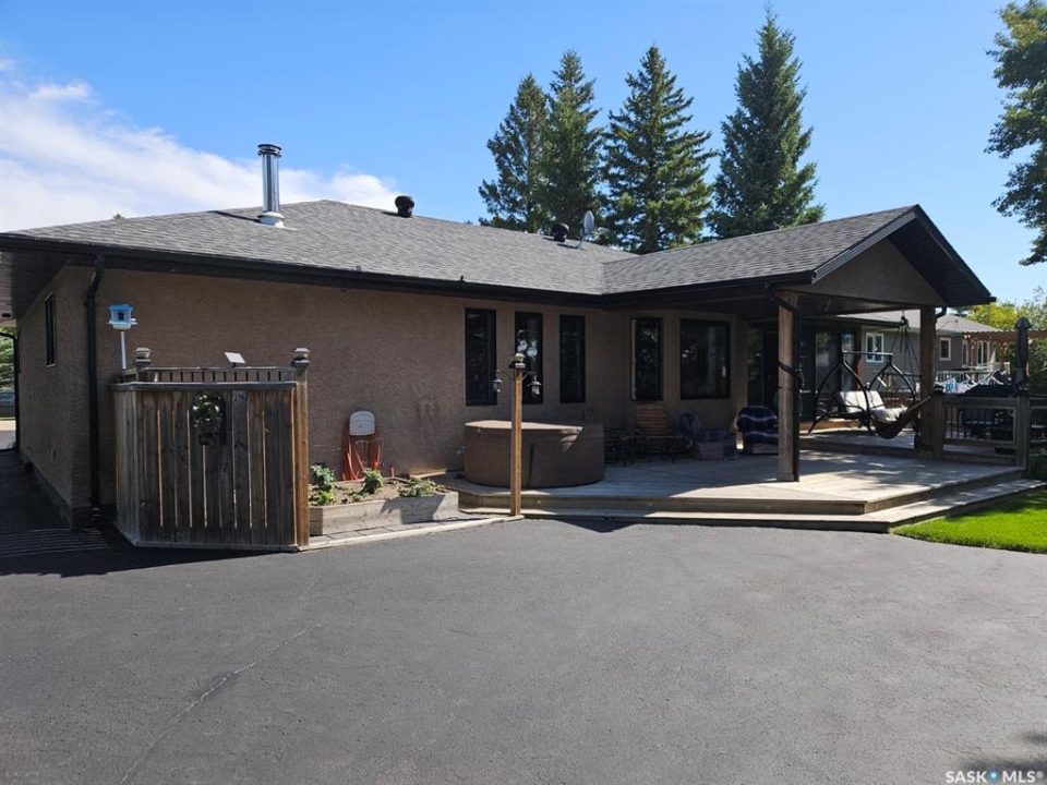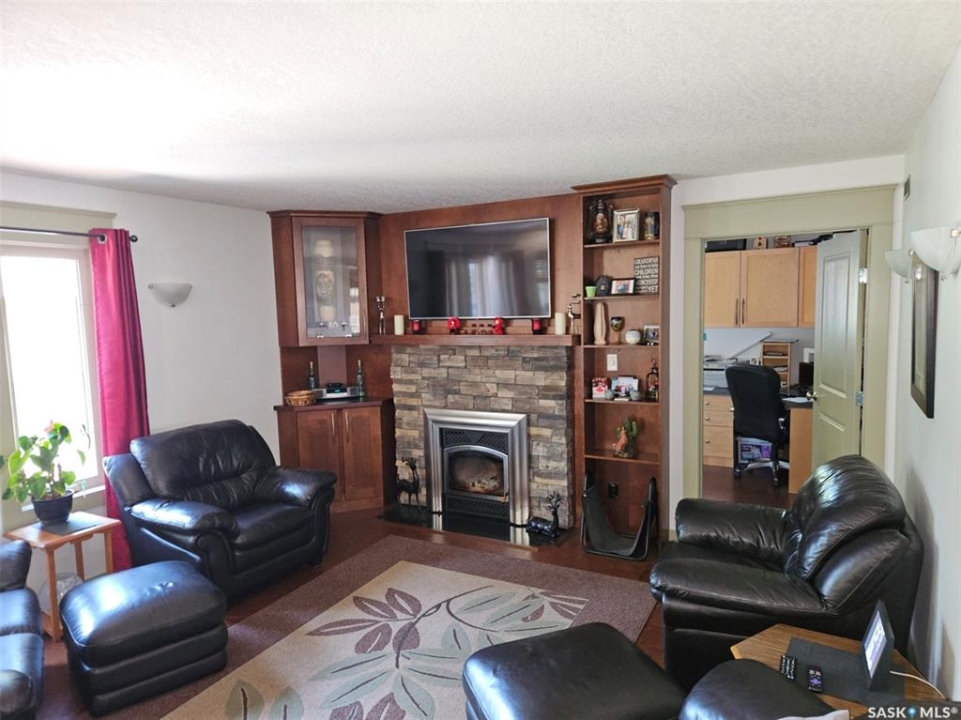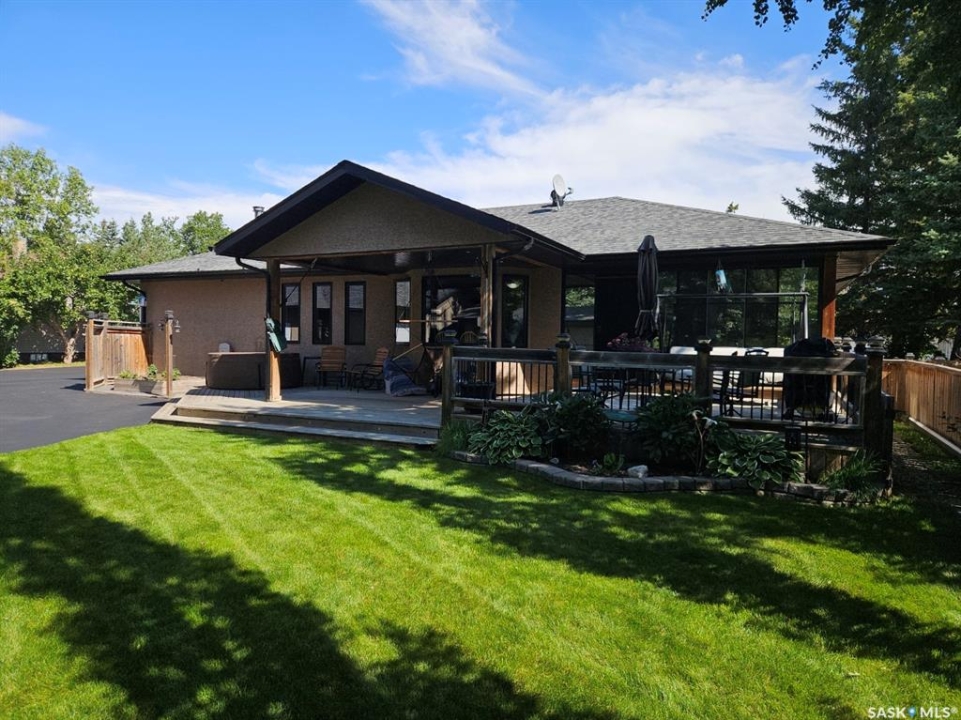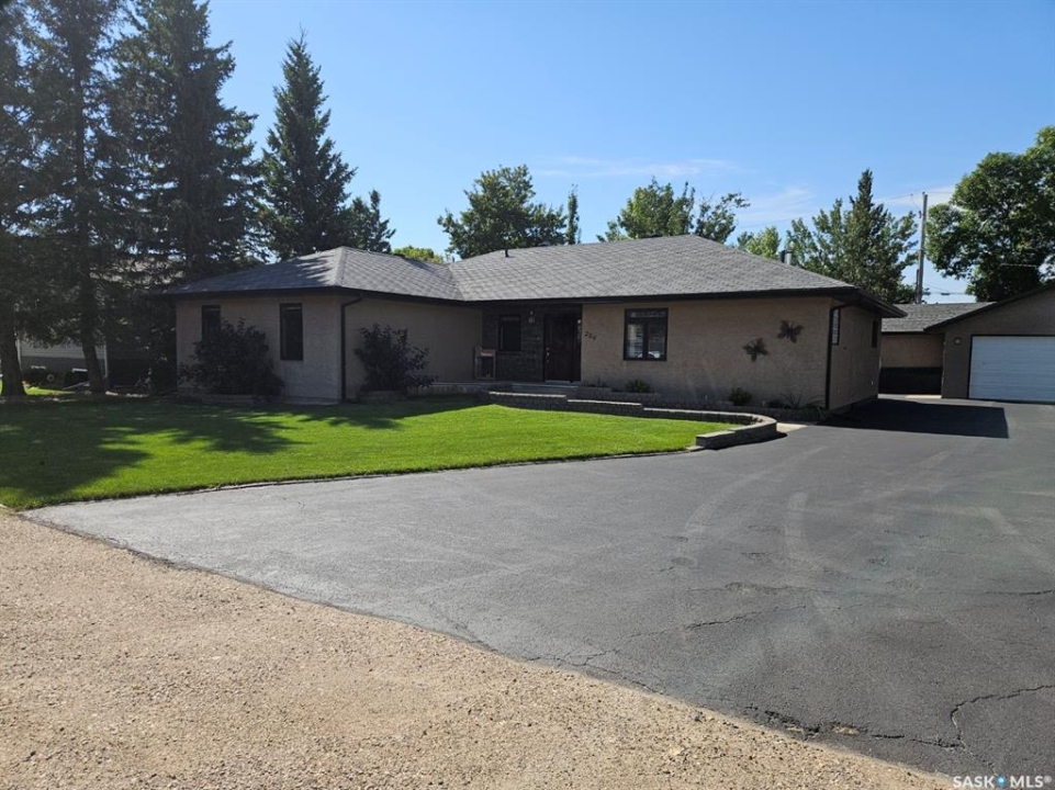 Located in Leroy, Saskatchewan this 2008 built pristine bungalow is built on a 4 foot insulated crawl with approximately 1996 square feet. Upon entry to the home you are greeted with a 3 season room with a wall of glass door that open to the back deck. The kitchen has an abundance of cabinets, a corner pantry, an island and a dining room that overlooks the back yard. The living room features a wood burning fireplace, and a large office with ample storage is located just off the living room. The primary bedroom has a walk in closet, as well as a large bathroom. There is a family room/games room, a 4 piece bathroom and a second bedroom with a large walk in closet. This home could have an additional bedroom just off the games room. This home shows pride of ownership and is extremely well cared for throughout. A large portion of the shingles on the house were replaced in July of 2025. Located on 2 lots, there is a large deck (partially covered), a fire pit area, 2 raised garden beds, RV sewer hook up beside the house, flower beds, a 12 x 20 storage shed as well as an extra large heated garage with a separate panel box, a 2 piece bathroom, ample room for a work shop or hobby area. The asphalt driveway has room for extra parking. Call your agent to arrange a showing today. All measurements to be verified by the Buyers.