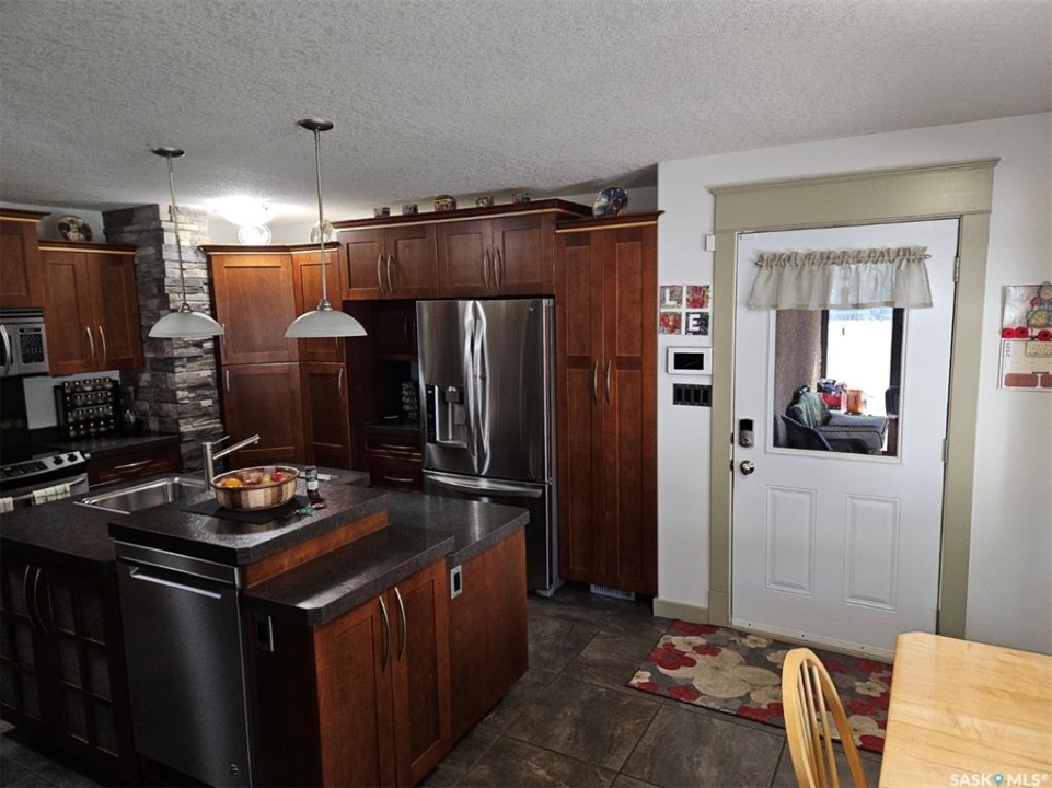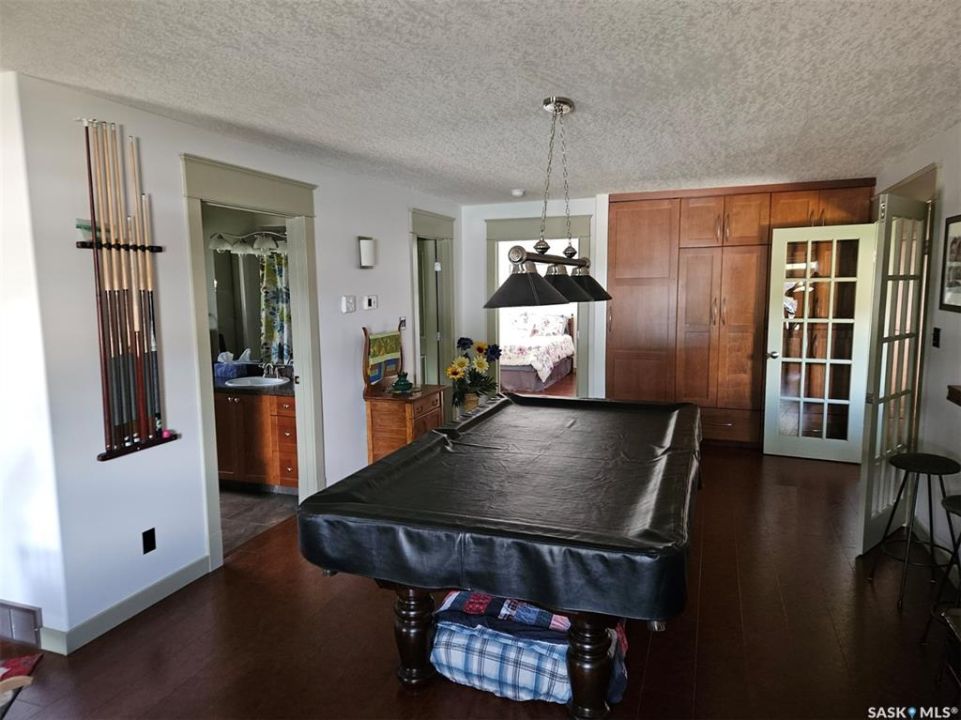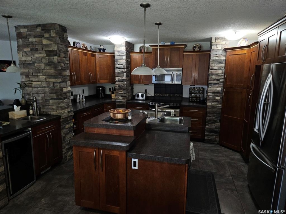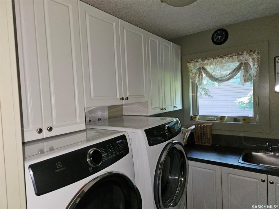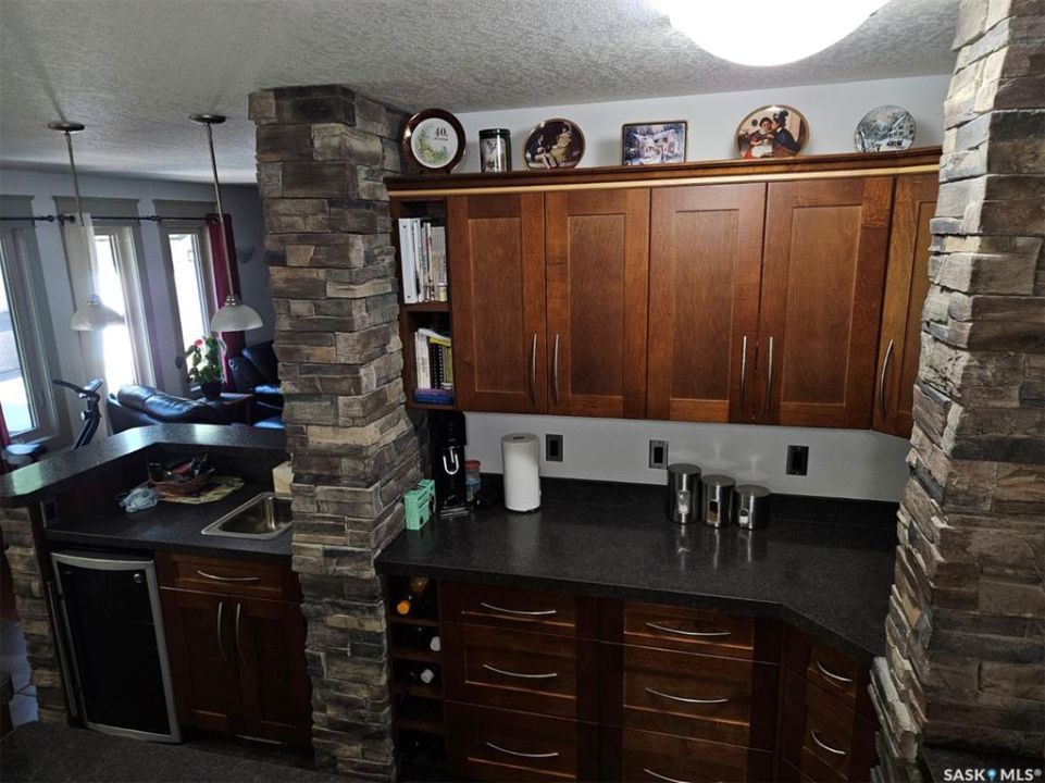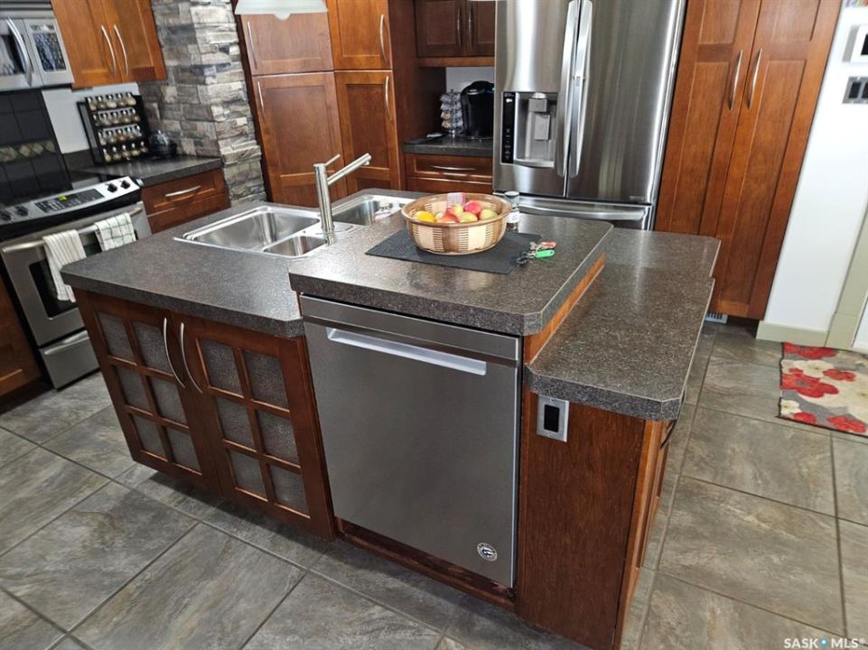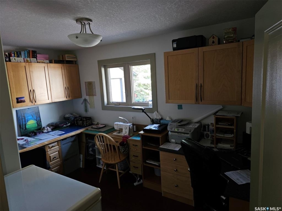 Located in Leroy, Saskatchewan this 2008 built pristine bungalow is built on a 4 foot insulated crawl with approximately 1996 square feet. Upon entry to the home you are greeted with a 3 season room with a wall of glass door that open to the back deck. The kitchen has an abundance of cabinets, a corner pantry, an island and a dining room that overlooks the back yard. The living room features a wood burning fireplace, and a large office with ample storage is located just off the living room. The primary bedroom has a walk in closet, as well as a large bathroom. There is a family room/games room, a 4 piece bathroom and a second bedroom with a large walk in closet. This home could have an additional bedroom just off the games room. This home shows pride of ownership and is extremely well cared for throughout. A large portion of the shingles on the house were replaced in July of 2025. Located on 2 lots, there is a large deck (partially covered), a fire pit area, 2 raised garden beds, RV sewer hook up beside the house, flower beds, a 12 x 20 storage shed as well as an extra large heated garage with a separate panel box, a 2 piece bathroom, ample room for a work shop or hobby area. The asphalt driveway has room for extra parking. Call your agent to arrange a showing today. All measurements to be verified by the Buyers.