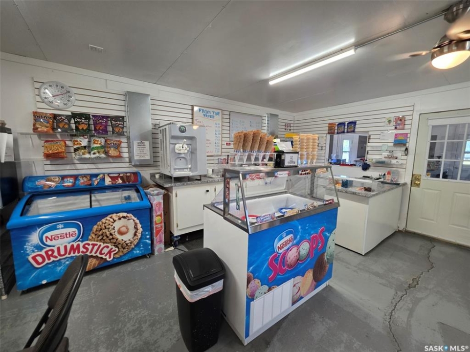 Welcome to the Resort Village of Beaver Flat and this turnkey business! Have you ever wanted to live at the lake and run your own business? this is the perfect match for you. Well established restaurant/convenience store is the only business like this at the resort. Offering deep-fried snacks, donuts and churros, soft serve ice cream, take and bake frozen pizza and a variety of treats as well as Grumpy Bob's branded clothing. The store front lends itself to a retail space for the daily necessities such as groceries, fishing bait and the things you forgot to pack! There is a separate seating area for rainy day crafts, watching the game or just hanging out with the family. This area can be rented out for events and offers a coffee station, tables, and a back deck equipped with a BBQ and grill. To top it off there is a Thor Wave 29' camper trailer being added to the lot for you to stay in and is included in the price, as well as a 8'X12' nightly rental bunkhouse with access to a Porta-Potti. Location is ideal backing onto the #1 tee box of the 9 hole sand green golf course, right beside the community hall and on the main road that runs along the resort. Beaver Flat has beach volleyball, pickleball, basketball, play ground, ball diamonds, a nice little beach and has 127 residences 8 of which are year round homes. Information sheet available, contact your realtor for more information.