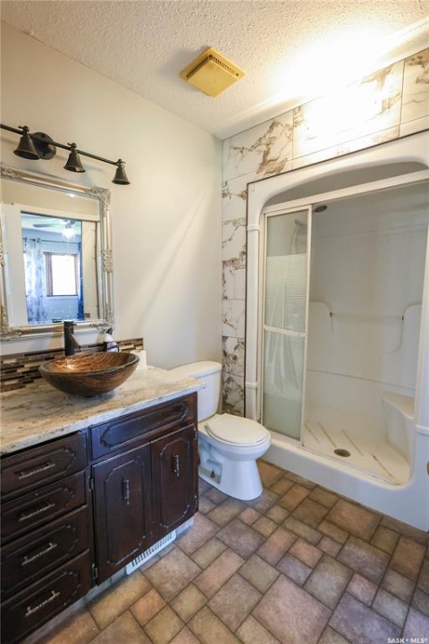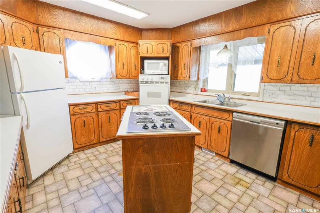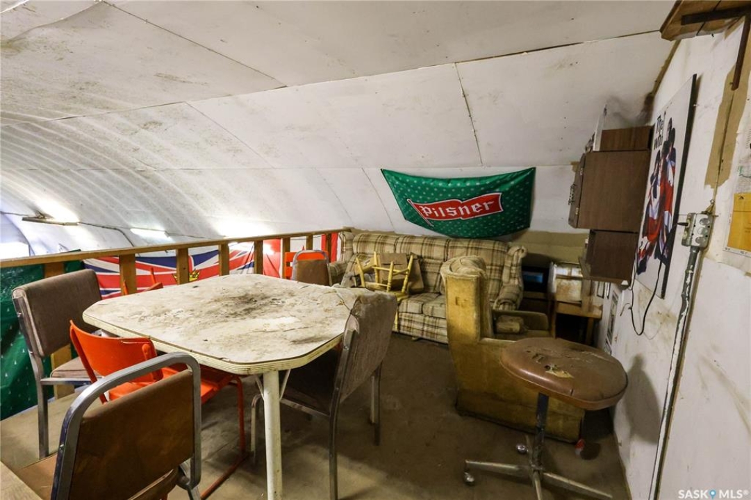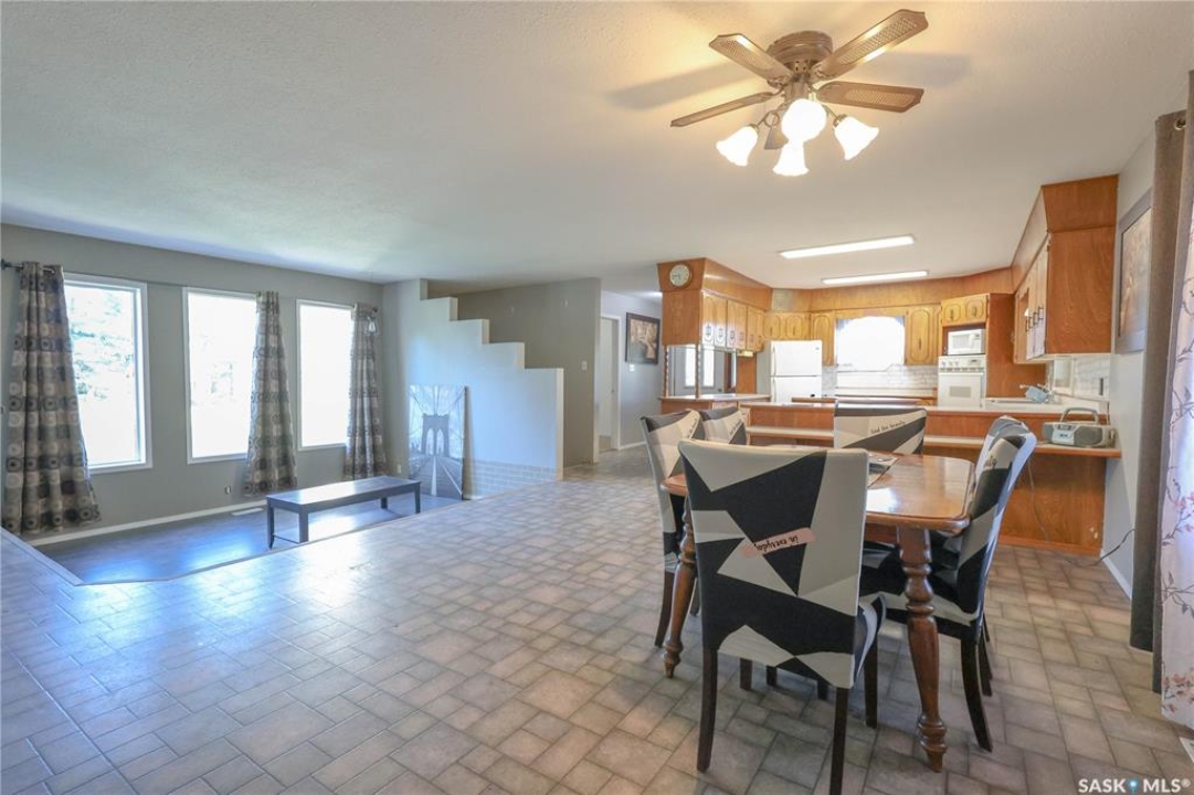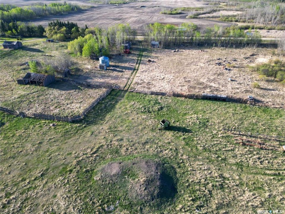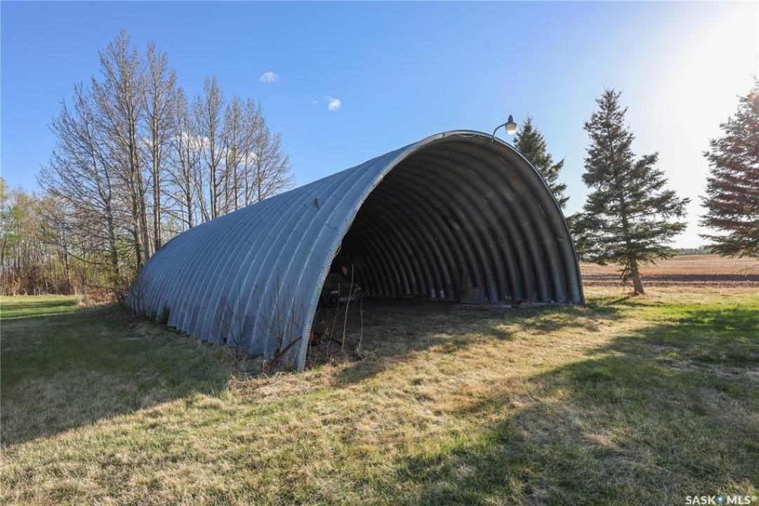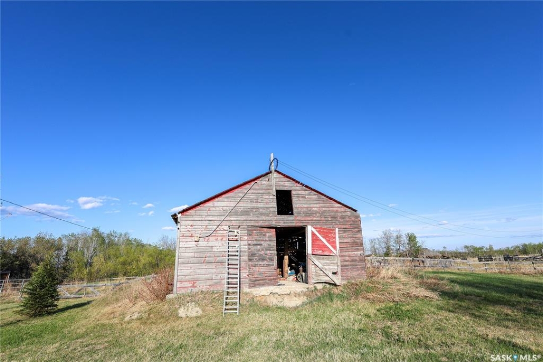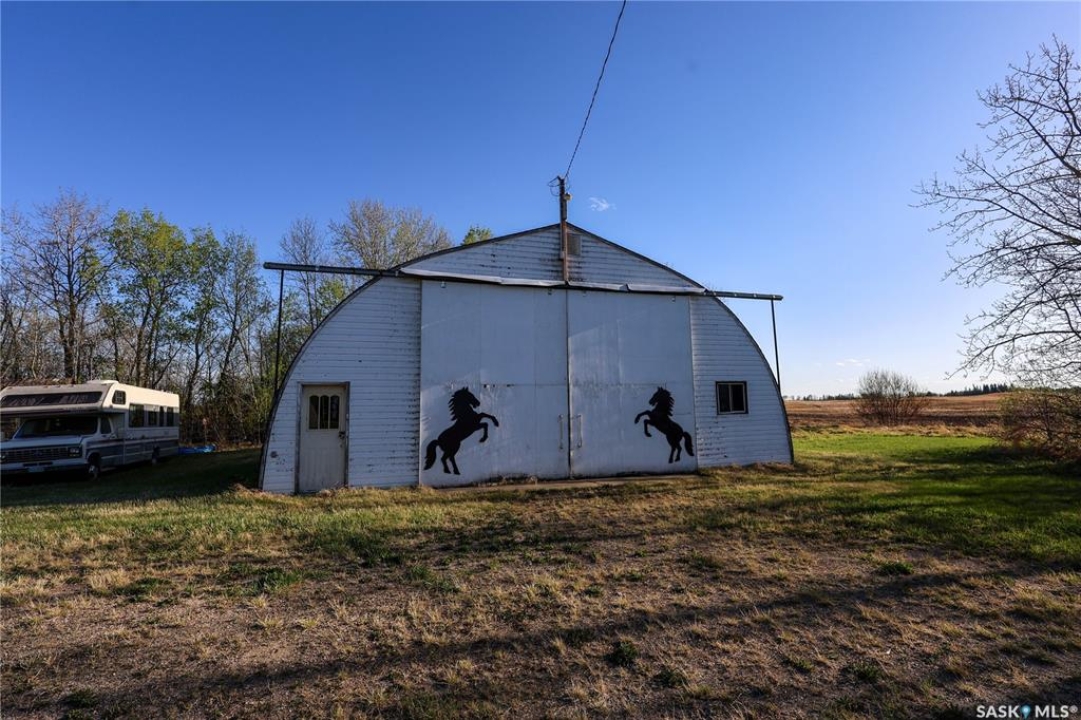 Beautiful 158.46 acre acreage tucked away in a private rural setting, offering a spacious home, multiple outbuildings and plenty of room to live, work and play. The main floor features an open concept design highlighted by a spacious kitchen with ample cabinetry, a peninsula with bar seating and an island with a built-in stove top ideal for family meals and entertaining. The cozy dining area has an electric fireplace that opens to a sunken living room filled with natural light from large windows. A well appointed 3 piece bathroom and a generous laundry room with a sink and abundant storage add to the home's functionality. The fully finished basement includes a large family room, two good sized bedrooms, a 4 piece bathroom, cold storage and a utility room. Outside, you will find a fully insulated single attached garage, a massive covered deck perfect for relaxing or entertaining and a charming fire pit area. The property also features a 60 x 40 ft metal quonset, a 38 x 55 ft shop with a mezzanine and a 36 x 28 ft shop, providing incredible potential for projects, business or storage. This property features 60 cultivated acres and an additional 45 acres of native grassland with potential for future cultivation. The farmable land has a J soil class rating and the assessed value of the land is $152,300, according to SAMA. Surrounded by mature trees and natural beauty, this acreage is a rare opportunity to enjoy a peaceful country living with endless possibilities. Call today to take the next step!