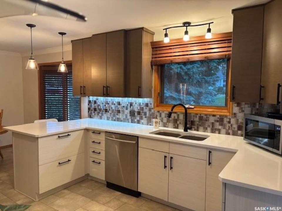 110 Logan Crescent East. - Attractive Executive style property with a walk out basement. - Well built home with a beautiful south facing deck with a view of Logan green park. -Tindal stone front -Solid Oak main floor interior doors -Oversized main bedroom, 700 sq feet -Ensuite has Italian tiled shower with body jets and rainhead faucet -Kitchen, recent update -Floor in garage /epoxy speckled, durable finish, insulated and heated, 24 by 32!!! -Second garage of same size below top garage -Gas fireplace insert in large living room -Maple ,solid thick flooring through out dining area and living room -In floor heat in basement and main bathroom -Triple pane windows -central air Vaulted ceilings