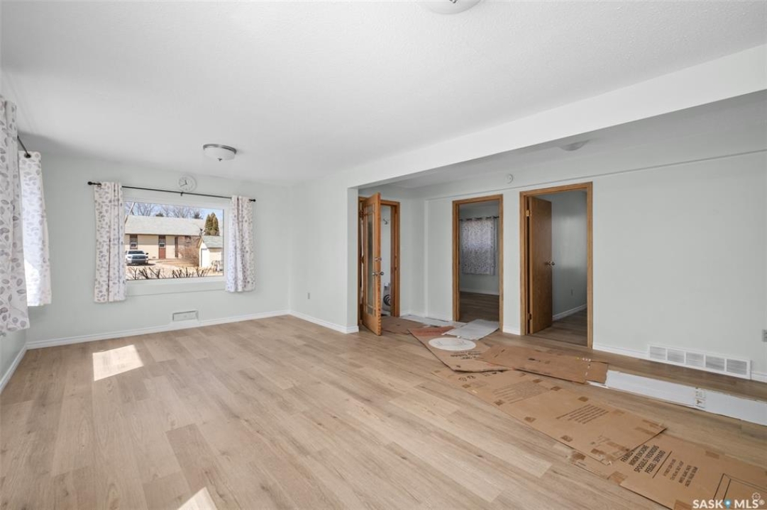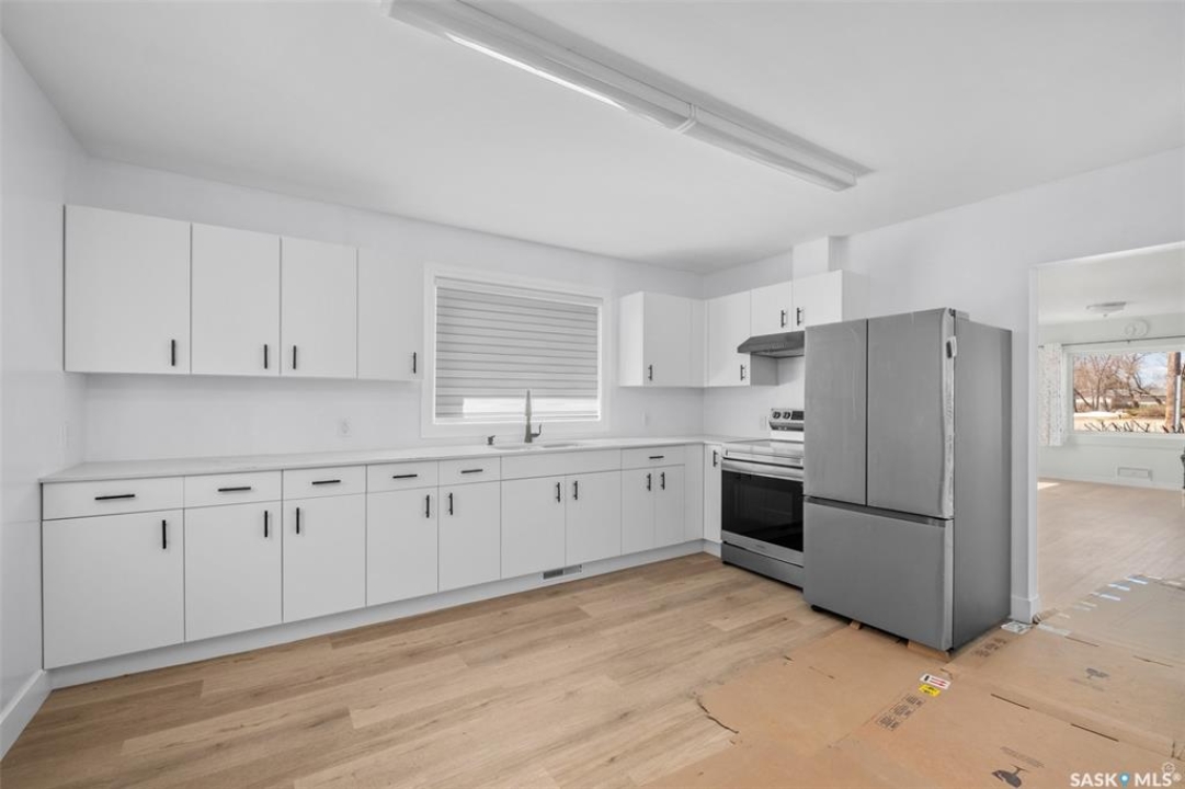 Charming 2 bedrooms and 1 bathroom bungalow located in the quiet community of St. Isidore de Bellevue! Inside, you are greeted by a spacious living room filled with natural light that creates a warm and inviting atmosphere. The bright eat-in kitchen features crisp white cabinetry, quartz countertops and new stainless steel appliances offering both style and everyday functionality. The main floor also includes 2 spacious bedrooms, a renovated 4 piece bathroom that has a beautiful stone backsplash and a convenient laundry room. The unfinished basement houses the homes utilities and provides plenty of additional space for storage or future development. Thoughtful upgrades throughout the home include new vinyl plank flooring on the main floor, new windows, updated plumbing and some upgraded electrical, including a new panel box. Additional notable features include a new hot water heater, central air conditioning and a high-efficiency furnace. The home is situated on a nicely landscaped lot with lush shrubbery and is located near the local school adding to its overall appeal and convenience. Move in ready and available for immediate possession, act now and schedule your viewing today! Property next door with the following MLS SK016815 is also available to purchase.