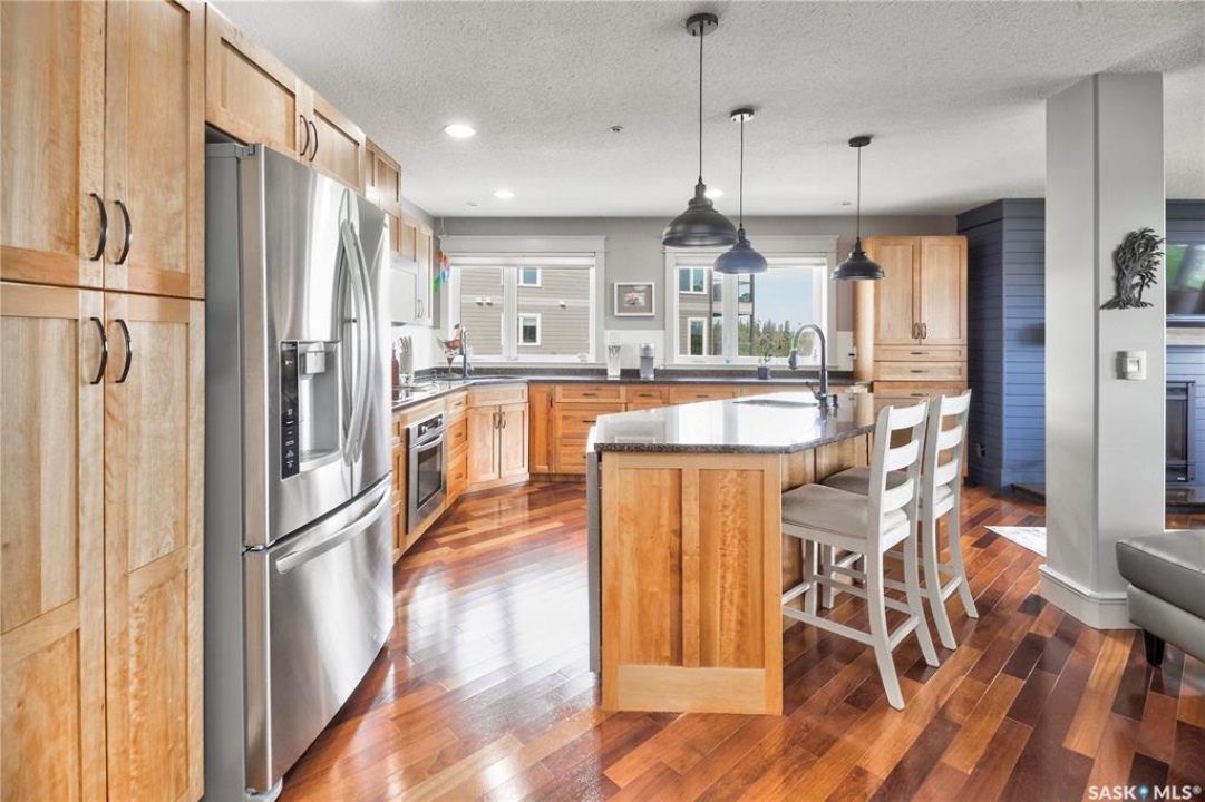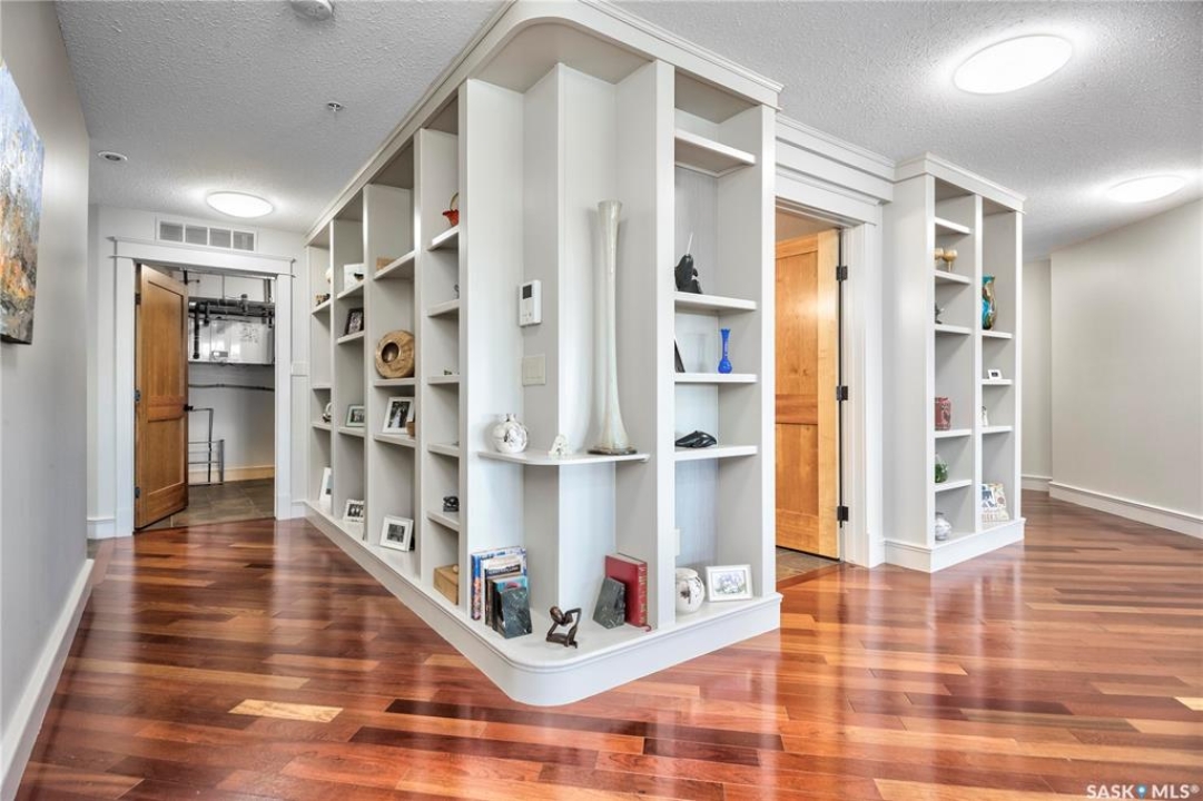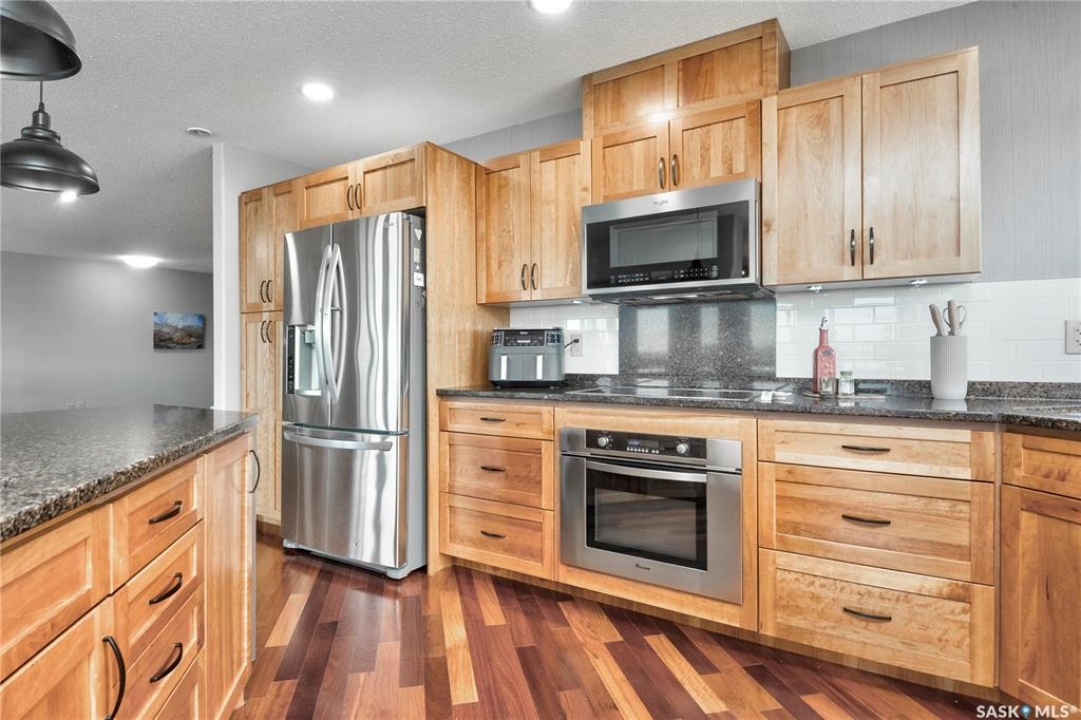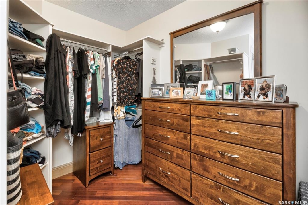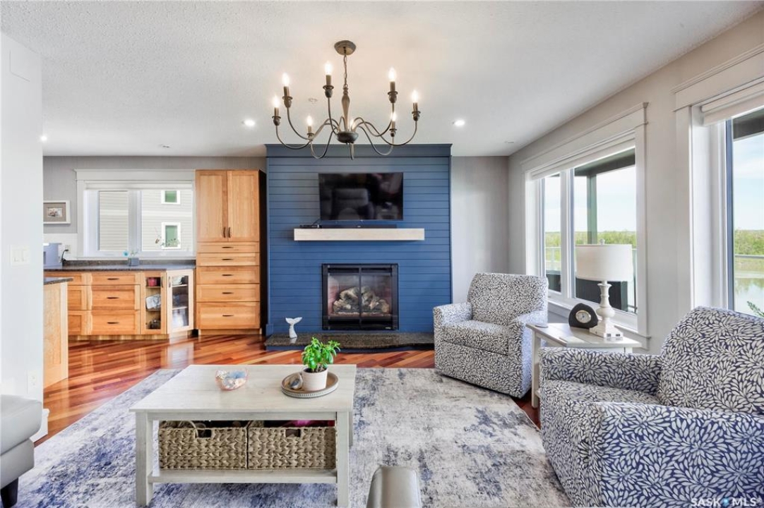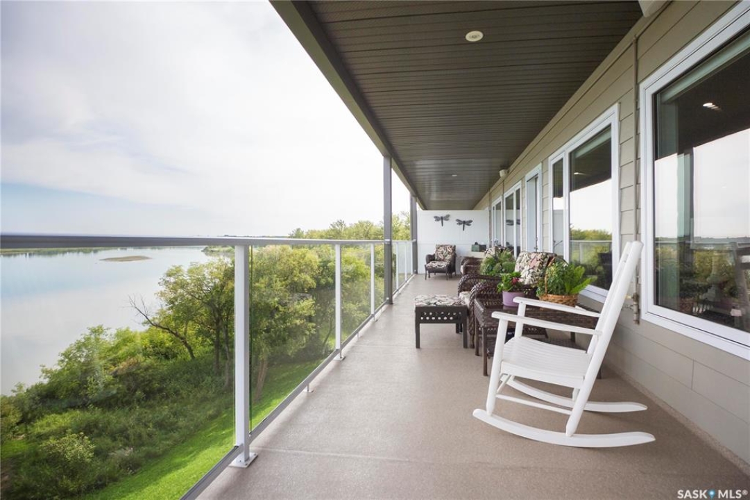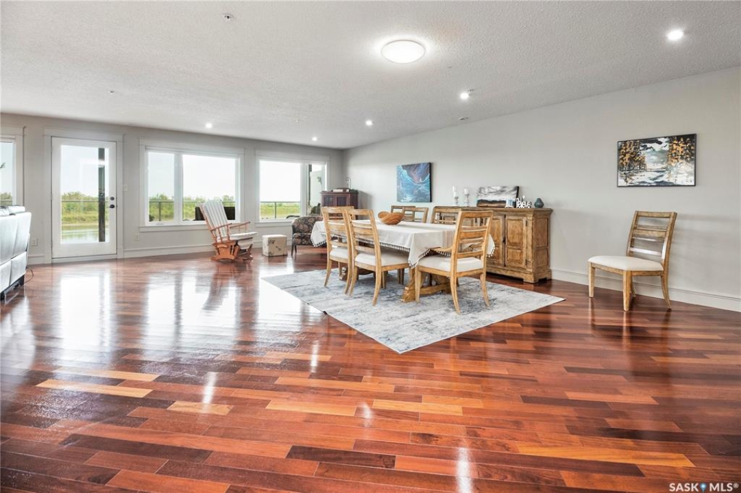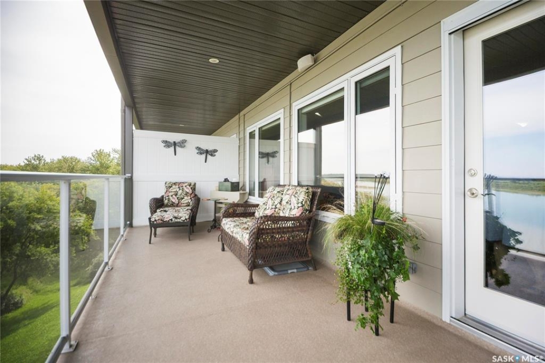 Experience elevated riverfront living in this exceptional third-floor corner condominium, offering 2,000 sq. ft. of luxurious space with some of the finest views in Prince Albert. Northeast facing, this home captures both sunrise and sunset, best enjoyed from the oversized wraparound balcony overlooking the North Saskatchewan River and Rotary Trail. The thoughtfully designed interior features a grand open-concept living and dining area, perfectly suited for entertaining or quiet evenings at home. A chef's kitchen anchors the space with granite countertops, custom cherry cabinetry and an abundance of workspace. Brazilian cherry hardwood flooring flows seamlessly throughout, complemented by tile in the bathrooms, foyer, and laundry room. The private primary suite offers a spa-inspired ensuite and an impressive walk-in closet. Upgraded LED lighting and included heat provide both efficiency and comfort year-round. This exclusive building also offers exceptional amenities, including one in-building heated parking stall and one exterior stall, a generous common area with kitchenette and pool table, plus an exercise room for active living. With direct access to the riverbank and Rotary Trail, this residence blends natural beauty with modern elegance—an extraordinary opportunity to own one of Prince Albert's most desirable riverfront condominiums. Recent upgrades from 2022-2023 include a new fridge, dishwasher, air conditioner, microwave fan, washer, dryer, and freezer.