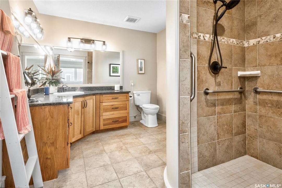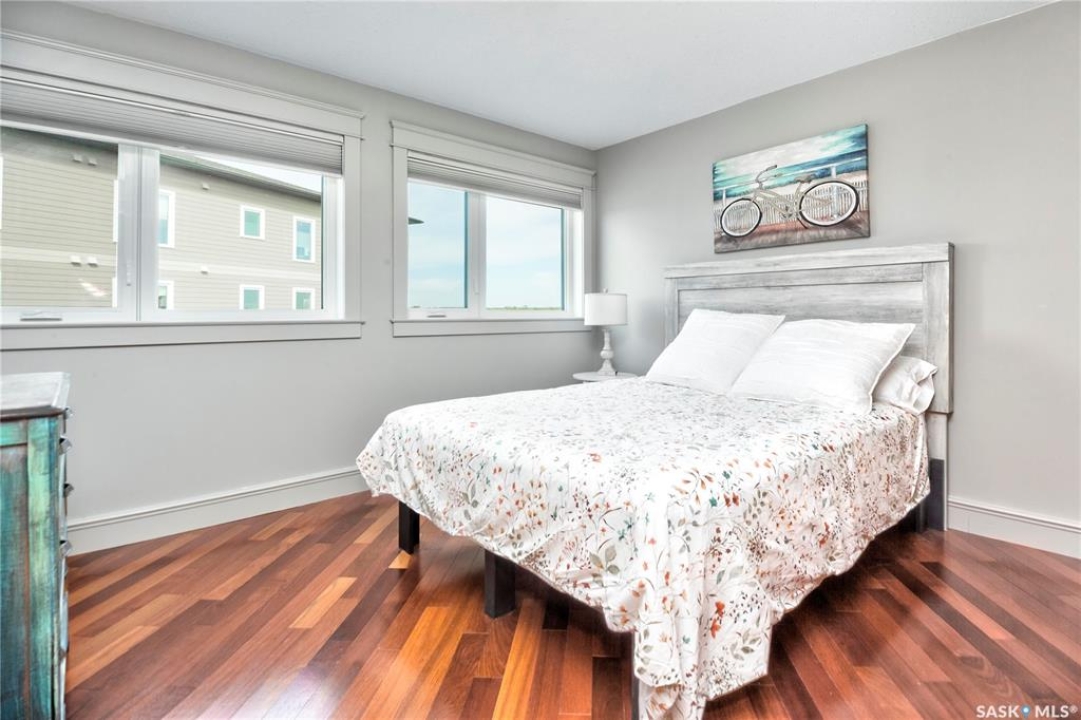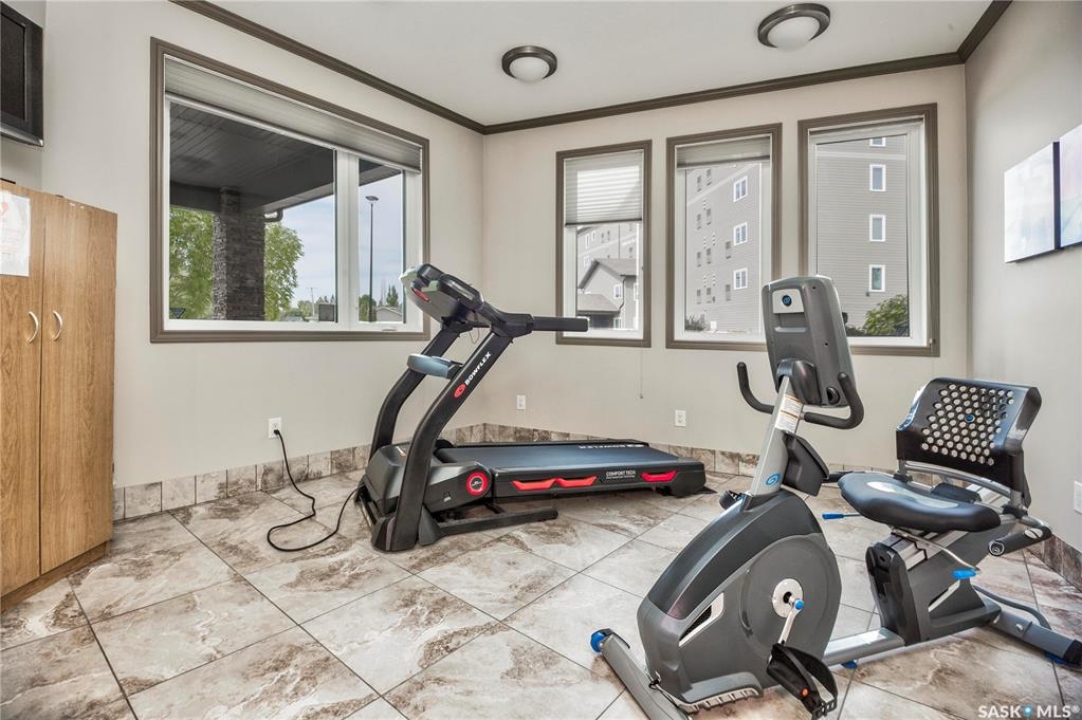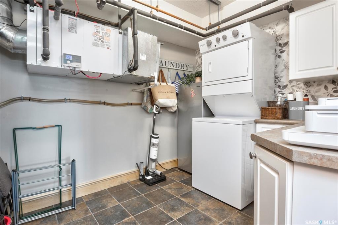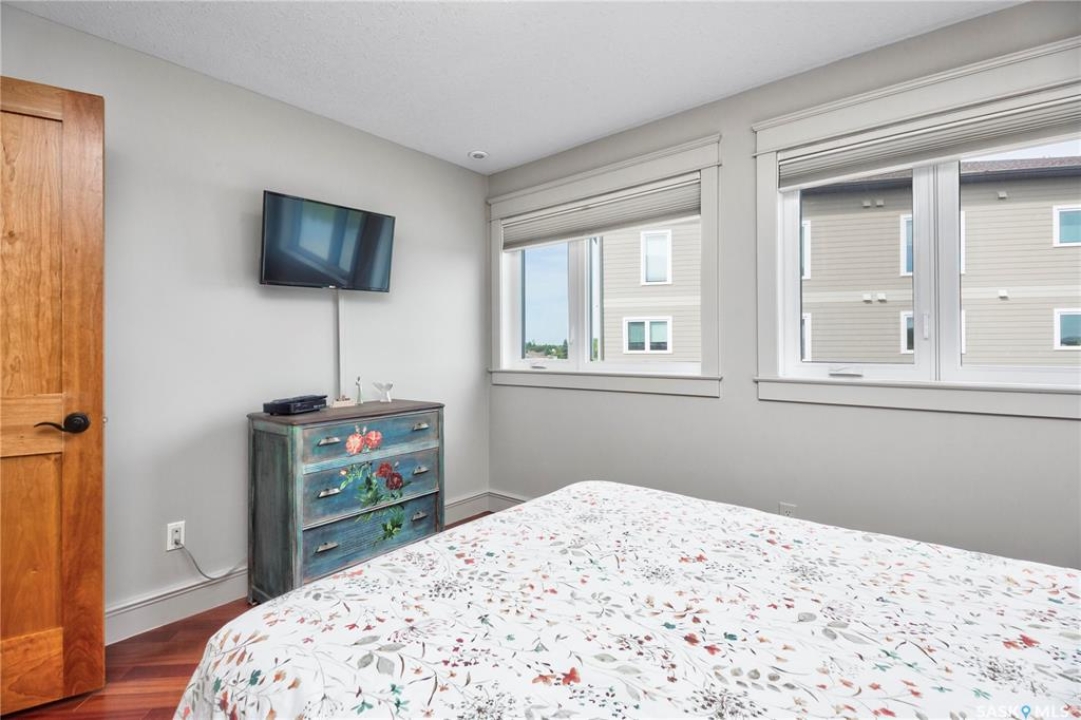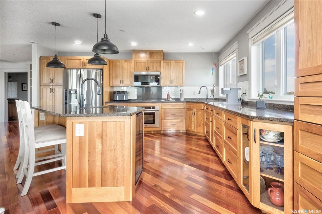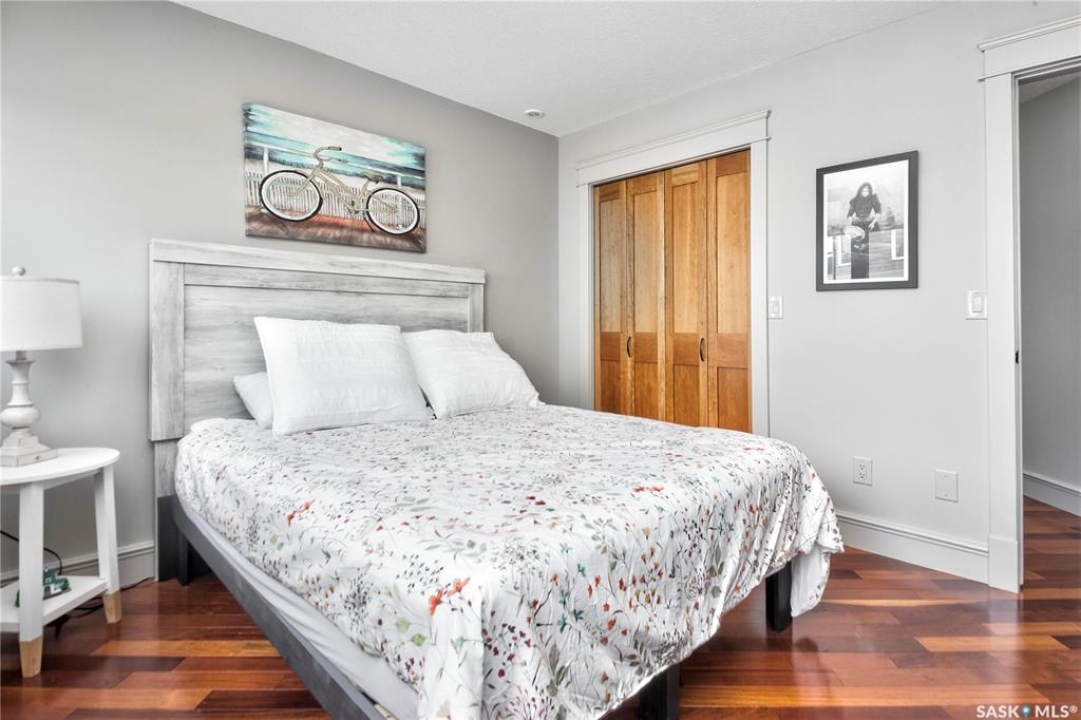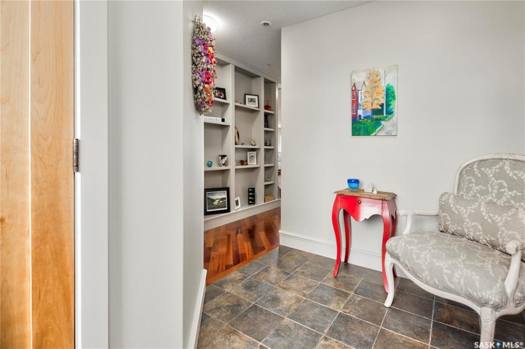 Experience elevated riverfront living in this exceptional third-floor corner condominium, offering 2,000 sq. ft. of luxurious space with some of the finest views in Prince Albert. Northeast facing, this home captures both sunrise and sunset, best enjoyed from the oversized wraparound balcony overlooking the North Saskatchewan River and Rotary Trail. The thoughtfully designed interior features a grand open-concept living and dining area, perfectly suited for entertaining or quiet evenings at home. A chef's kitchen anchors the space with granite countertops, custom cherry cabinetry and an abundance of workspace. Brazilian cherry hardwood flooring flows seamlessly throughout, complemented by tile in the bathrooms, foyer, and laundry room. The private primary suite offers a spa-inspired ensuite and an impressive walk-in closet. Upgraded LED lighting and included heat provide both efficiency and comfort year-round. This exclusive building also offers exceptional amenities, including one in-building heated parking stall and one exterior stall, a generous common area with kitchenette and pool table, plus an exercise room for active living. With direct access to the riverbank and Rotary Trail, this residence blends natural beauty with modern elegance—an extraordinary opportunity to own one of Prince Albert's most desirable riverfront condominiums. Recent upgrades from 2022-2023 include a new fridge, dishwasher, air conditioner, microwave fan, washer, dryer, and freezer.
