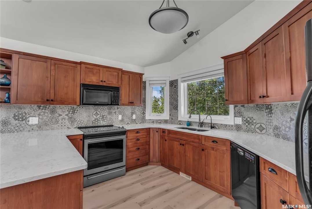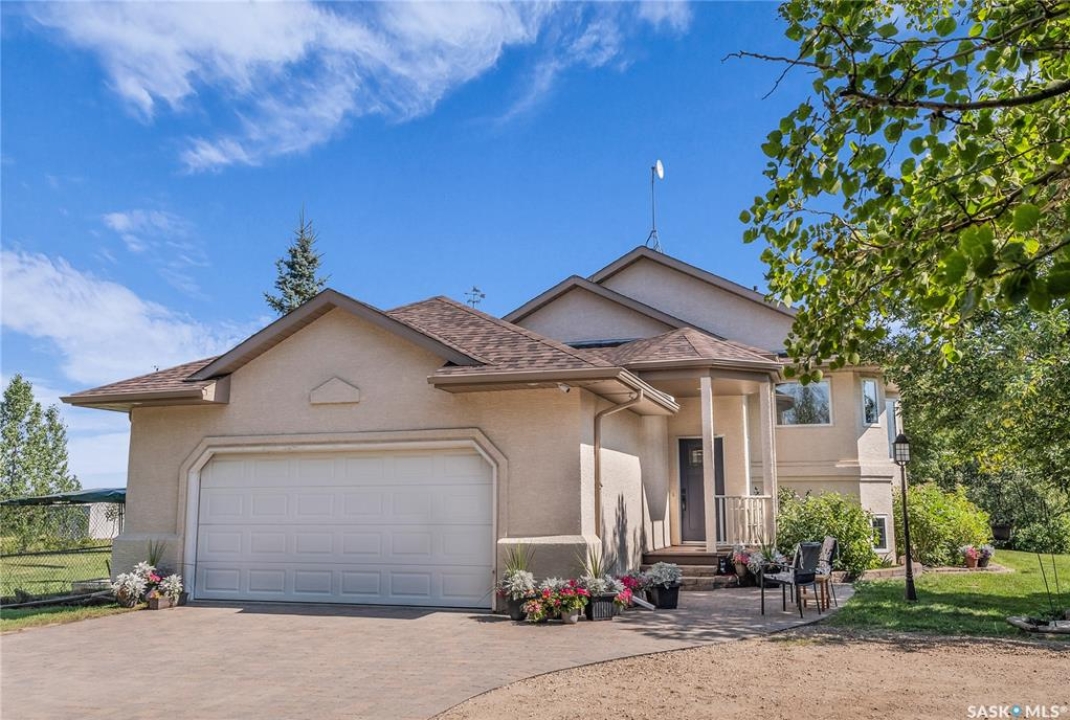 Schneider Acreage – Where Country Living Meets City Convenience Just minutes from the city off Highway 41, this beautifully private 14.26-acre property is tucked behind a mature tree line, offering peaceful seclusion and natural prairie beauty. At the heart of the property sits a custom-built, fully finished Ehrenburg home, thoughtfully designed for family living, entertaining, or a quiet retirement lifestyle. The home features 4 bedrooms, 3 bathrooms, a newly renovated kitchen and main upstairs bath, a spacious open-concept living area, and a fabulous front entry. You'll love the south-facing skylights, which flood the main living space with natural light throughout the day. Outside, the property includes a double attached garage, a dugout, and a beautiful shelterbelt of mature trees. With lush garden spaces, open skies, and peaceful surroundings, this acreage delivers the full country lifestyle experience, just a short drive from the city. Whether you're sipping your morning coffee under the trees or commuting easily into Saskatoon, Schneider Acreage truly offers the best of both worlds.