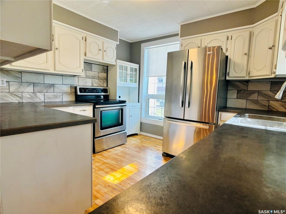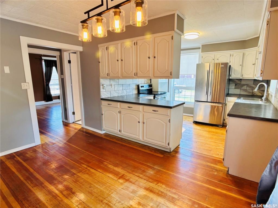 Nestled in the cozy community of North Portal, this over 1300 square foot home has everything you need! Entering the home in the spacious foyer, there's room for everyone and everything. Once inside the combined living and family room with gas fireplace you'll notice the high ceilings and large windows that flood the room with light. Continuing through the main floor is the dining room and kitchen both with multiple upgrades like appliances, lighting and paint. The main floor bathroom has also been fully renovated with a glass shower, tile work and cabinetry. Finishing up the main floor is a comfortably sized bedroom and convenient main floor laundry and back mud room. Heading upstairs you'll find a great office space, generously sized master bedroom retreat, another very large third bedroom and a second full bathroom. The property sits on 5 lots allowing you so much room to enjoy your attached double car garage, large back deck and whatever else you choose to add to your property. Call today to book your private tour of this amazing home!