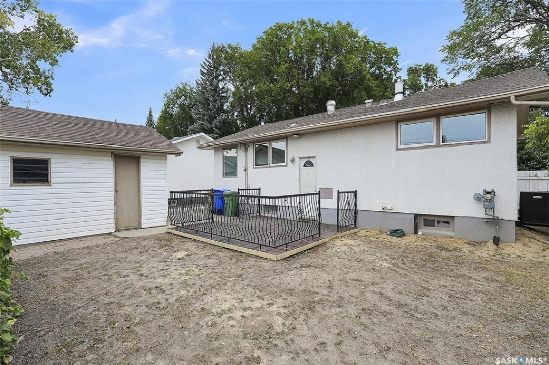 1040 sq ft bungalow located in a great neighborhood Whitmore park! Close to schools, U of R, shopping and bus.. 3bedrooms and 2bathrooms with separate basement entrance. A detached single garage has a large workshop. Newer shingles, newer furnace and air-conditioner, solid basement. This could be your first home or one of your revenue property. Never miss that great opportunity!
