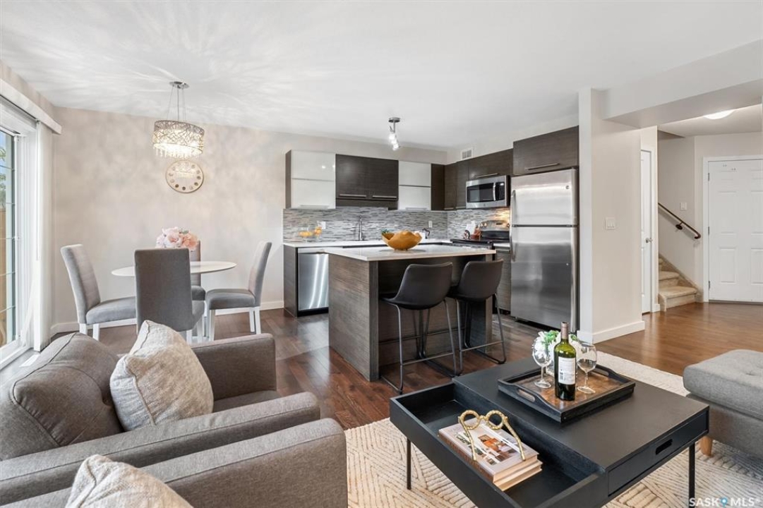 Step into comfort and style at 304-410 Ledingham Way, a thoughtfully designed townhouse nestled in the heart of Saskatoon's desirable Rosewood neighborhood. With 3 spacious bedrooms and 3 bathrooms, this home offers everything a growing family, downsizer, or first-time buyer could want. The main level is bright and welcoming, featuring an open concept layout and a well-appointed kitchen complete with island—perfect for gathering around with family or entertaining friends. A 2-piece powder room adds convenience on the main floor, while patio doors off the dining room provide easy access to the outdoors. Upstairs, you'll find three generously sized bedrooms and plenty of natural light. The fully finished basement adds even more living space, with a cozy rec room, additional bathroom, and dedicated laundry area. The single attached garage offers protection from the elements year-round. Located just minutes from Costco, top-rated schools, beautiful parks, and trendy local restaurants and cafes, this home delivers both lifestyle and location at an affordable price.