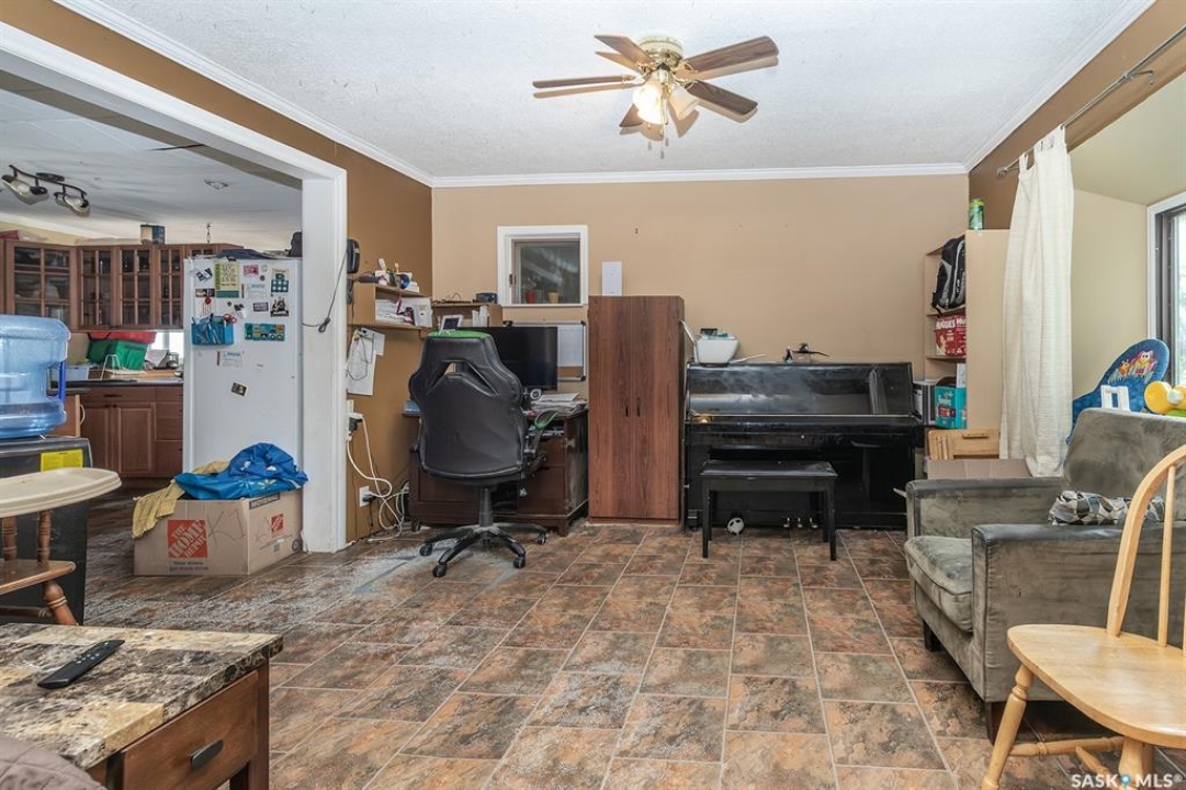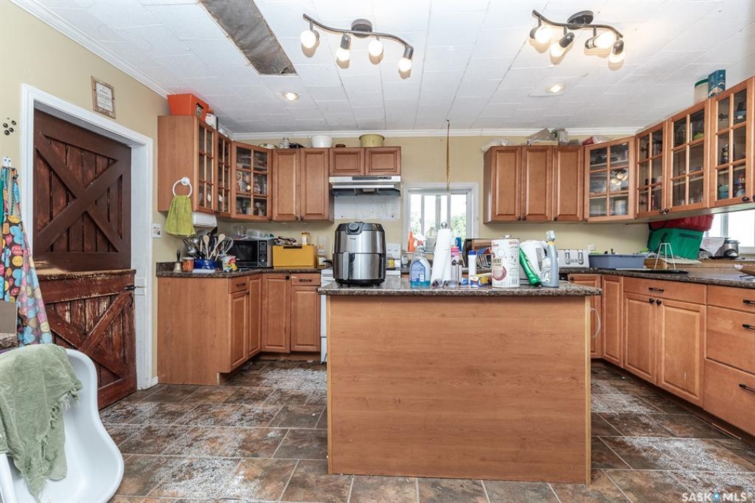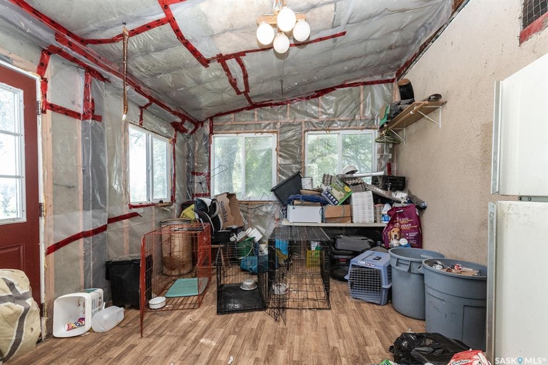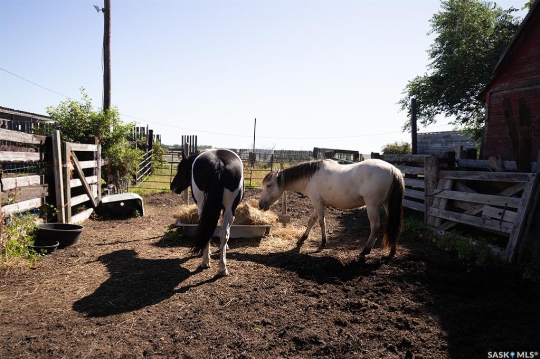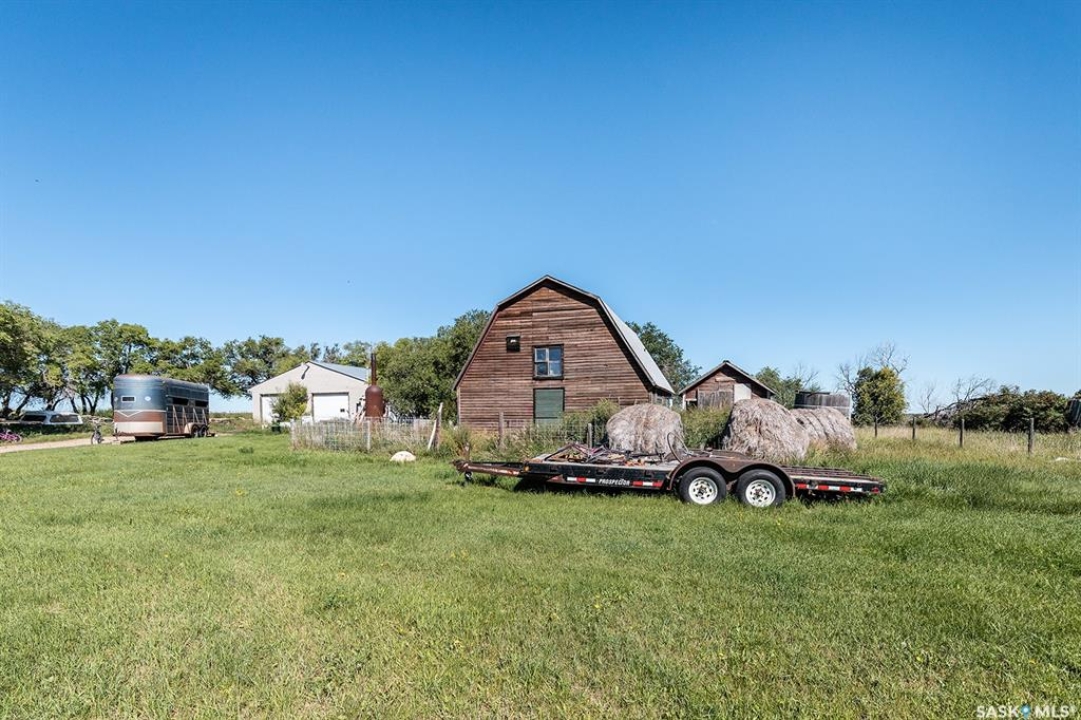 This could be your perfect oasis, just 28 Kms West of Saskatoon on pavement - 4 Kms East of Asquith at the corner of Hwy 14 and Range Road 3091. It is comprised of a 6-bedroom home with outbuildings on 77.5 acres of cross fenced property. Saskatoon is your nearest full-service centre, while the nearest limited service center is only 4 Km away at Asquith, offering school and Co-op Store. The main floor features a large kitchen / dining area, living / sitting room and a secluded master bedroom with its own private bathroom; plus, a half bath, with laundry sink in the mudroom ... great for cleaning up after chores. s ... the main floor “suite” has two large bedrooms, a limited kitchenette and a bathroom. The upstairs offers 3 finished and 1 unfinished bedroom, along with an office space and a bathroom. The fenced-in area behind the house has kennels once used for breeding dogs. The shelter belt behind the house provides a large private yard. Included is the old dairy barn (with 2500-gal water tank) now used for hay storage, an old insulated calf barn, and an approx 100-year-old horse barn with stalls. The upstairs in the old barn could potentially be a secluded play room or host a Barn Dance – check structural integrity first! Bring your hobbies to the two-bay 40 x 40 shop. One side is heated and with storage mezzanine, the other not heated, good for storing farm equipment (or Sleds and Atv's). With some fencing and coral maintenance you could house any myriad of animals, as has been in the past - pigs, goats, sheep, cattle and horses. This year's crop is seeded to Timothy brome and orchard grasses, great for horses all year round, and hay sales have always produced happy customers. Fowl can be raised here too in the several pens and enclosures. All in all, this is 77.5 acres of potential wrapped in a peaceful retreat away from city life. (Looking for Land only nearby to Asquith / check out SK012247).