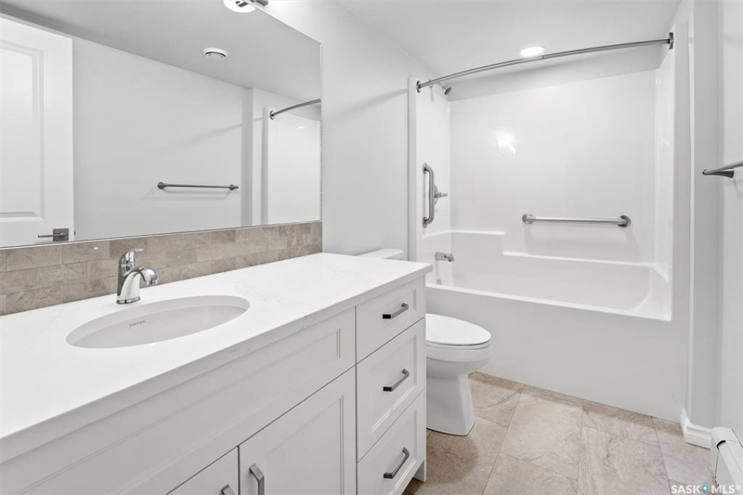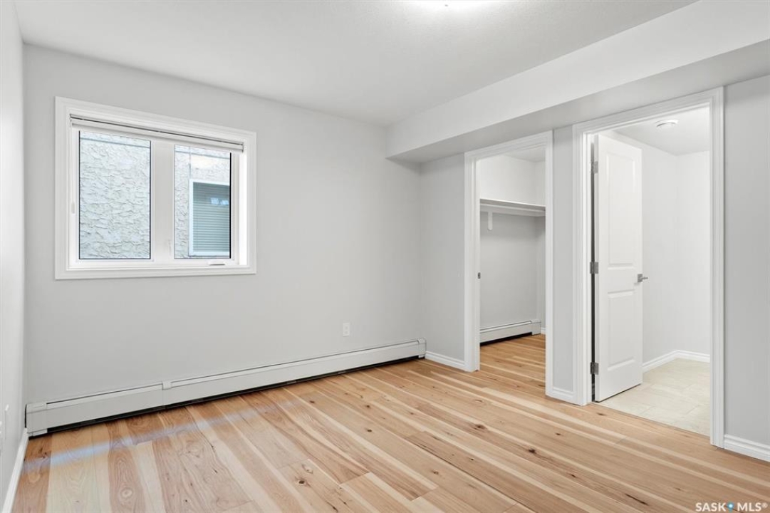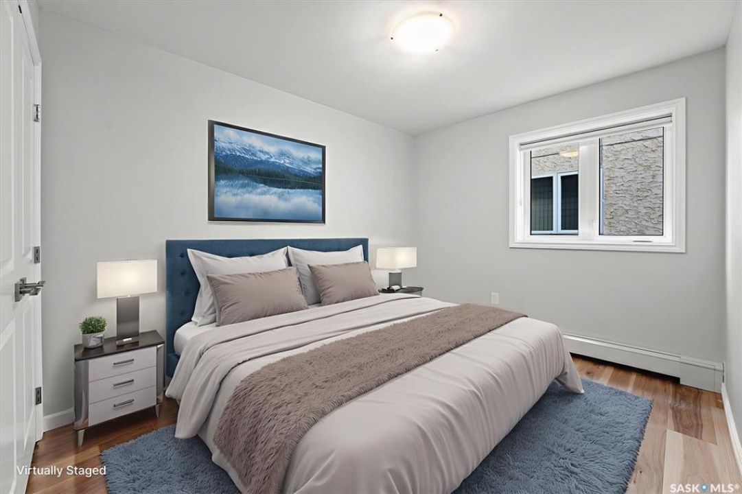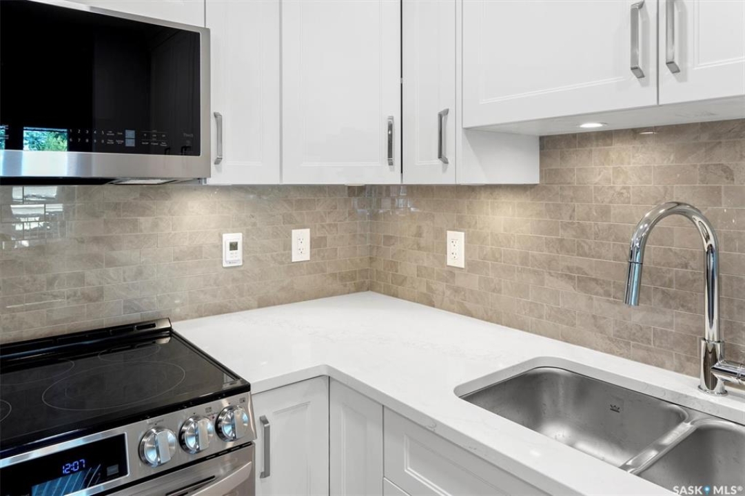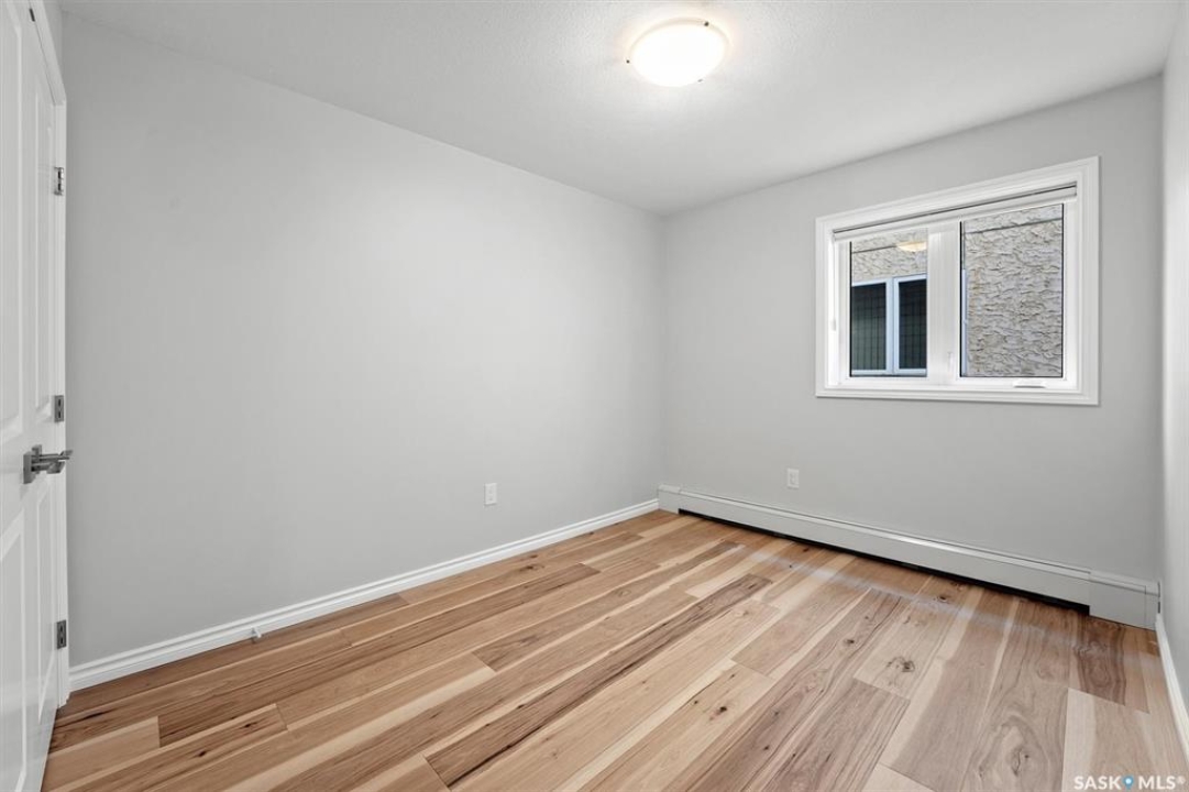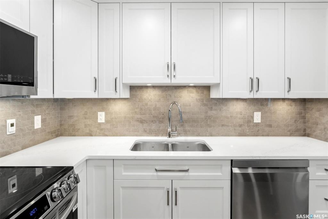 Welcome to #102 - 318 108th Street in Sutherland! This main floor, corner unit has two large bedrooms, the master having it's own 2pc bathroom and walk-in closet! The kitchen has tons of drawers with full extension pull outs. You'll see gorgeous quartz countertops with tiled backsplash and undercabinet lighting. The stainless steel appliance package has been upgraded to include: convection oven, waterline to the fridge with ice maker in freezer, quiet dishwasher with 3rd rack and 1 hr wash. As you enter this beautiful condo, you'll see travertine tile in the foyer and into the laundry room with washer and dryer included. This same tile has been used in both bathrooms for a continuity. Hickory hardwood has been laid throughout the remainder of the condo and, honestly, it's gorgeous! Wand controlled shades have been added for privacy and a triple pane garden door insert with integrated blinds has been ordered for the patio door. This newly built condo is located within 20 mins walking distance to the U of S Campus and future SaskPolytech Campus and, with a bus stop across the street, it's a 5 minute bus ride to Place Riel. Please note: there may be a few touchup taking place but everything will be complete prior to possession date! This entire complex suffered a total loss fire in May of 2022 and has now been rebuilt and is ready for occupancy! The original date of construction is 1997 and only the foundation remains from that date - Everything else is new! Call today to view this outstanding home!