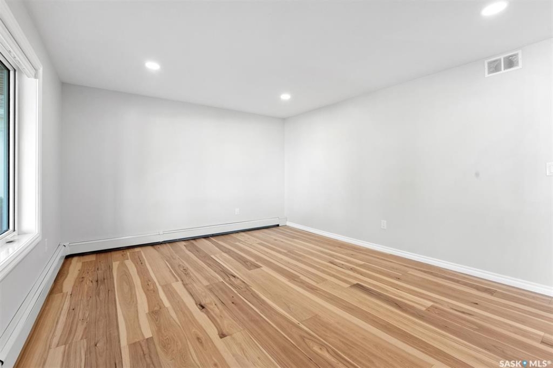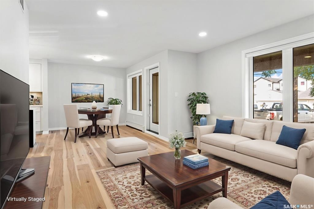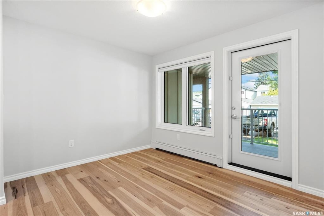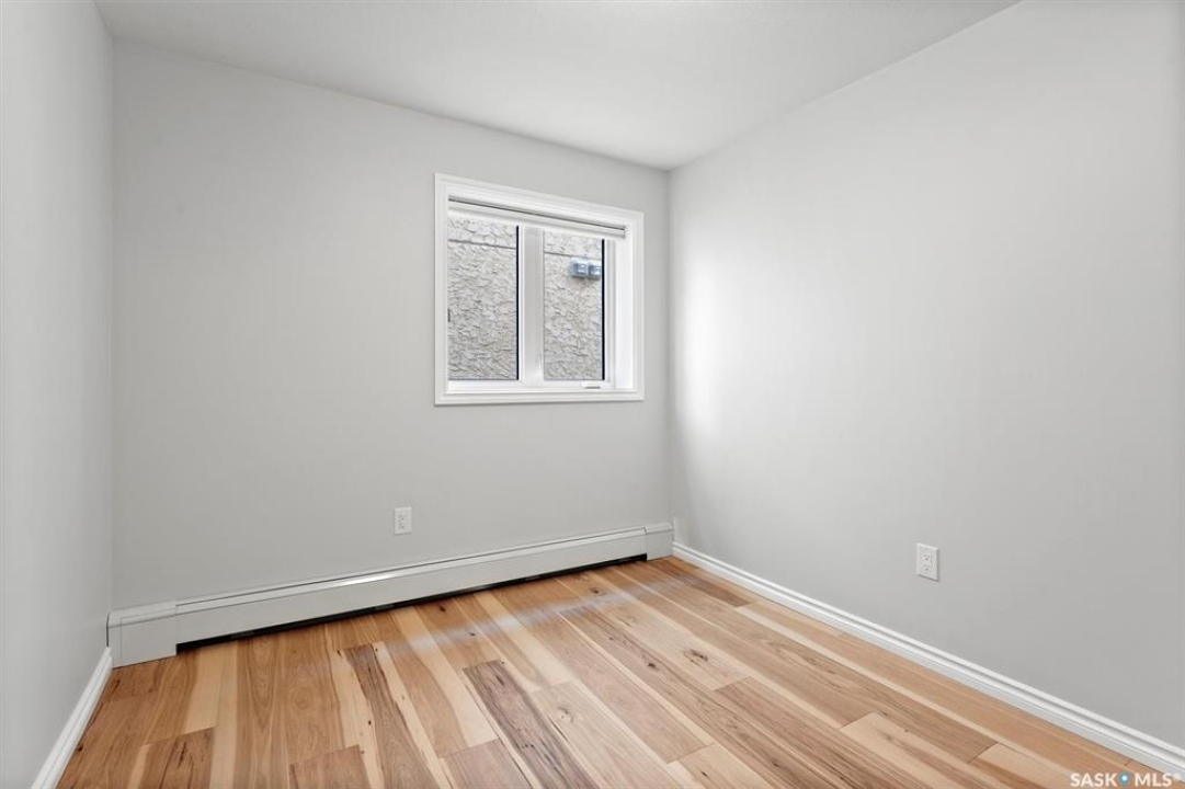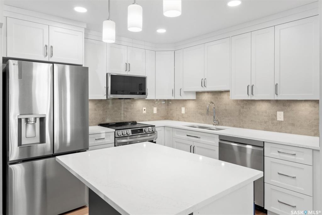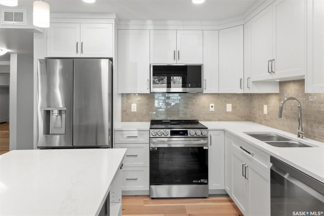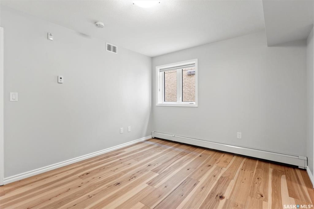 Welcome to #102 - 318 108th Street in Sutherland! This main floor, corner unit has two large bedrooms, the master having it's own 2pc bathroom and walk-in closet! The kitchen has tons of drawers with full extension pull outs. You'll see gorgeous quartz countertops with tiled backsplash and undercabinet lighting. The stainless steel appliance package has been upgraded to include: convection oven, waterline to the fridge with ice maker in freezer, quiet dishwasher with 3rd rack and 1 hr wash. As you enter this beautiful condo, you'll see travertine tile in the foyer and into the laundry room with washer and dryer included. This same tile has been used in both bathrooms for a continuity. Hickory hardwood has been laid throughout the remainder of the condo and, honestly, it's gorgeous! Wand controlled shades have been added for privacy and a triple pane garden door insert with integrated blinds has been ordered for the patio door. This newly built condo is located within 20 mins walking distance to the U of S Campus and future SaskPolytech Campus and, with a bus stop across the street, it's a 5 minute bus ride to Place Riel. Please note: there may be a few touchup taking place but everything will be complete prior to possession date! This entire complex suffered a total loss fire in May of 2022 and has now been rebuilt and is ready for occupancy! The original date of construction is 1997 and only the foundation remains from that date - Everything else is new! Call today to view this outstanding home!