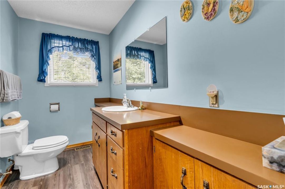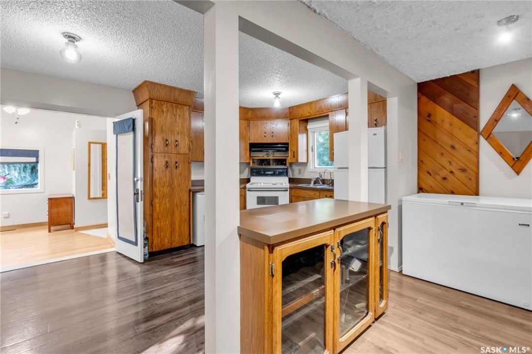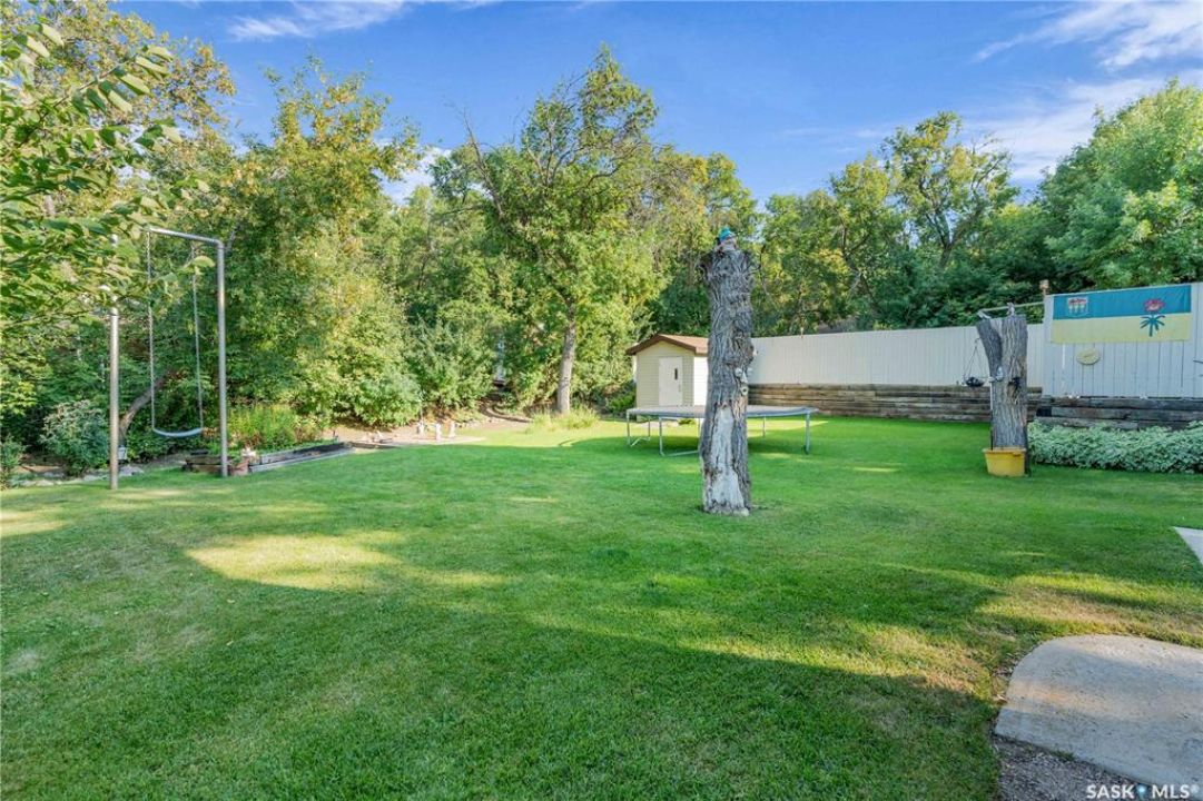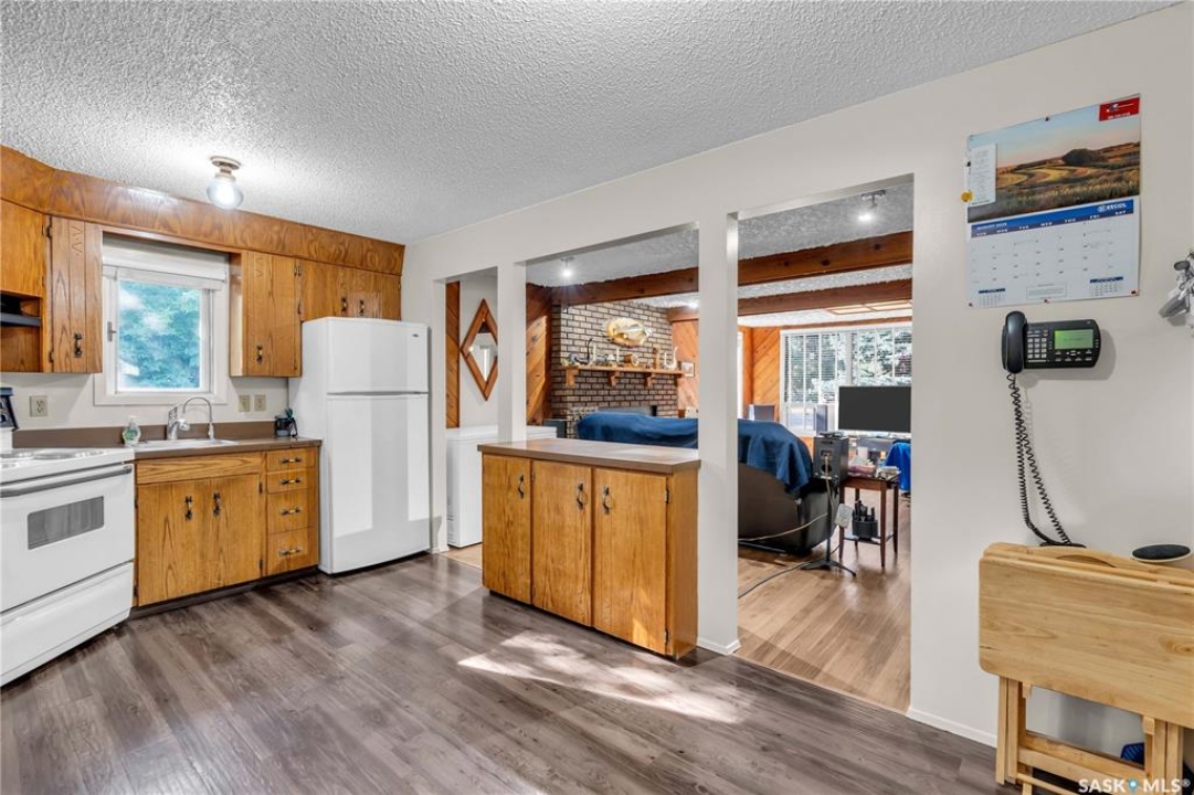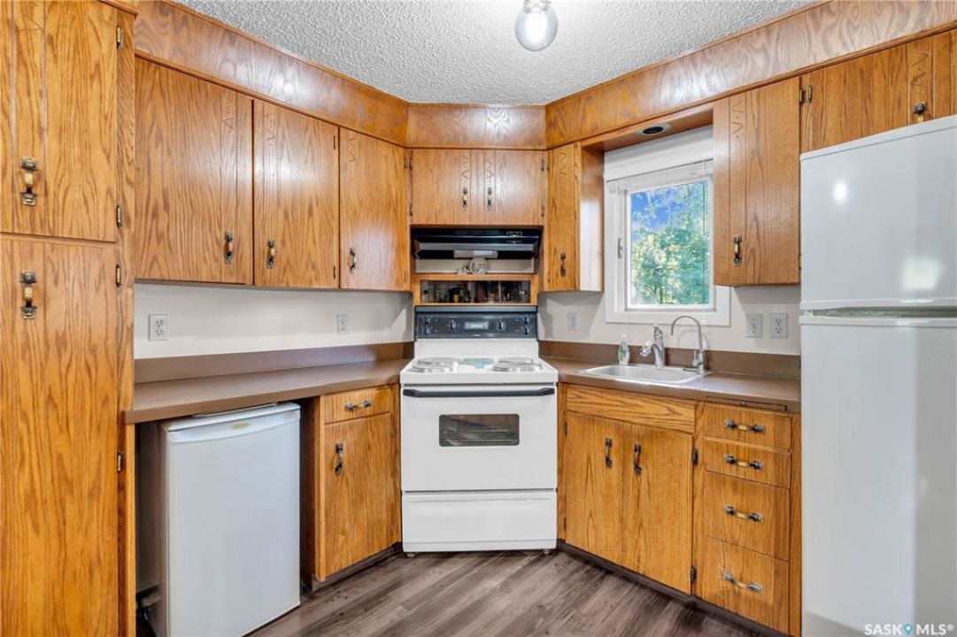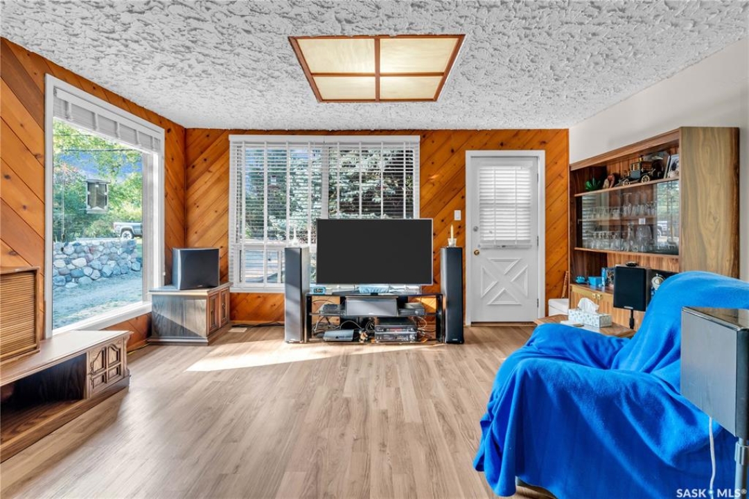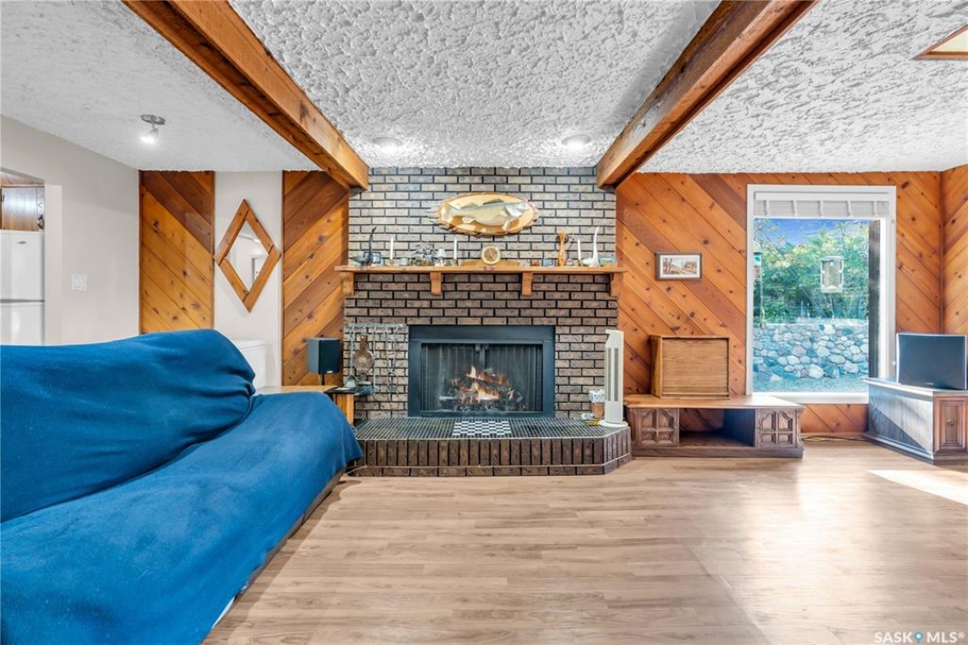 This isn't just a cabin at the lake—it's a true four-season home designed for comfort, relaxation, and connection with nature. Nestled on a rare double lot (116 ft x 132 ft), this property offers endless opportunities: keep it as your private retreat, build your dream home, or subdivide for two residences. For over 50 years, this home has been lovingly cared for, and it shows. Inside, you'll find a bright and versatile flex space at the back—perfect as a dining room, office, guest room, or playroom. The kitchen offers solid cabinetry and plenty of space, opening seamlessly to the living room where a cozy wood-burning fireplace becomes the heart of the home during winter months. Two comfortable bedrooms, a 4-piece bathroom, and a convenient laundry nook complete the layout. Durable luxury vinyl plank flooring runs throughout (with hardwood in the back room), making the home family-, pet-, and beach-day friendly. Step outside and you'll be greeted by the beauty of nature: from the front deck you can spot deer and a variety of birds, while the backyard invites you to relax beneath a natural canopy of mature trees. Practicality meets convenience with both an oversized single detached garage (with lane access) and a front driveway for extra parking. Located just steps from Last Mountain Lake, you'll enjoy fishing year-round, sandy summer days, and all the charm that comes with living in the vibrant community of Regina Beach—complete with shops, restaurants, and amenities. Whether you're looking for a peaceful retreat, a full-time residence, or an investment opportunity, this property is a rare find that offers it all.