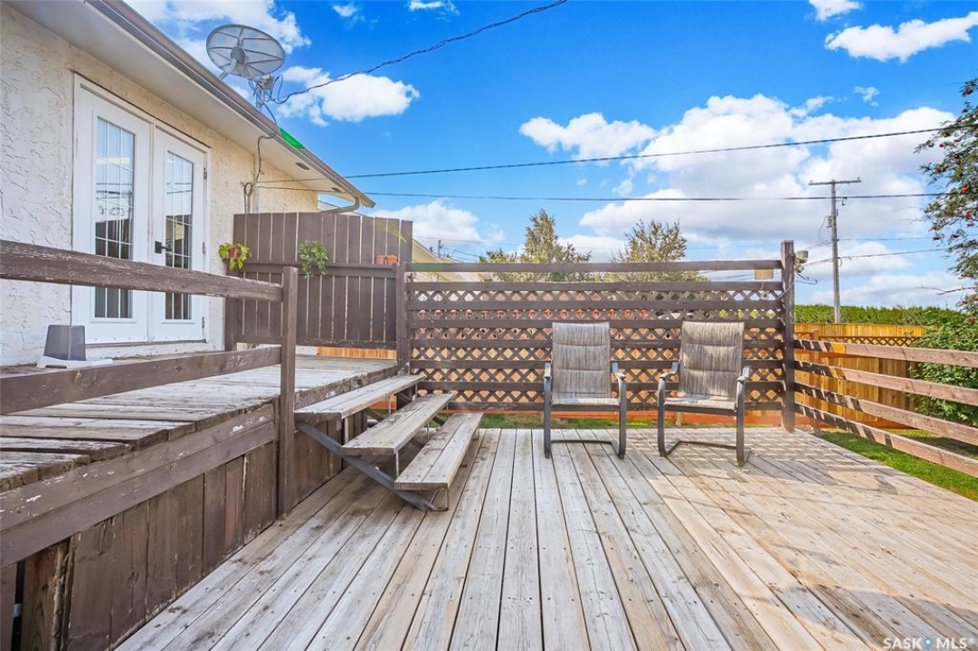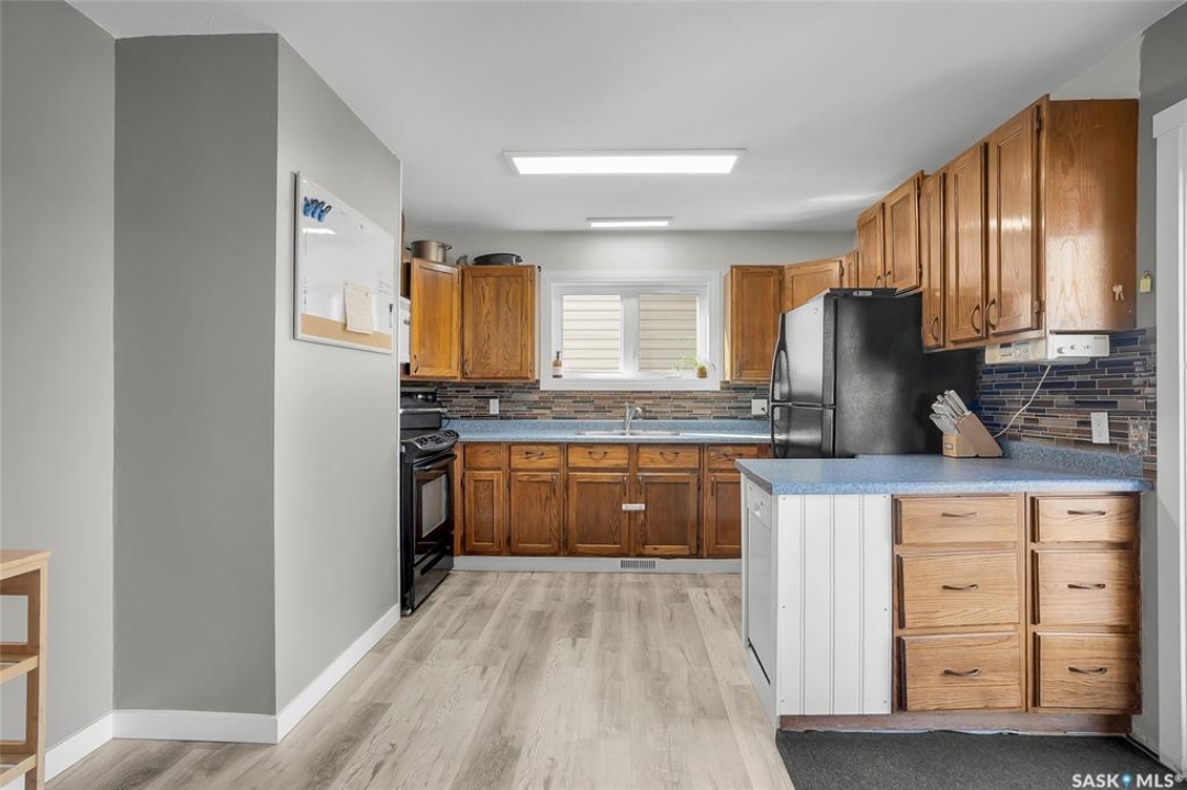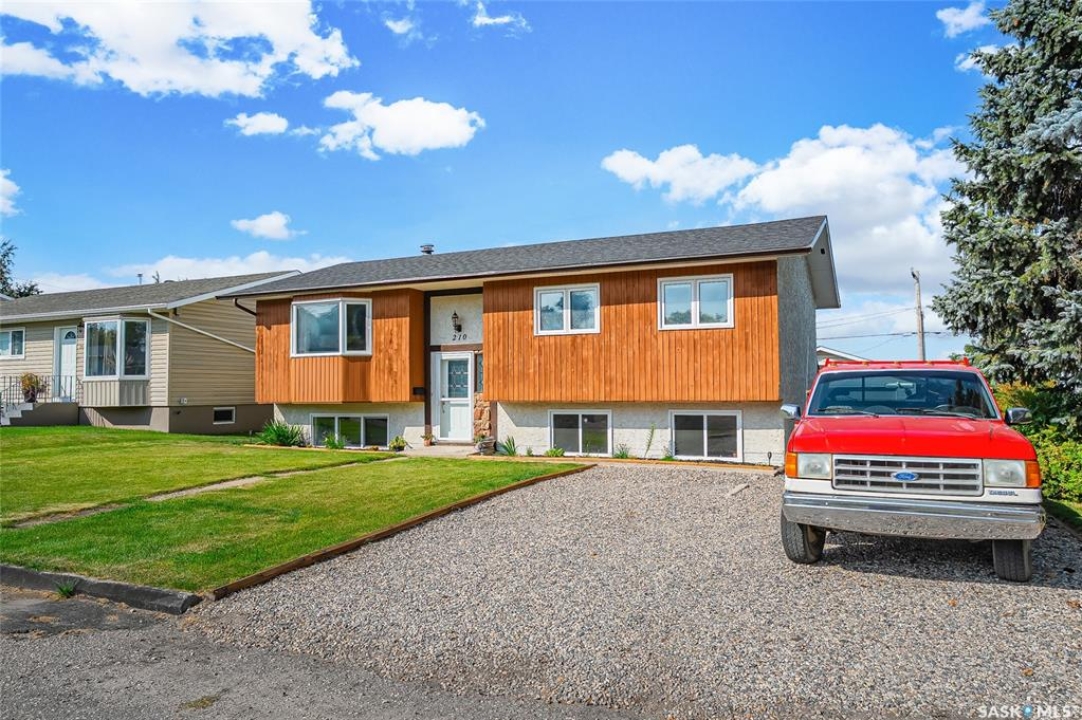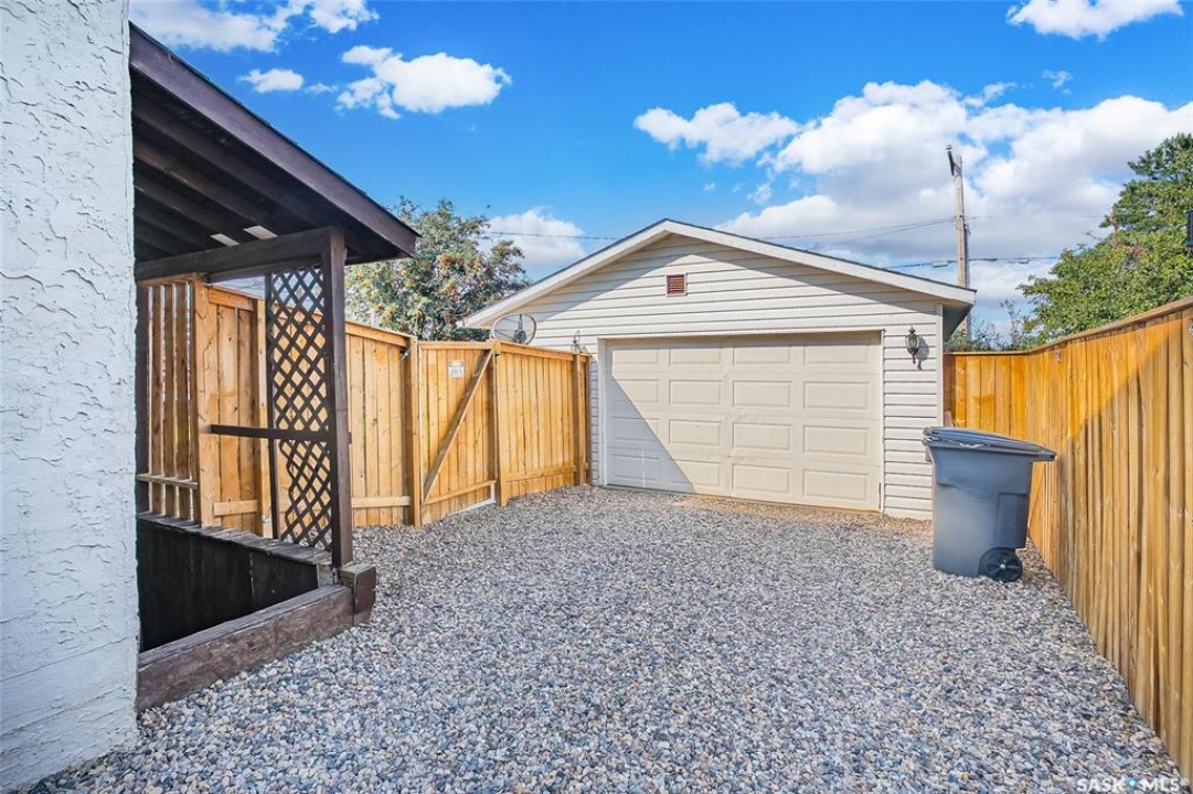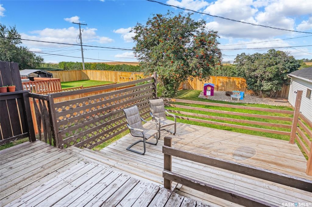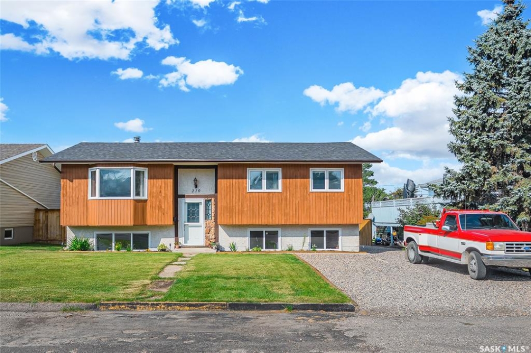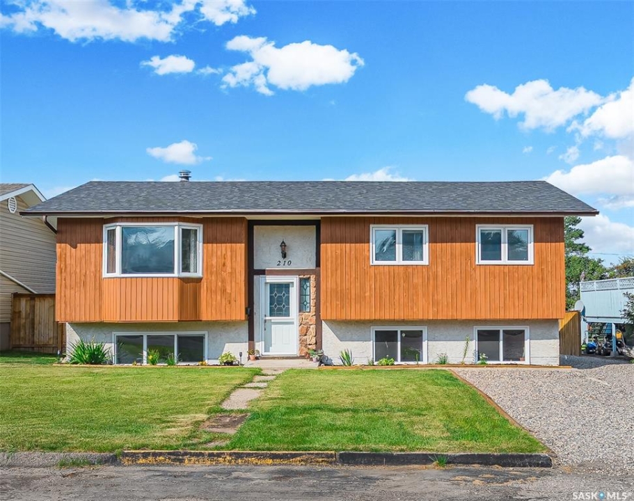 Welcome to 214 4th St. W. in Delisle, a fantastic property on a quiet street right next to a park. This bi-level home is situated on a large, fully fenced lot of over 7,000 sq. ft. and includes a dream 40' x 20' heated and insulated garage, perfect for mechanics, projects, storage, or a private retreat. When entering the home your welcomed by a spacious entry way, the main floor offers two bedrooms, including a spacious primary suite with its own en suite that was previously two bedrooms combined into one luxurious bedroom with closet area. A beautifully updated 4 piece bathroom, bright kitchen and dining area with patio doors leading to a large two-tiered deck, and a living room with oversized windows that fill the space with natural light and cozy wood-burning fireplace adds warmth and character to the main living space. All-new vinyl plank flooring runs throughout the main floor. The lower level is designed for flexibility and entertainment, with a massive bedroom featuring large windows, a bonus room currently used as a gym with a half bath, and a family room complete with a wet bar and kitchen setup. A separate entry, mudroom area, laundry, and storage provide additional convenience. The outdoor space is just as impressive, with a brand-new fence, mature trees, a firepit area, and plenty of open space backing onto greenspace. Upgrades include: Shingles, upstairs bathrooms, entryway, banister, water heater, paint, natural gas in garage, doors, flooring and baseboards throughout upstairs. This property truly combines space, comfort, and endless potential both indoors and out. You wont want to miss out on this affordable home in Delisle call a Realtor ® today for your private viewing.