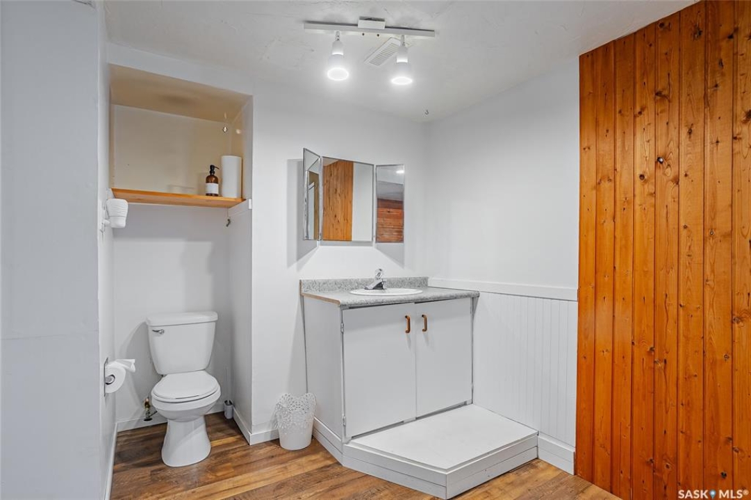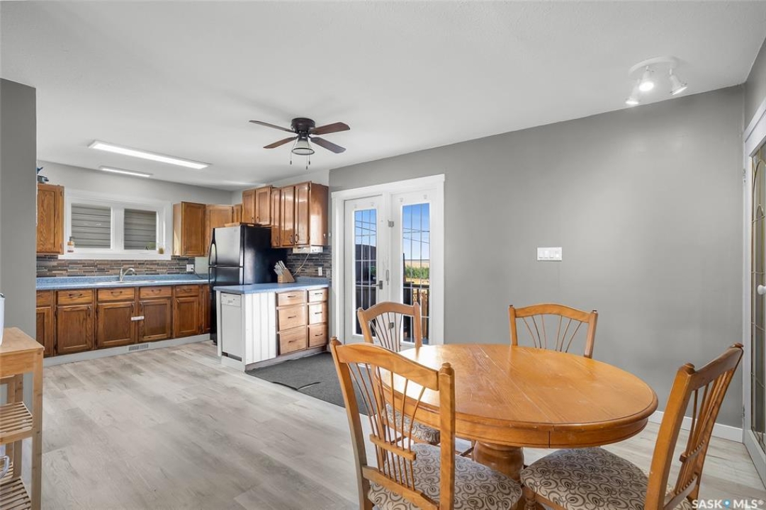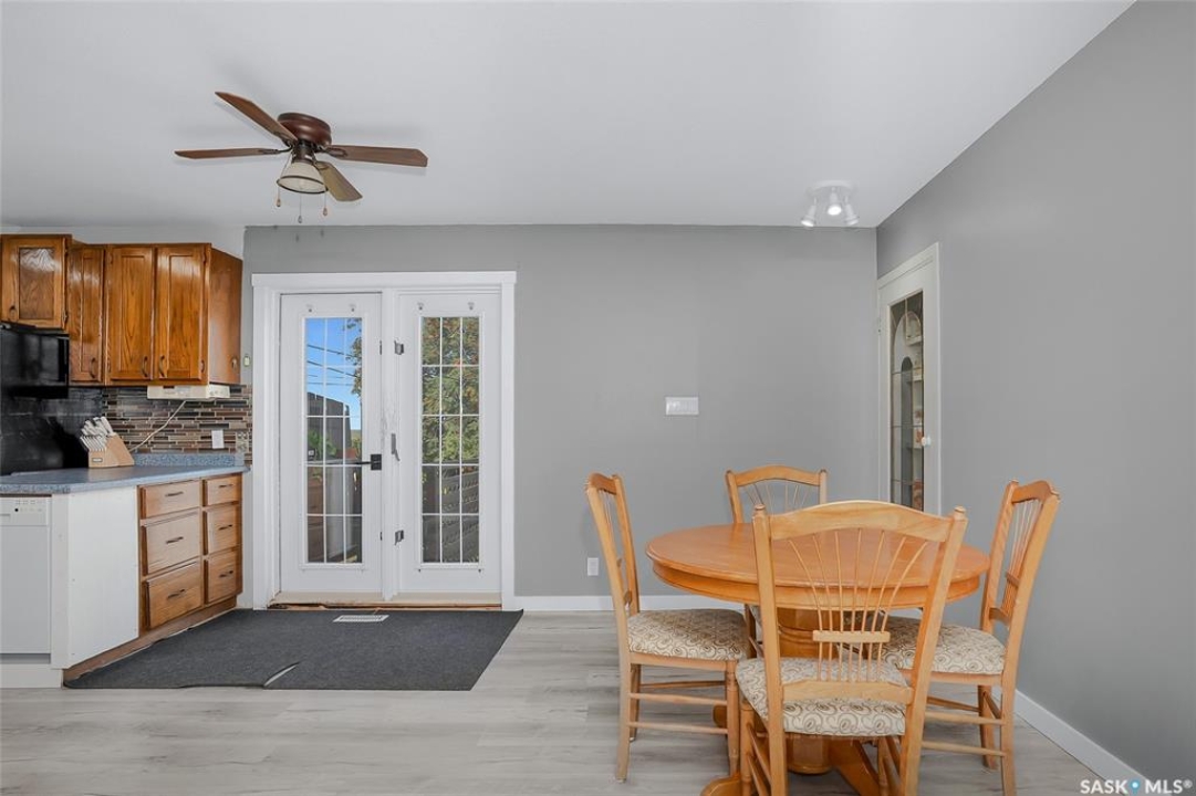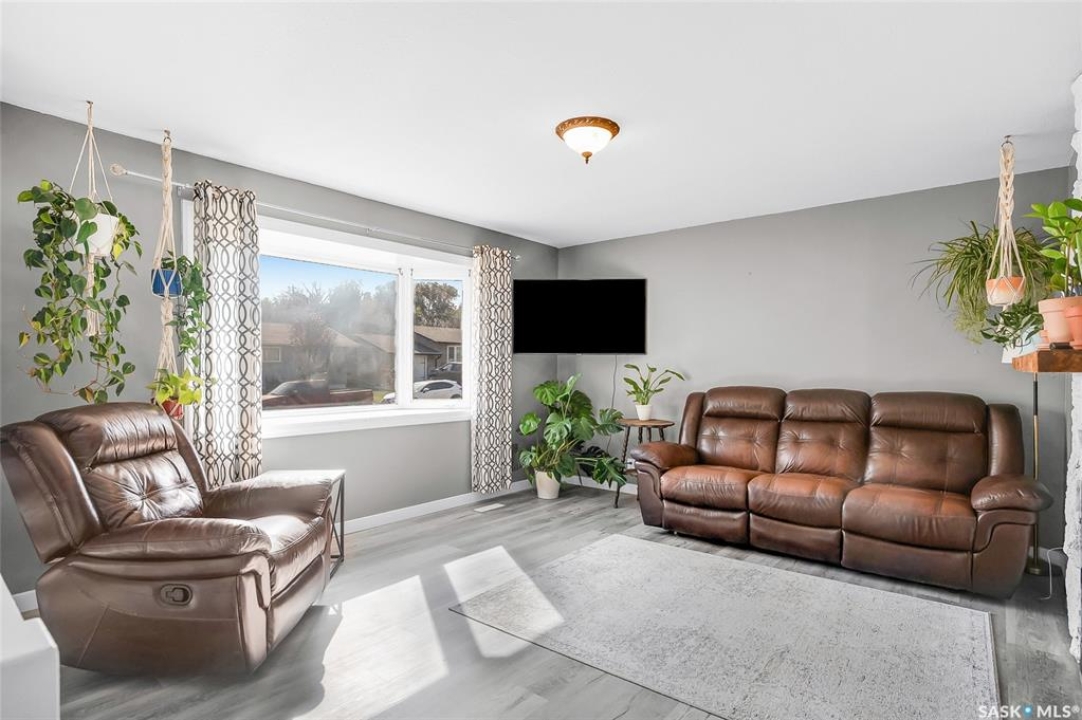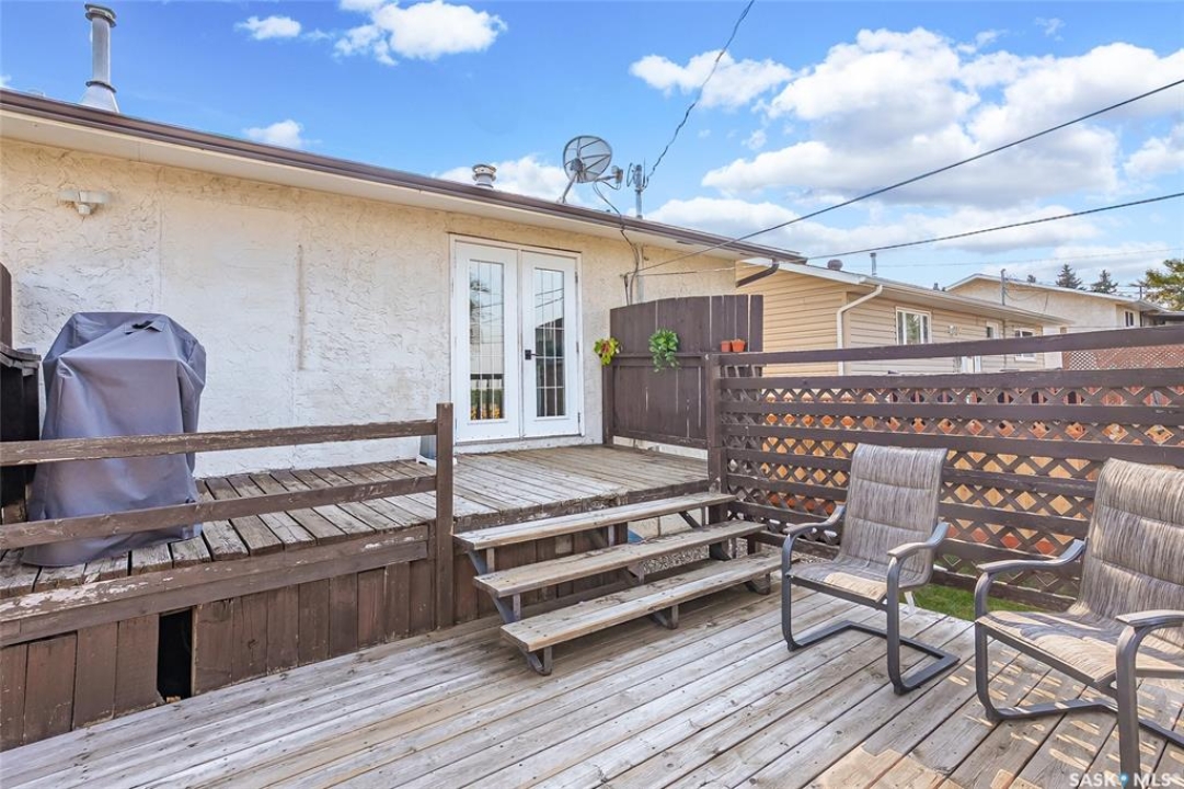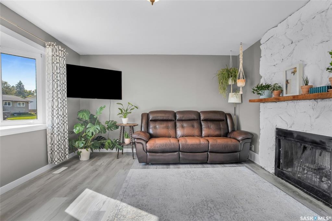 Welcome to 214 4th St. W. in Delisle, a fantastic property on a quiet street right next to a park. This bi-level home is situated on a large, fully fenced lot of over 7,000 sq. ft. and includes a dream 40' x 20' heated and insulated garage, perfect for mechanics, projects, storage, or a private retreat. When entering the home your welcomed by a spacious entry way, the main floor offers two bedrooms, including a spacious primary suite with its own en suite that was previously two bedrooms combined into one luxurious bedroom with closet area. A beautifully updated 4 piece bathroom, bright kitchen and dining area with patio doors leading to a large two-tiered deck, and a living room with oversized windows that fill the space with natural light and cozy wood-burning fireplace adds warmth and character to the main living space. All-new vinyl plank flooring runs throughout the main floor. The lower level is designed for flexibility and entertainment, with a massive bedroom featuring large windows, a bonus room currently used as a gym with a half bath, and a family room complete with a wet bar and kitchen setup. A separate entry, mudroom area, laundry, and storage provide additional convenience. The outdoor space is just as impressive, with a brand-new fence, mature trees, a firepit area, and plenty of open space backing onto greenspace. Upgrades include: Shingles, upstairs bathrooms, entryway, banister, water heater, paint, natural gas in garage, doors, flooring and baseboards throughout upstairs. This property truly combines space, comfort, and endless potential both indoors and out. You wont want to miss out on this affordable home in Delisle call a Realtor ® today for your private viewing.