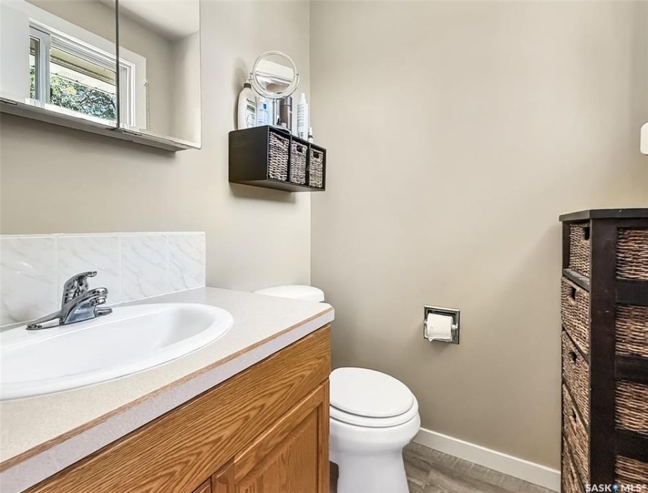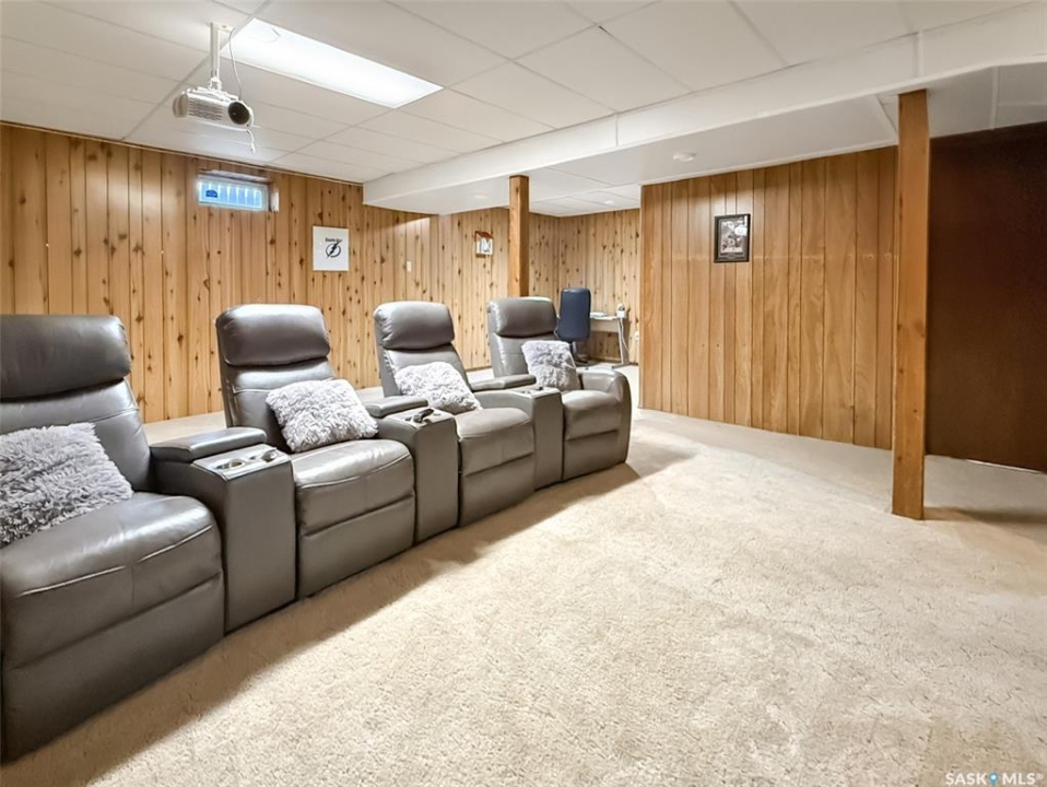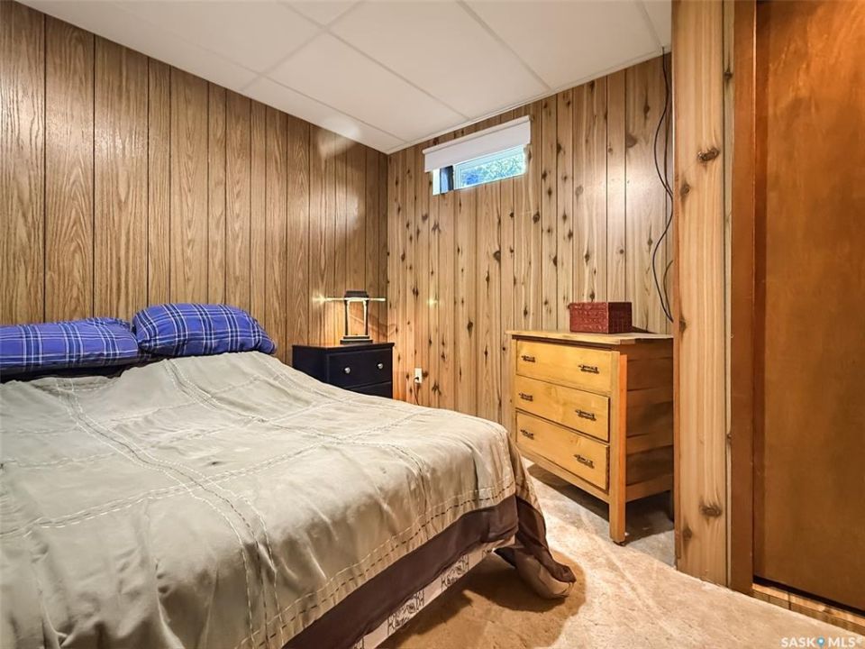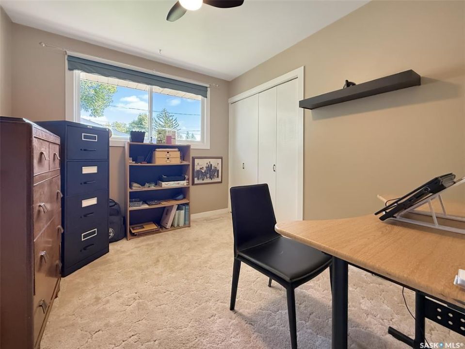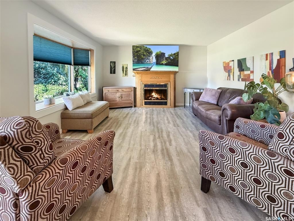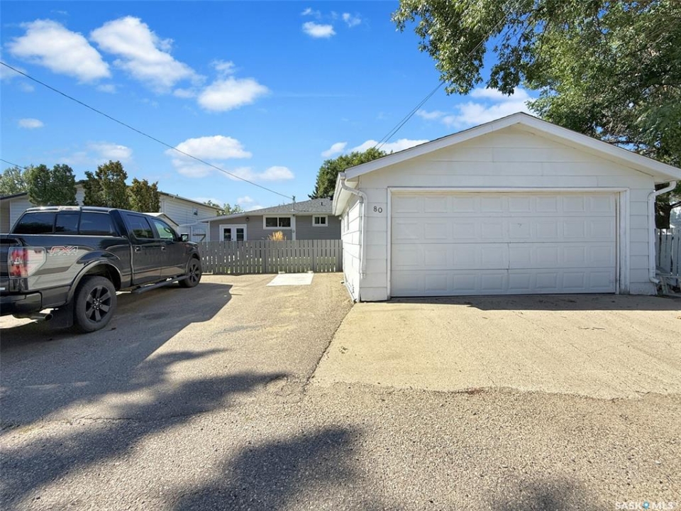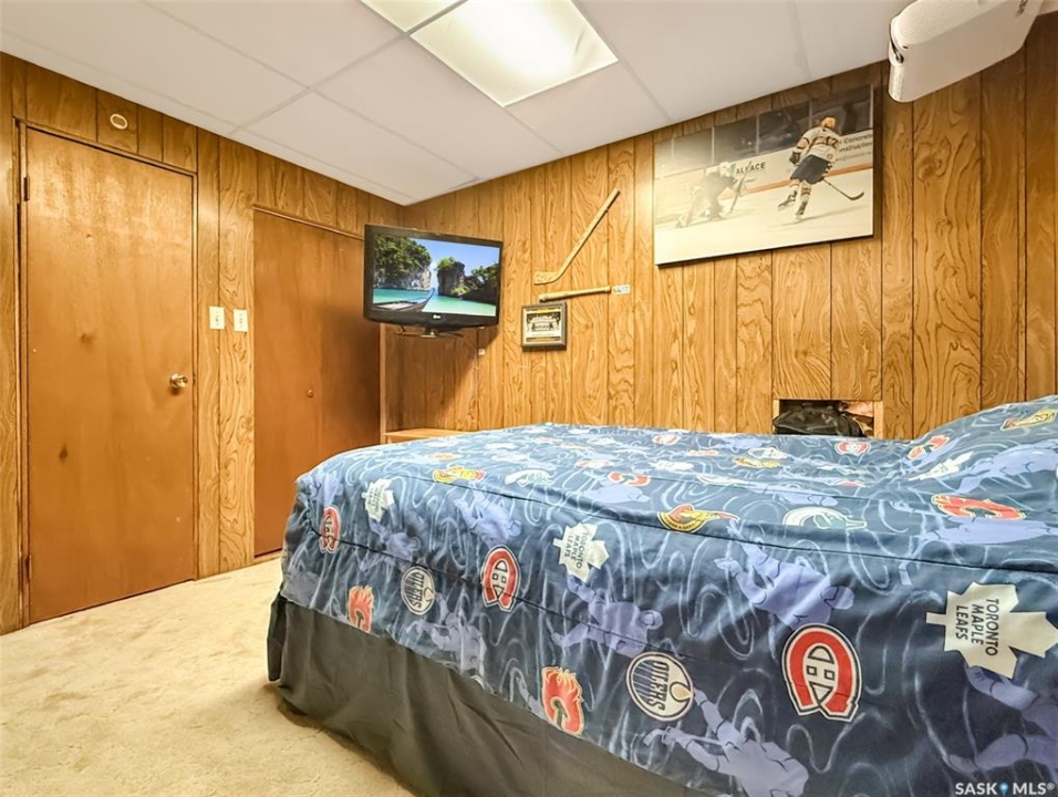 Explore the ideal family residence situated on the sought-after Macdonald Crescent. Nestled in a quiet neighbourhood, this home is just steps from Elmwood Golf Course, within walking distance to K-12 schools, and central to multiple parks and city amenities. Boasting excellent curb appeal, the property features updated vinyl windows and a striking dark blue siding. The spacious bungalow offers an open-concept layout with the kitchen, dining, and living areas at the front, and three well-sized bedrooms at the back. The master bedroom includes a private two-piece ensuite, while a renovated four-piece bathroom serves the other rooms. The living room is inviting with its cozy gas fireplace and large windows, creating a bright and airy atmosphere. The kitchen is equipped with quality cabinetry, stainless steel appliances, and a pantry. The main floor has been freshly painted, new interior doors added and complete with new trim and light fixtures. Next to the kitchen, you will enjoy the additional living space offered in the den boasting vaulted ceilings, perfect for a golf simulator, sitting room or oversized mud room and complete with a 11x10 storage room, the perfect drop space for your sports equipment, room for your deep freeze/extra storage items.. The den space opens to the backyard, via French doors. The basement offers a large recreation room, perfectly staged as a theatre space, complete with an office nook, a fourth bedroom, and a flex room. A renovated three-piece bathroom and updated mechanical room with an energy-efficient furnace, water heater, water softener, and 100 amp electric panel are also located here. The yard is a haven featuring lush grass, a large deck, a shed, and an additional parking pad that can accommodate an RV or even an outdoor hockey rink for the kids. A double car garage completes this remarkable home in a neighbourhood you'll love. Call today for more information!