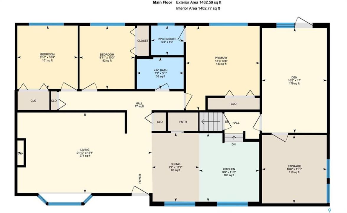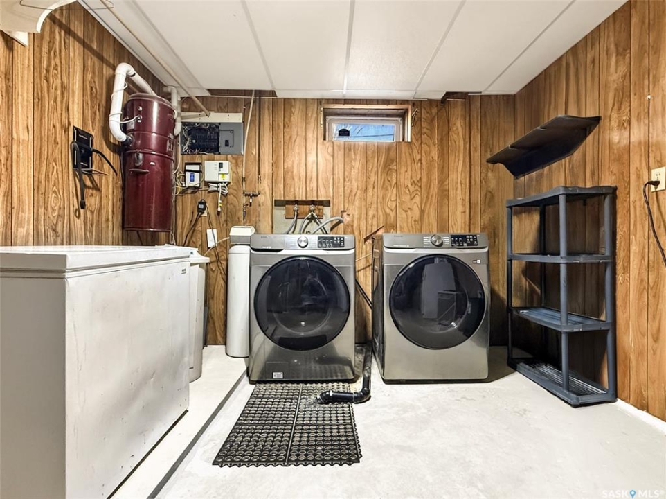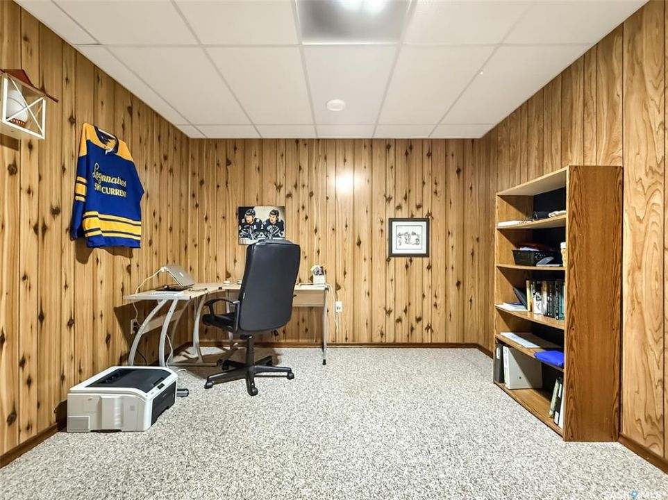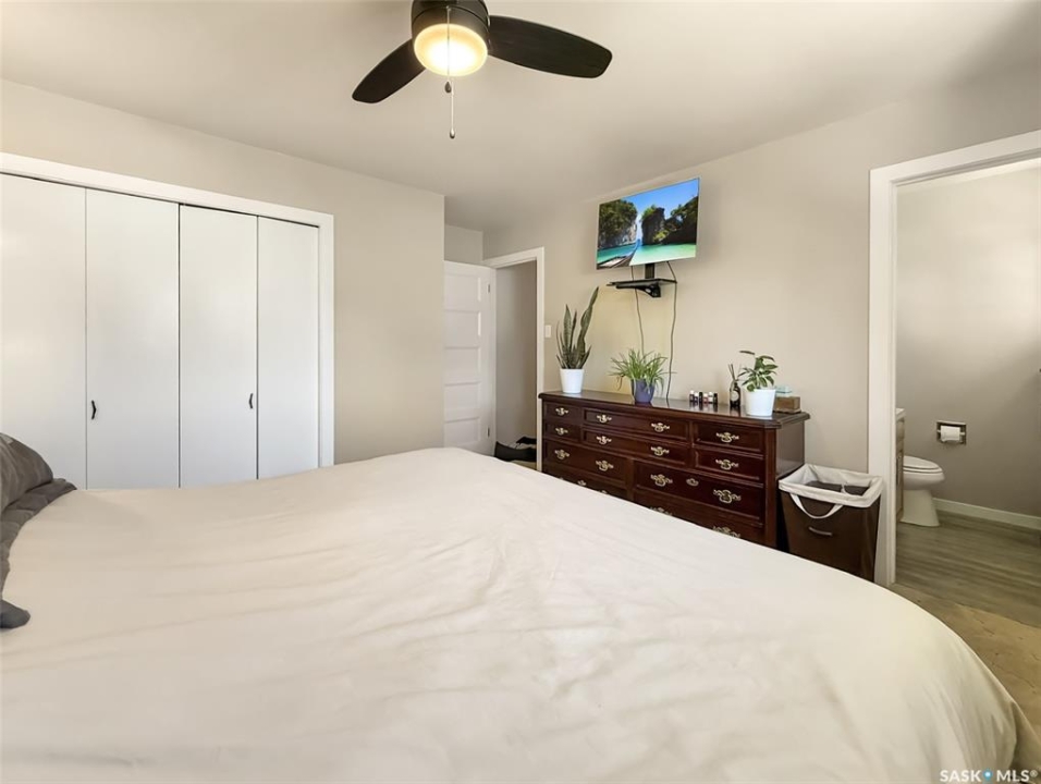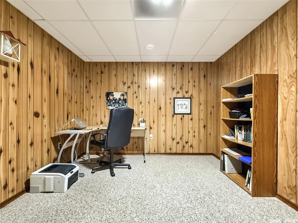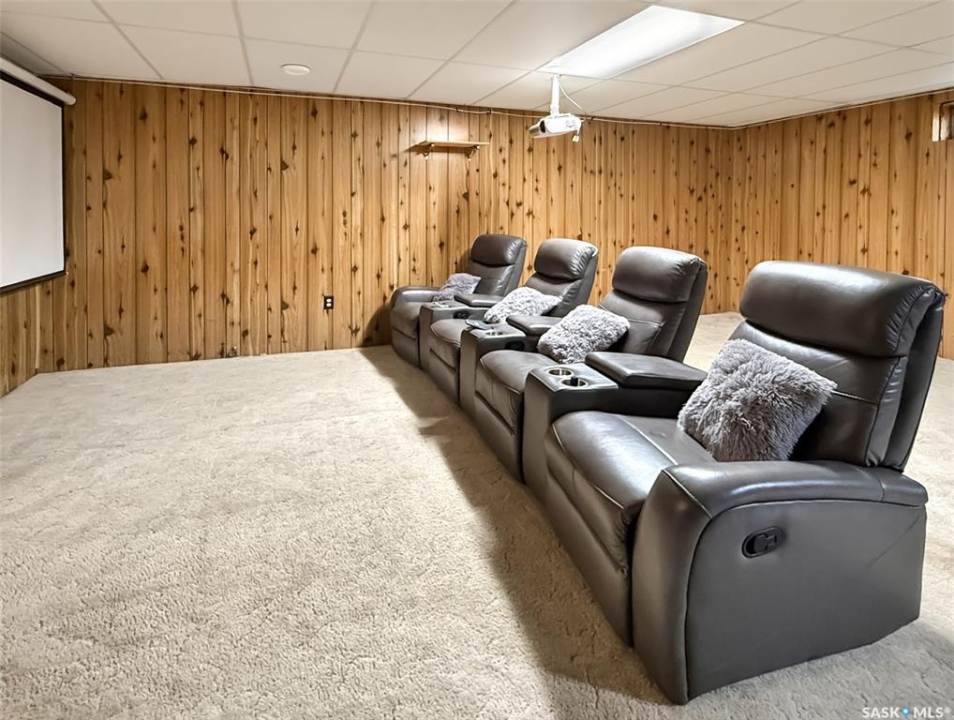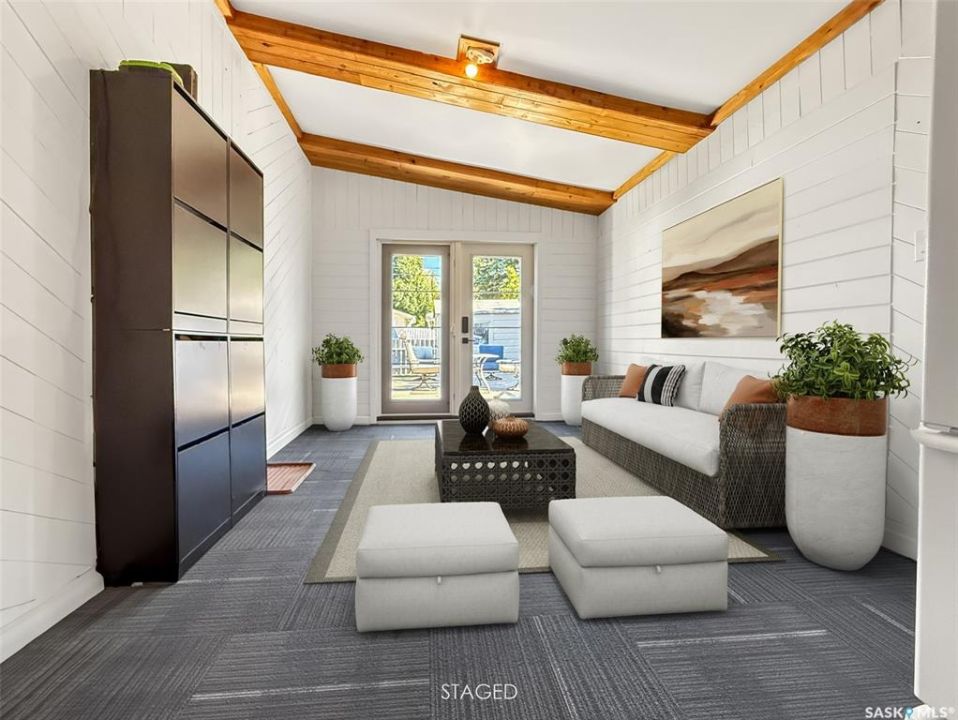 Explore the ideal family residence situated on the sought-after Macdonald Crescent. Nestled in a quiet neighbourhood, this home is just steps from Elmwood Golf Course, within walking distance to K-12 schools, and central to multiple parks and city amenities. Boasting excellent curb appeal, the property features updated vinyl windows and a striking dark blue siding. The spacious bungalow offers an open-concept layout with the kitchen, dining, and living areas at the front, and three well-sized bedrooms at the back. The master bedroom includes a private two-piece ensuite, while a renovated four-piece bathroom serves the other rooms. The living room is inviting with its cozy gas fireplace and large windows, creating a bright and airy atmosphere. The kitchen is equipped with quality cabinetry, stainless steel appliances, and a pantry. The main floor has been freshly painted, new interior doors added and complete with new trim and light fixtures. Next to the kitchen, you will enjoy the additional living space offered in the den boasting vaulted ceilings, perfect for a golf simulator, sitting room or oversized mud room and complete with a 11x10 storage room, the perfect drop space for your sports equipment, room for your deep freeze/extra storage items.. The den space opens to the backyard, via French doors. The basement offers a large recreation room, perfectly staged as a theatre space, complete with an office nook, a fourth bedroom, and a flex room. A renovated three-piece bathroom and updated mechanical room with an energy-efficient furnace, water heater, water softener, and 100 amp electric panel are also located here. The yard is a haven featuring lush grass, a large deck, a shed, and an additional parking pad that can accommodate an RV or even an outdoor hockey rink for the kids. A double car garage completes this remarkable home in a neighbourhood you'll love. Call today for more information!