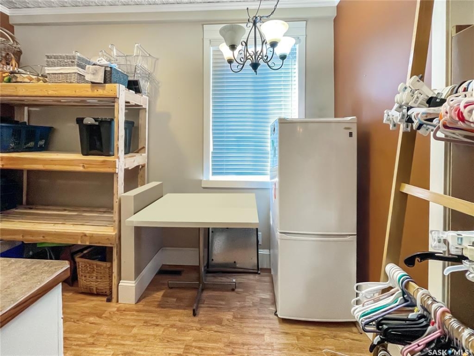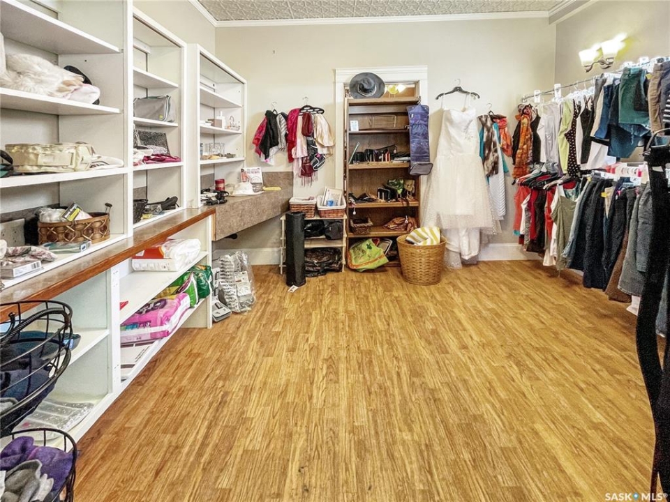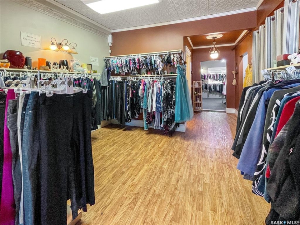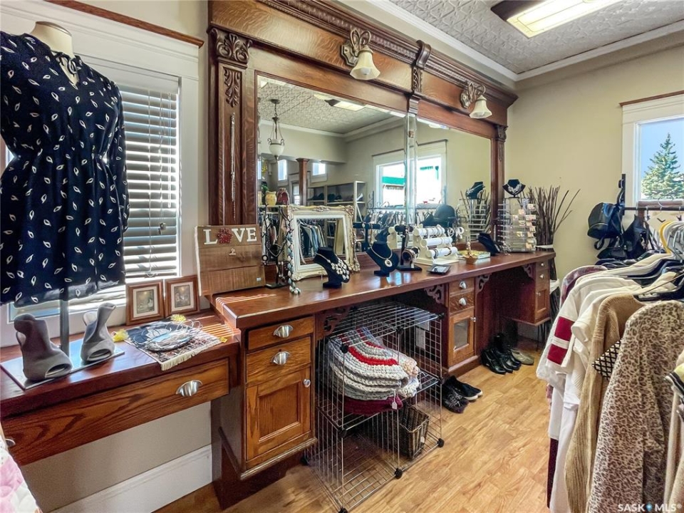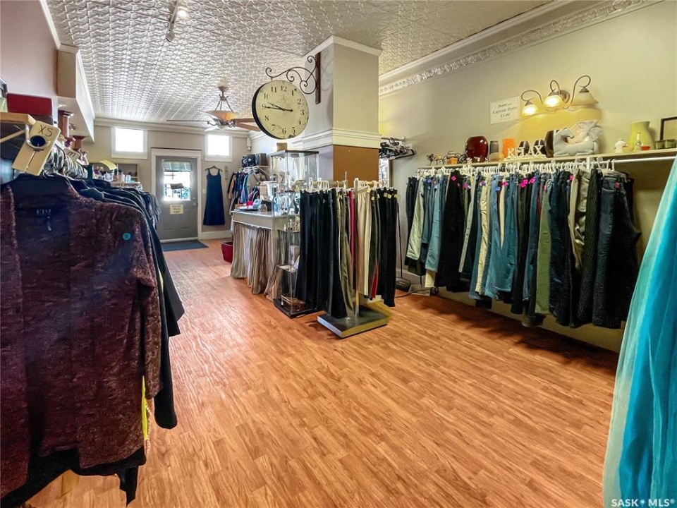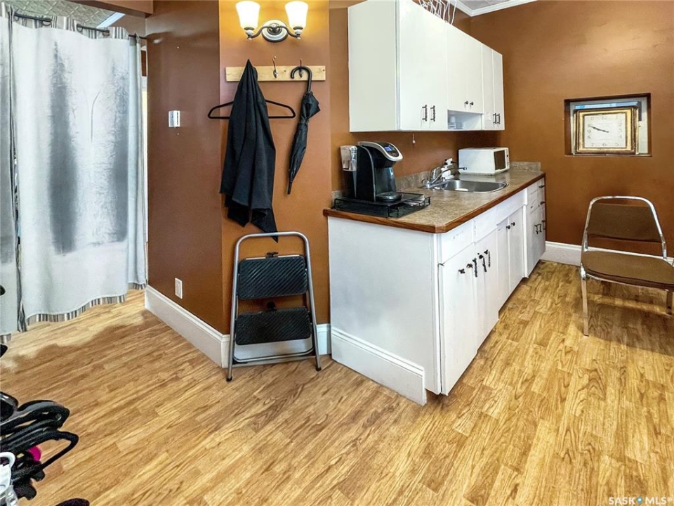 Discover the perfect opportunity to combine your aspirations of homeownership with entrepreneurship in this beautifully renovated property, ideally situated on Main Street in Herbert. This versatile building, previously a barber shop and more recently a retail store, has undergone extensive renovations since 2008, led by a renowned decorator who reimagined the space while preserving its charming original metal ceiling. The thoughtful design offers a showcase room at the front boasting 9-foot ceilings adorned with statement lighting, creating an inviting atmosphere for clients and guests alike. Patio doors open to a serene outdoor area featuring trees and benches, perfect for relaxation. The front section also includes a convenient two-piece bathroom and a closet currently utilized for display purposes, along with an L-shaped staff room equipped with essential amenities, including a fridge, microwave, and sink. The back addition maintains an airy feel with 9-foot ceilings and carpeting. This property holds immense potential for a variety of business ventures, such as a nail salon, hair salon, reflexology center, or even a computer-based enterprise. The zoning allows for both residential and commercial use, providing flexibility to suit your needs. Consider enhancing the space for your business or converting it into live in business! Below sits a partial basement measuring 21 by 14.5 feet with a concrete floor and a ceiling height of 6'3 adding extra storage options. Don't miss this exceptional opportunity—call today to schedule a viewing or for more information.