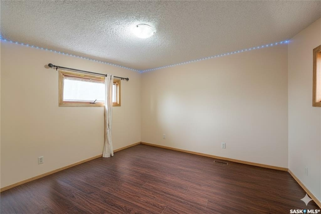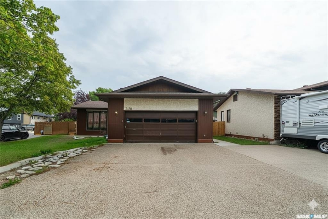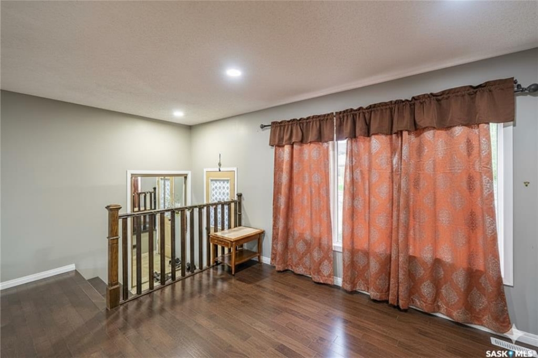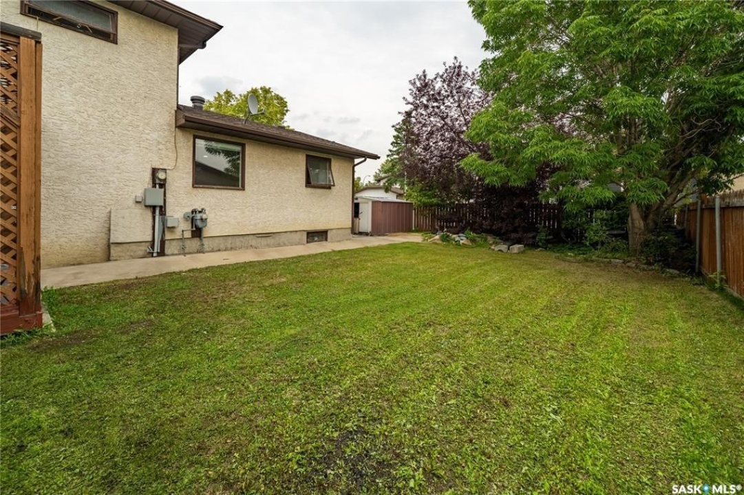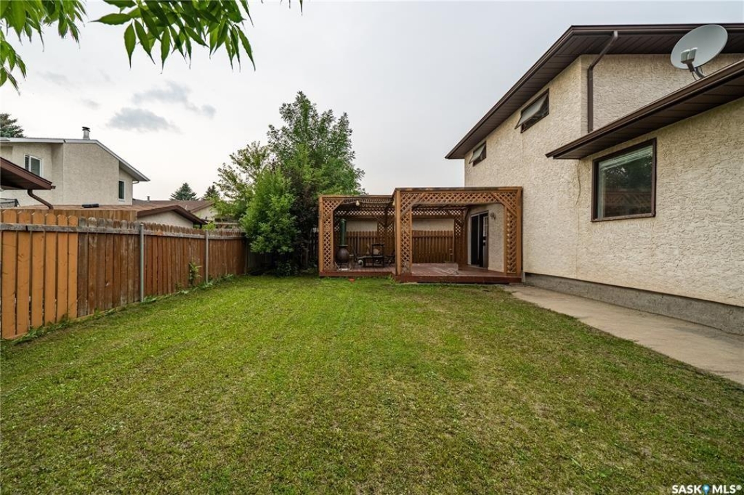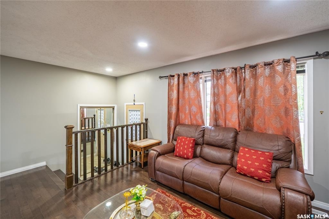 Welcome to this beautifully maintained and spacious 1,820 sq. ft. family home nestled on a large corner lot in the desirable Wood Meadows neighborhood of Regina's east end. Boasting 6 bedrooms (4 above grade and 2 in the basement) and 4 full bathrooms, this home offers the perfect blend of functionality, comfort, and style. The main floor features rich dark hardwood flooring, elegant railings, a bright open-concept kitchen with tile backsplash, a welcoming living room, and a cozy sunken family room centered around a stunning stacked stone gas fireplace. A versatile bedroom or home office and a stylish 3-piece bathroom with a tiled shower complete the main level. Upstairs, you'll find three generously sized bedrooms, a full 4-piece main bathroom, and a 3-piece ensuite off the primary suite. The fully developed basement adds even more space with two additional bedrooms, a full bathroom, a large rec room, and plenty of storage. The fully fenced backyard includes a spacious deck, ideal for relaxing or entertaining. Located just steps from two elementary schools and close to all east-end amenities, this exceptional property is move-in ready and an absolute must-see.