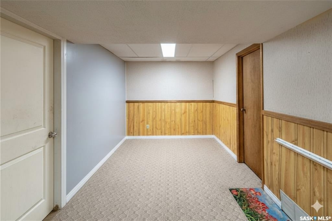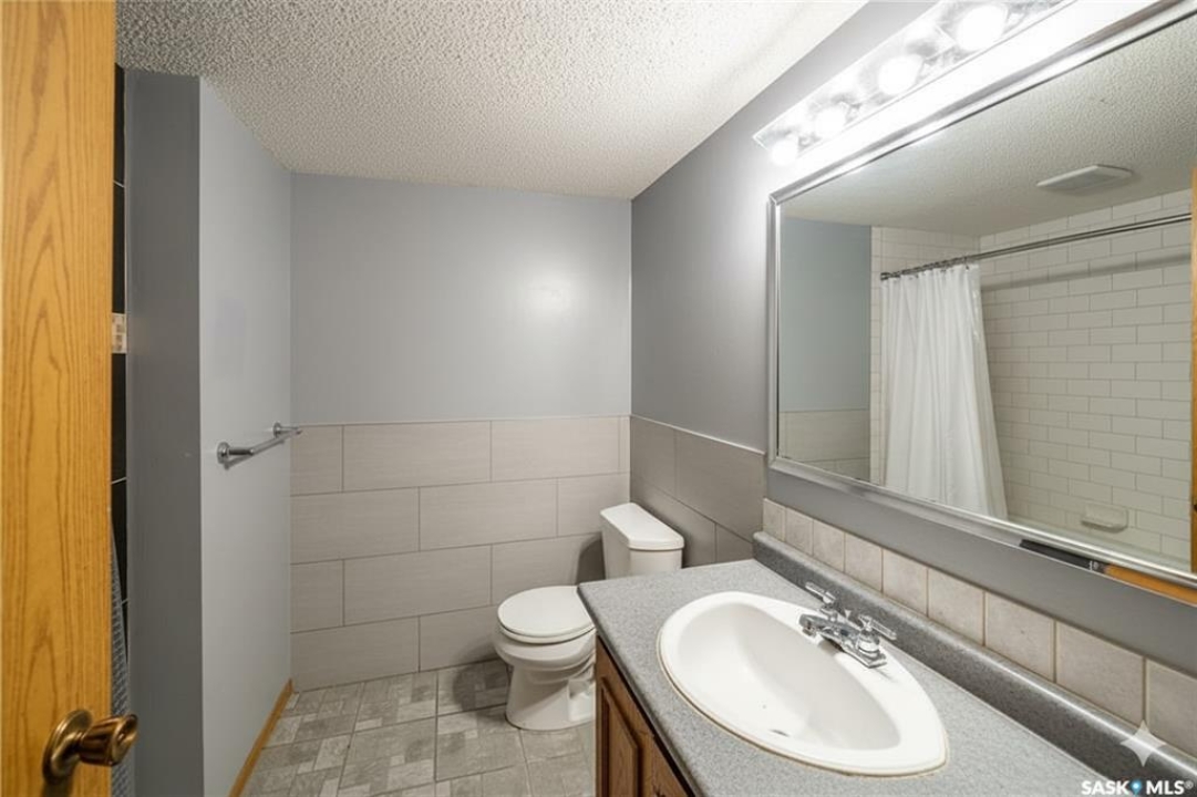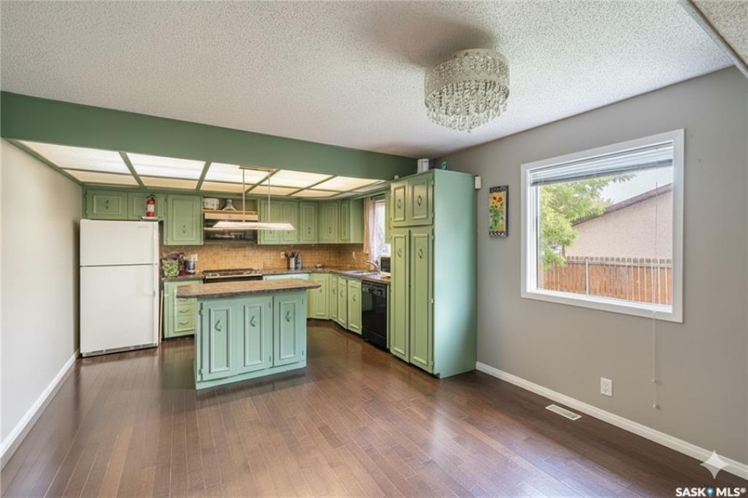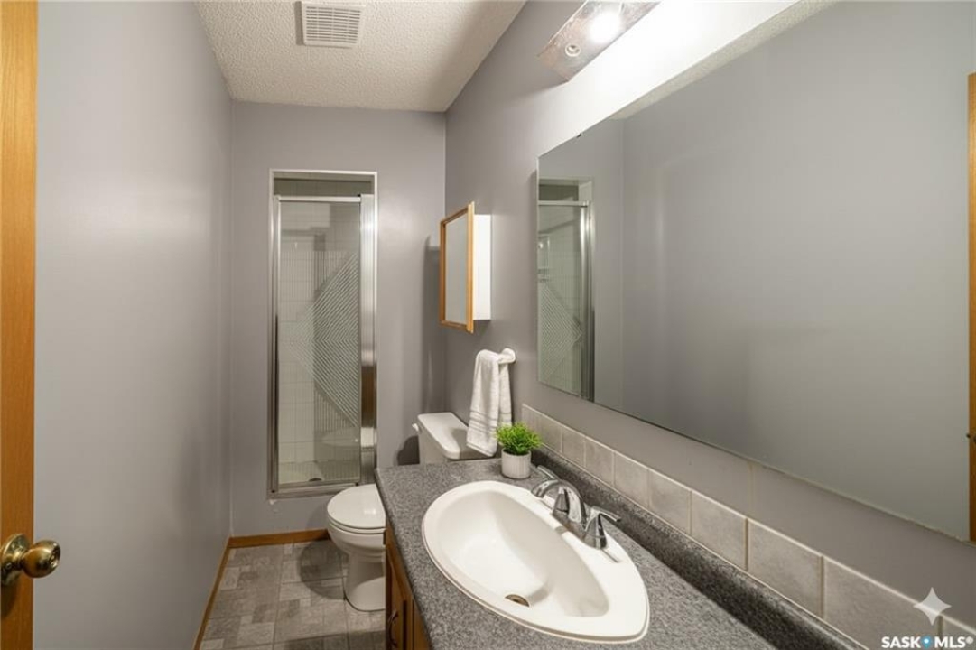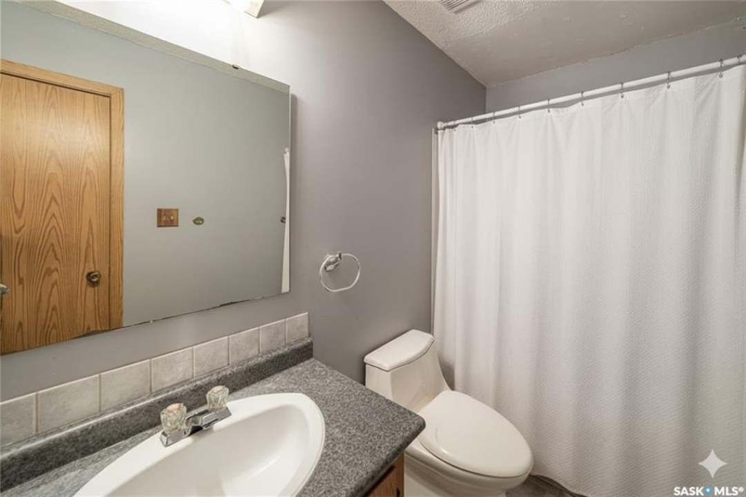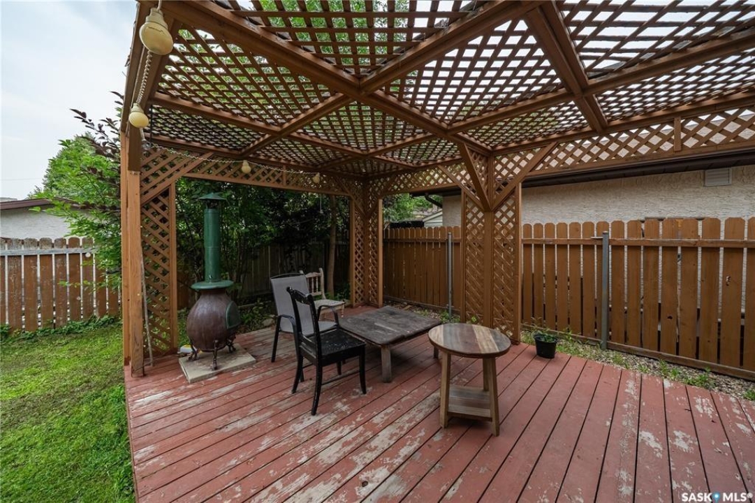 Welcome to this beautifully maintained and spacious 1,820 sq. ft. family home nestled on a large corner lot in the desirable Wood Meadows neighborhood of Regina's east end. Boasting 6 bedrooms (4 above grade and 2 in the basement) and 4 full bathrooms, this home offers the perfect blend of functionality, comfort, and style. The main floor features rich dark hardwood flooring, elegant railings, a bright open-concept kitchen with tile backsplash, a welcoming living room, and a cozy sunken family room centered around a stunning stacked stone gas fireplace. A versatile bedroom or home office and a stylish 3-piece bathroom with a tiled shower complete the main level. Upstairs, you'll find three generously sized bedrooms, a full 4-piece main bathroom, and a 3-piece ensuite off the primary suite. The fully developed basement adds even more space with two additional bedrooms, a full bathroom, a large rec room, and plenty of storage. The fully fenced backyard includes a spacious deck, ideal for relaxing or entertaining. Located just steps from two elementary schools and close to all east-end amenities, this exceptional property is move-in ready and an absolute must-see.
